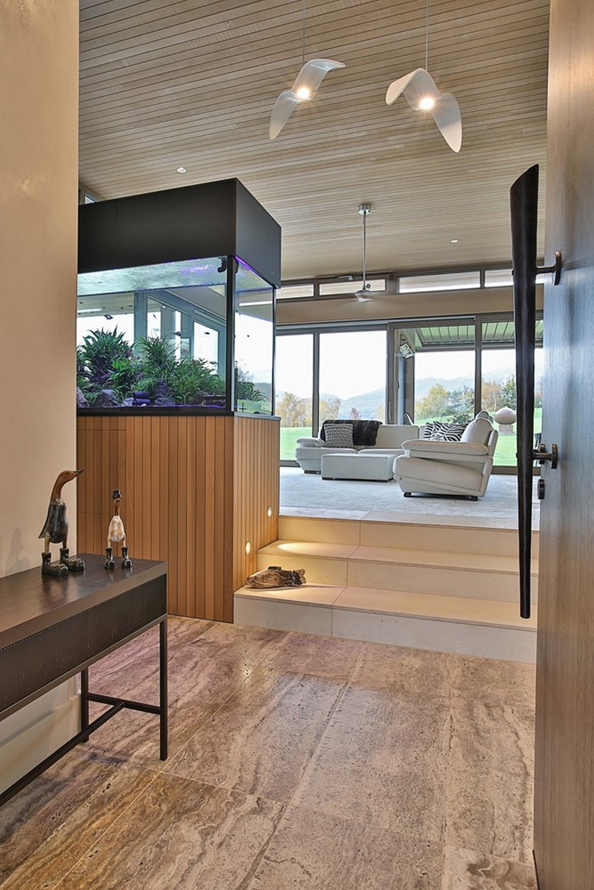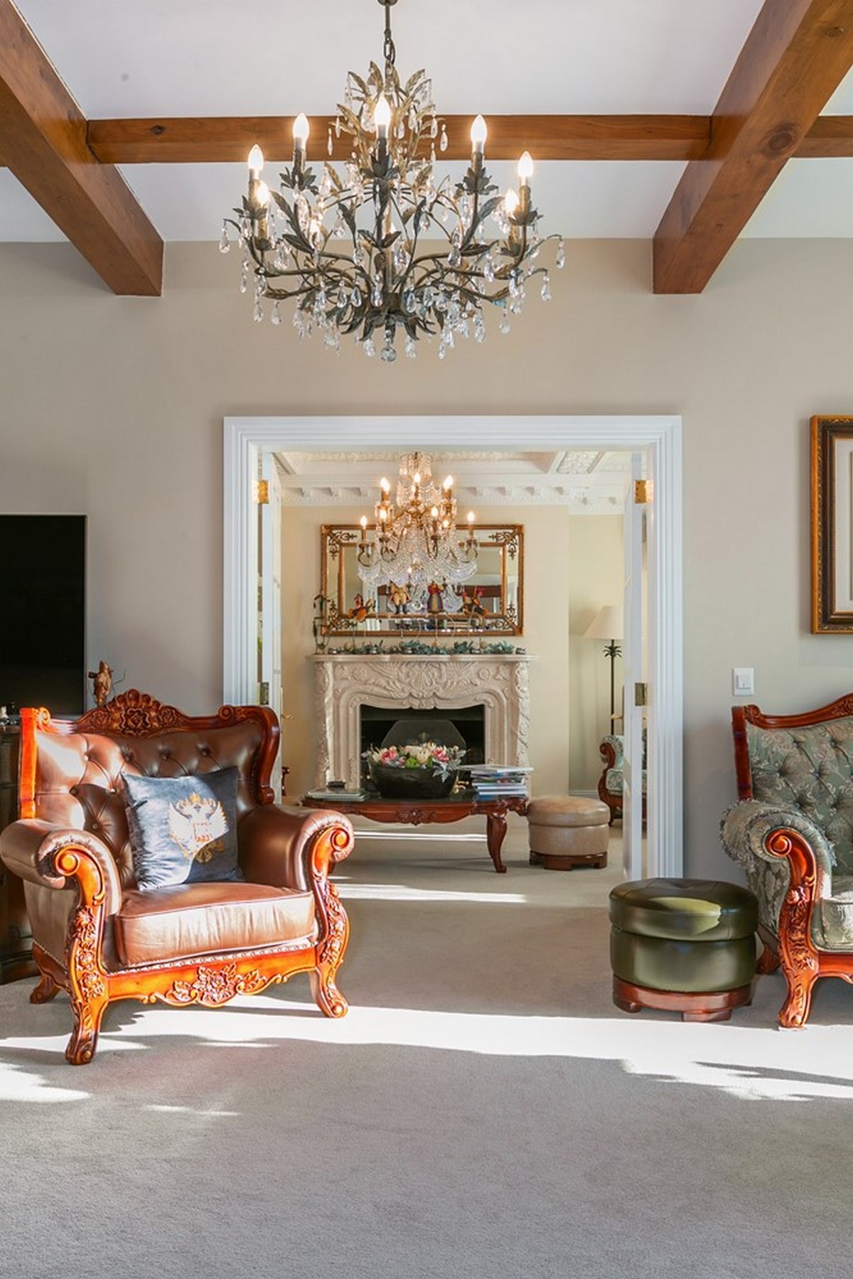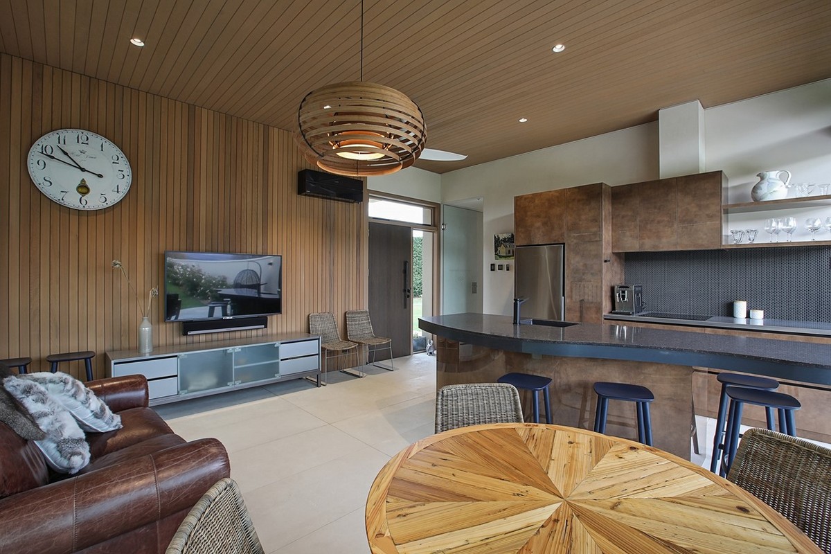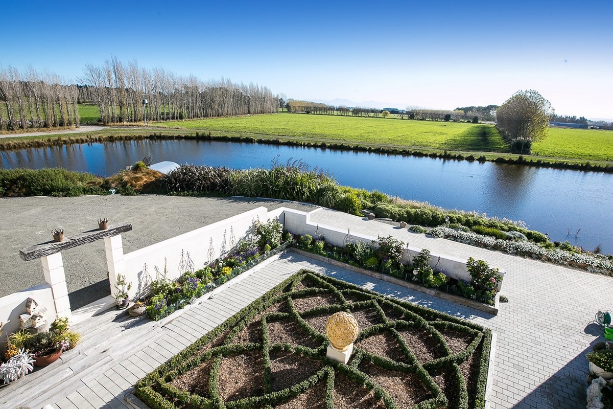 Underfloor heating comes from moat water passing through heat pumps and a furnace that warms the pipes. Some of the internal beams are made from century-old macrocarpa from the owners’ farm.