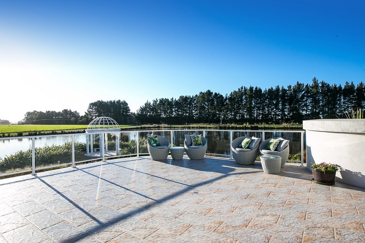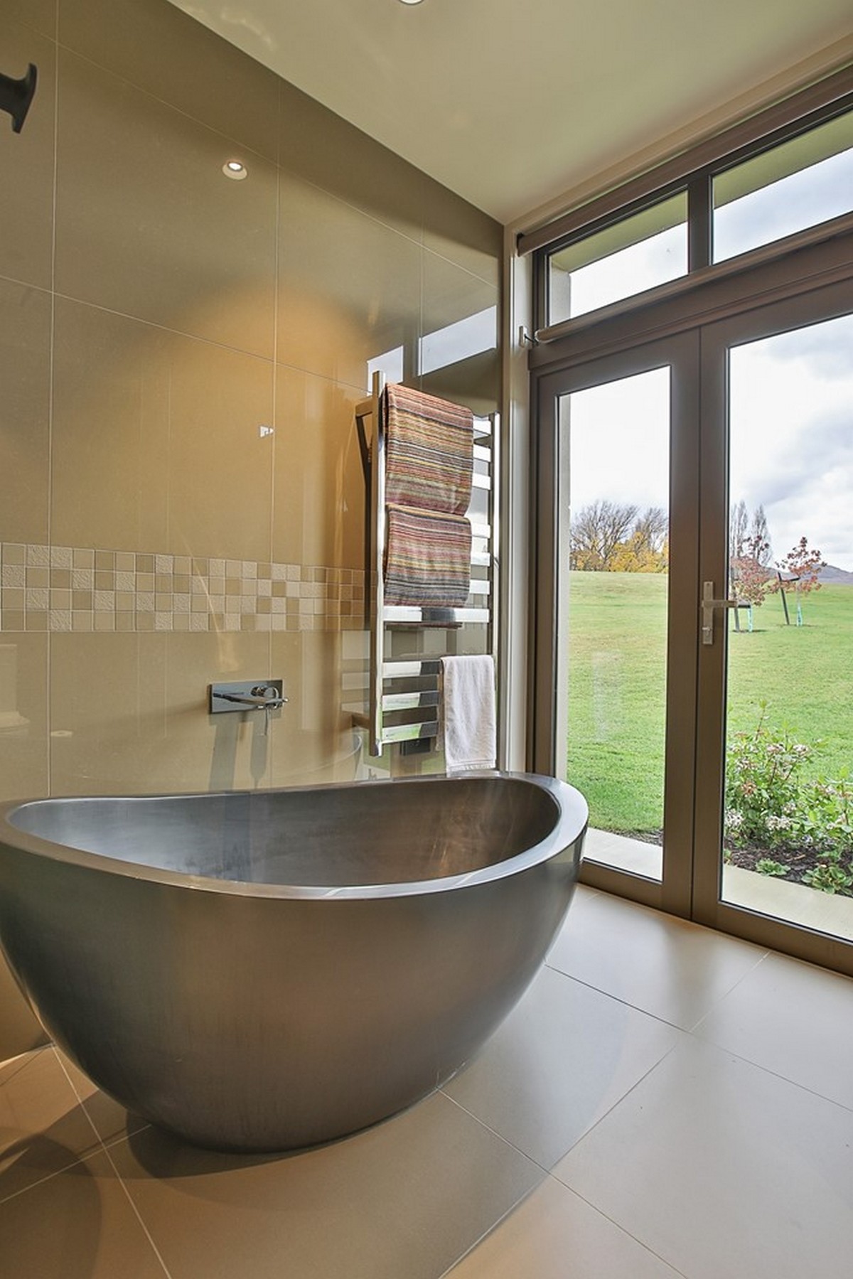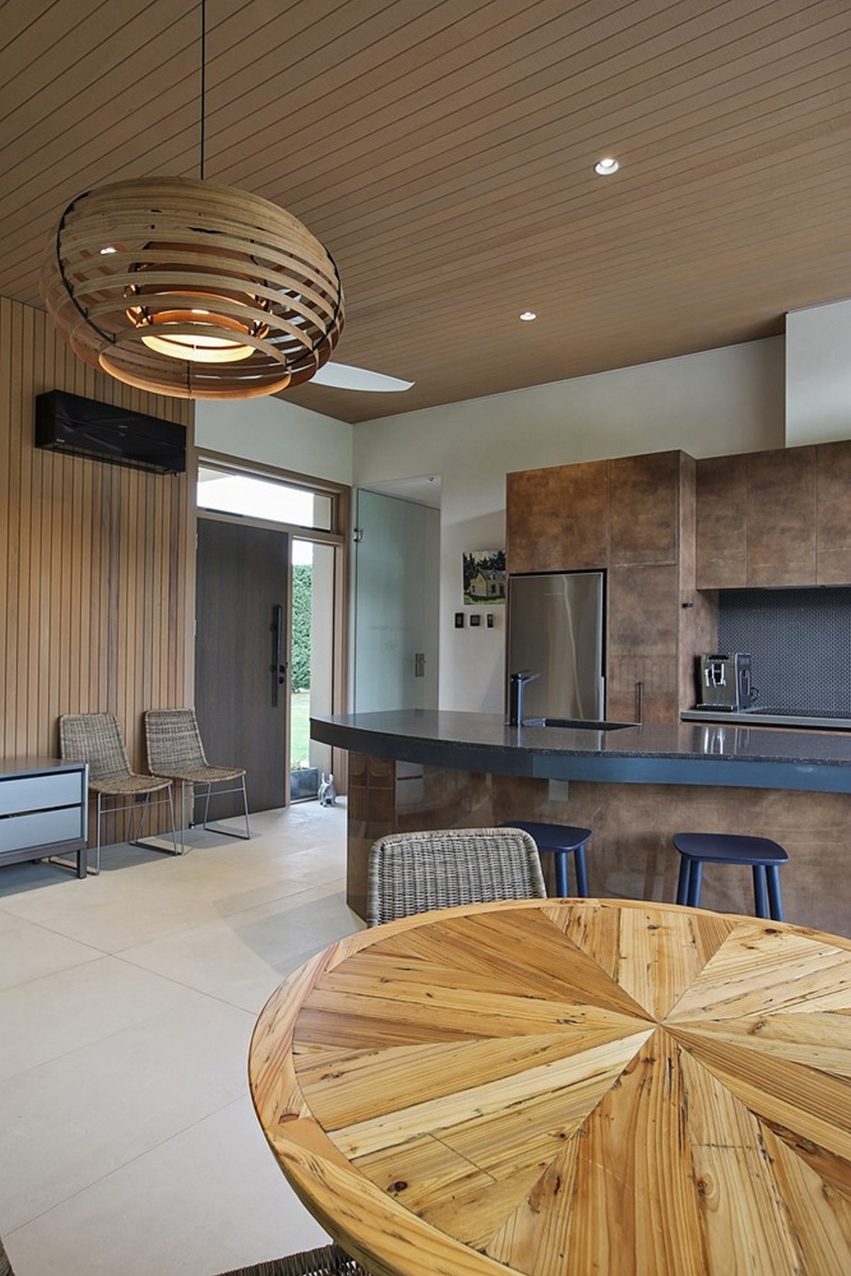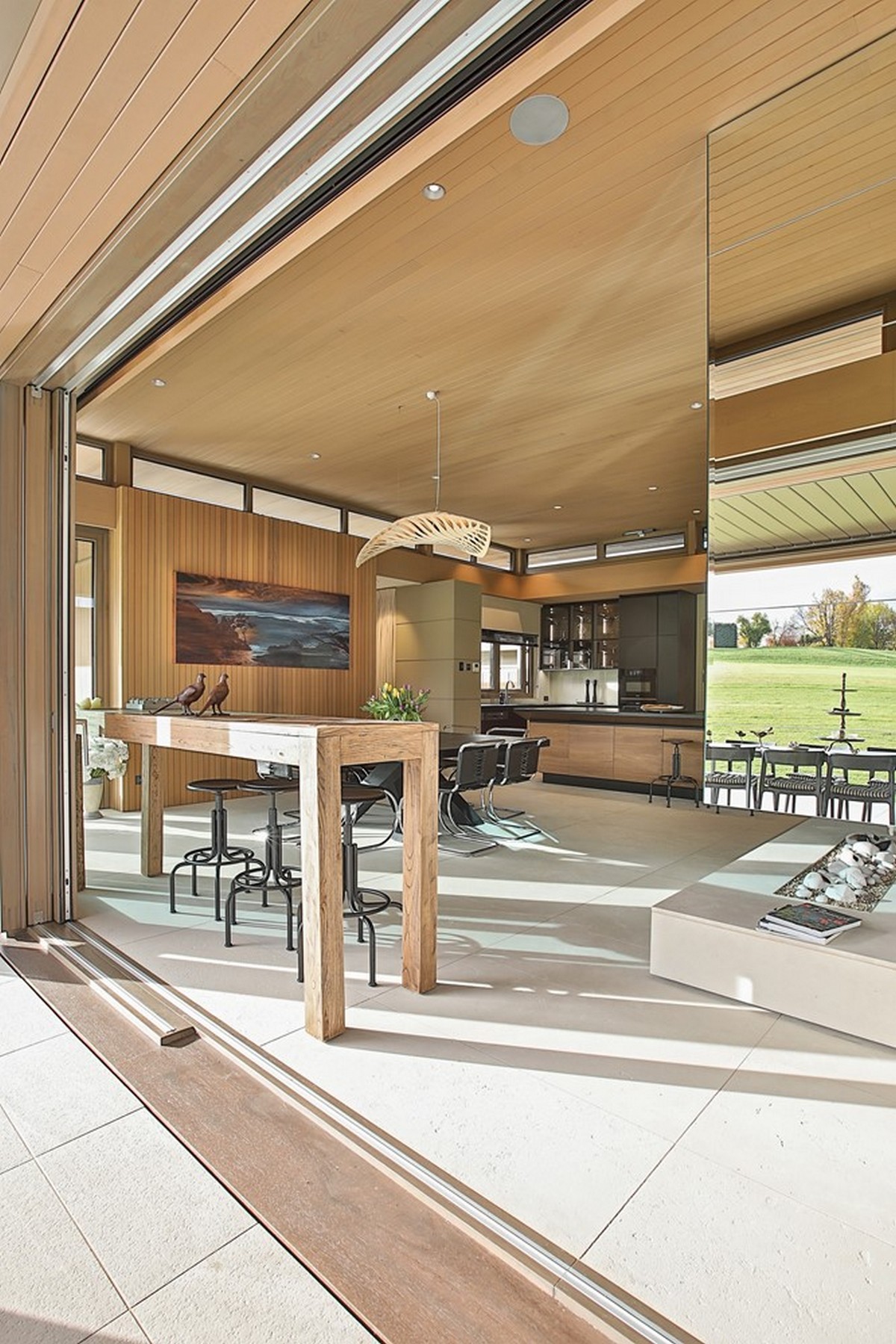 Underfloor heating comes from moat water passing through heat pumps and a furnace that warms the pipes. Some of the internal beams are made from century-old macrocarpa from the owners’ farm.