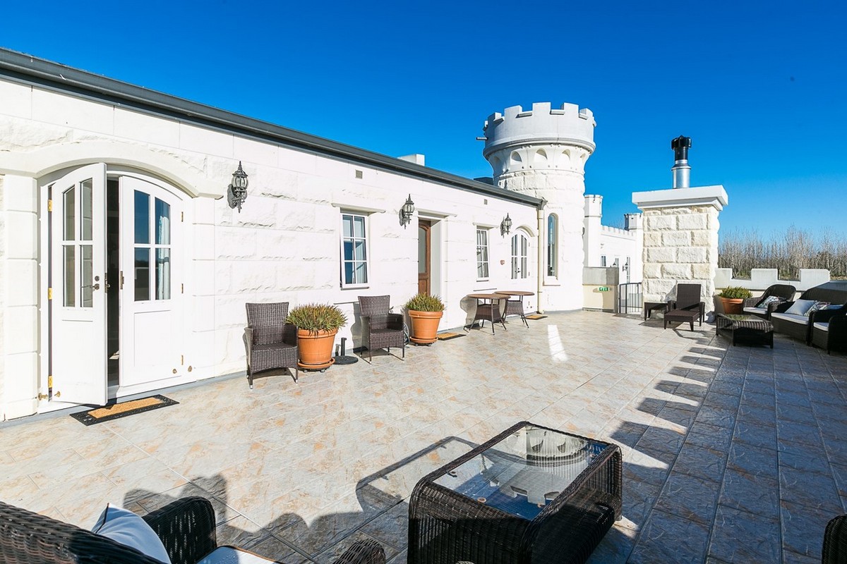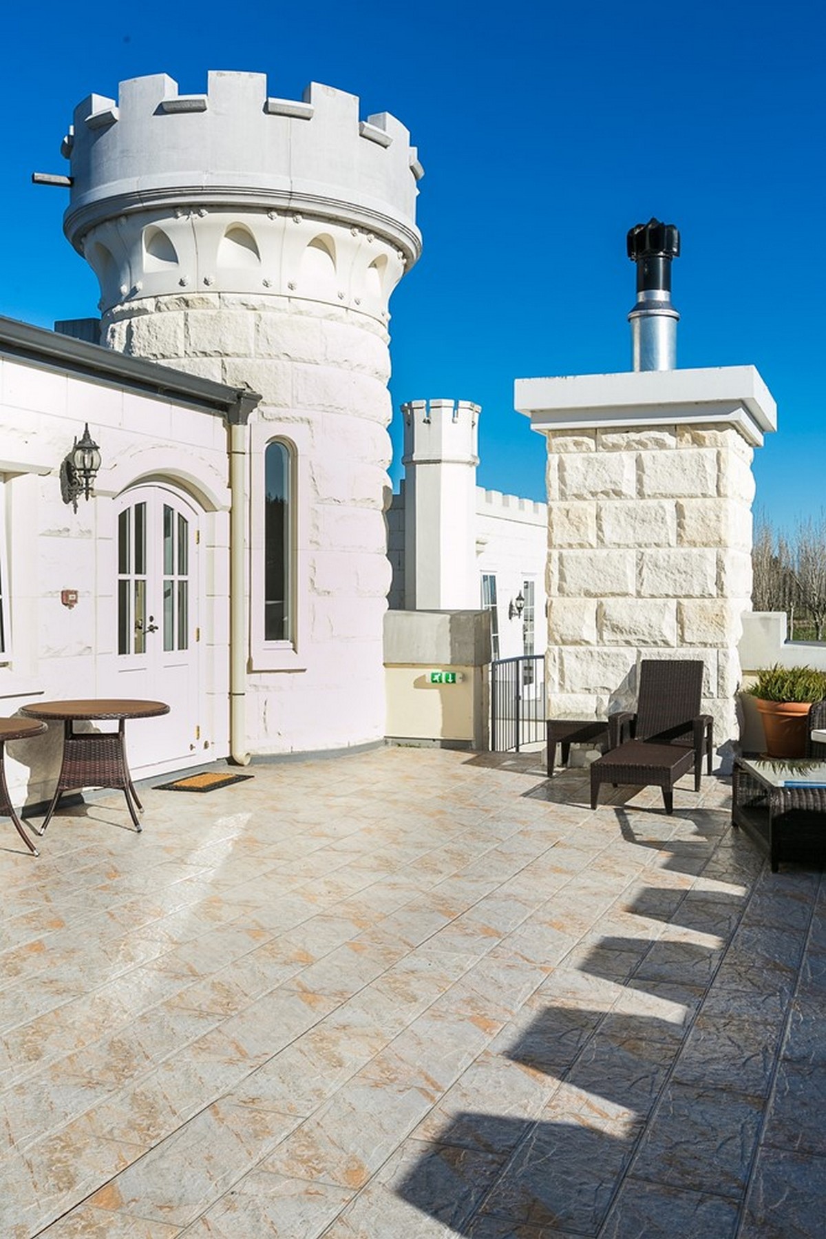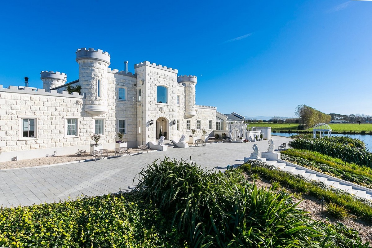 The company even dug the moat and used stones in the build. The walls, clad in custom Ōamaru bolstered stone, are almost half a metre thick and sit on huge concrete footings.