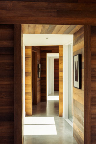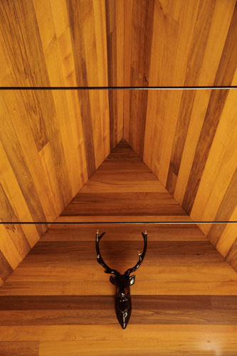 A friend told her the inside of the living room reminded her of a northland church interior. There is river rimu everywhere. Kahikatea lines the study and totara on the walkways.