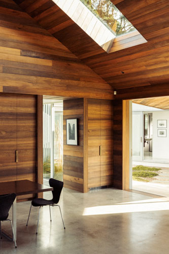 The palette of materials follows this logic as well, comprising of both the corrugated iron cladding and totara weatherboards left to naturally weather.
