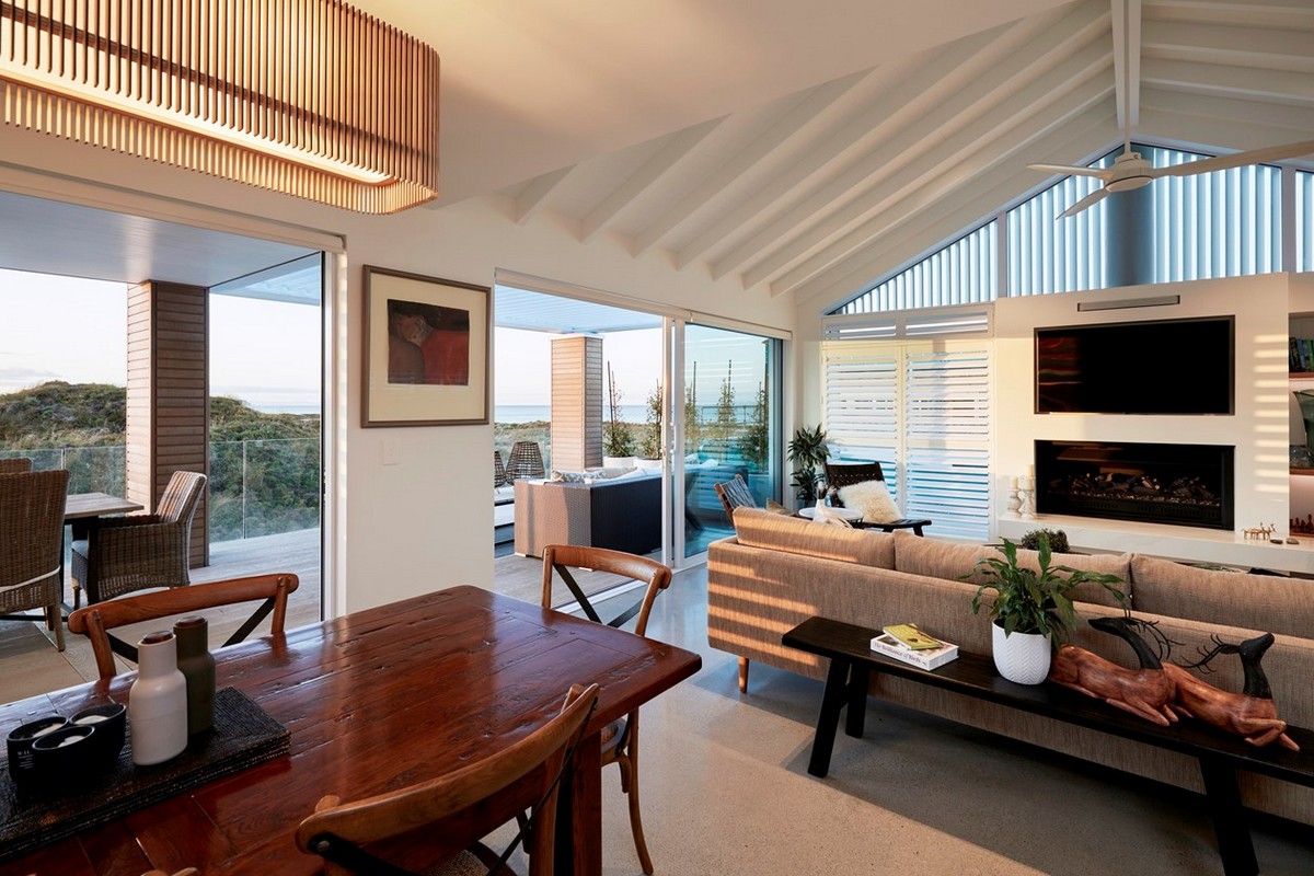 A durable palette of Oamaru stone, Sto plaster and cedar cladding helps connect this house into the coastal environment, with the owners bringing in South Island influences from their holiday home in Wanaka. Justin prides himself on an extremely high level of attention to detail with his workmanship, and this was what impressed the judges.