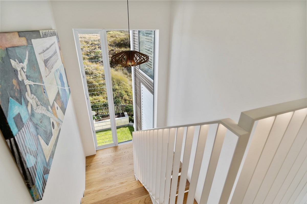 A well-defined entrance at ground level leads to a generous guest suite in one direction, or towards the feature stairwell which provides access to the floors above. There is also three car garaging, ample storage and plenty of utility space.