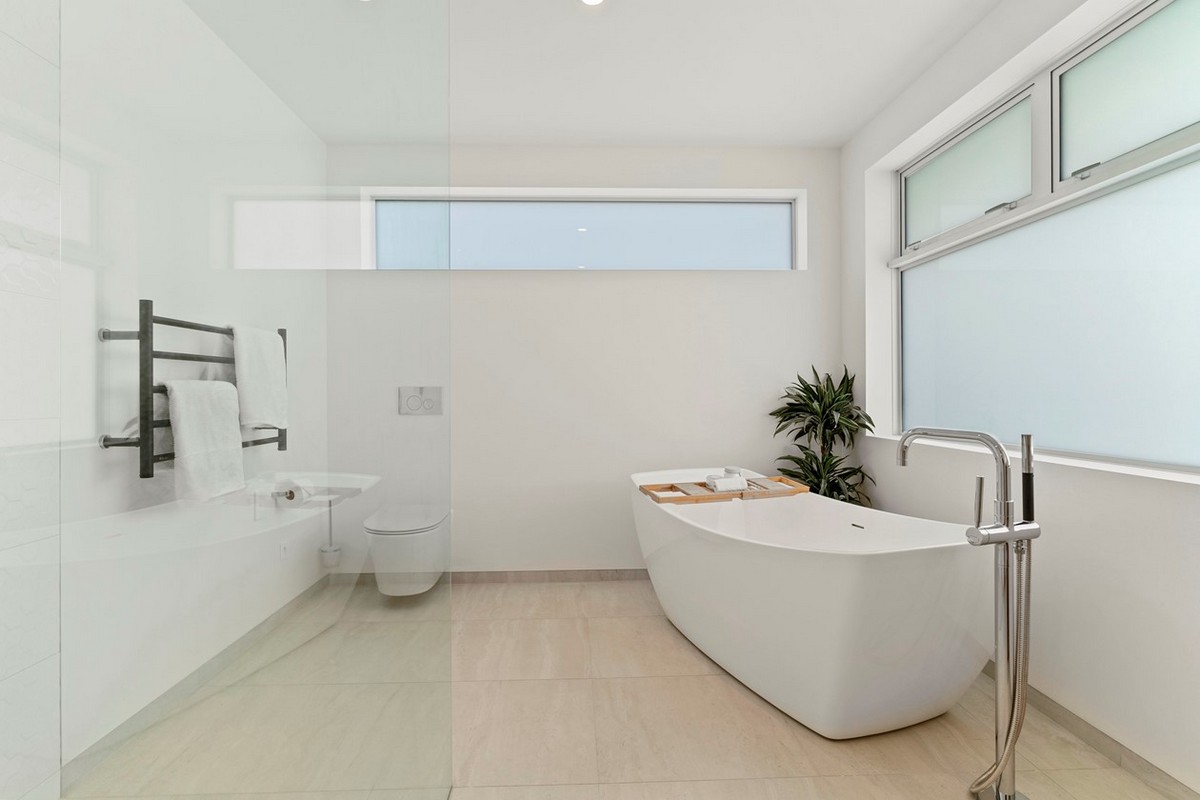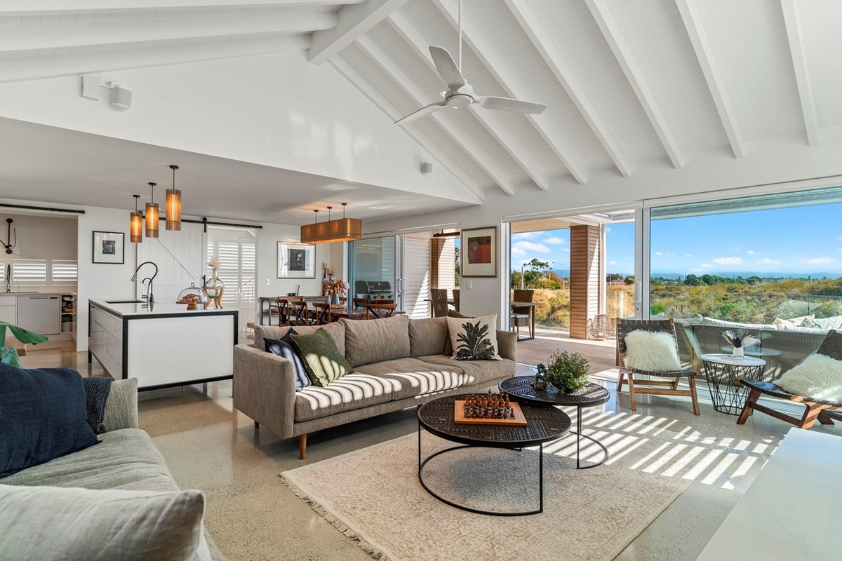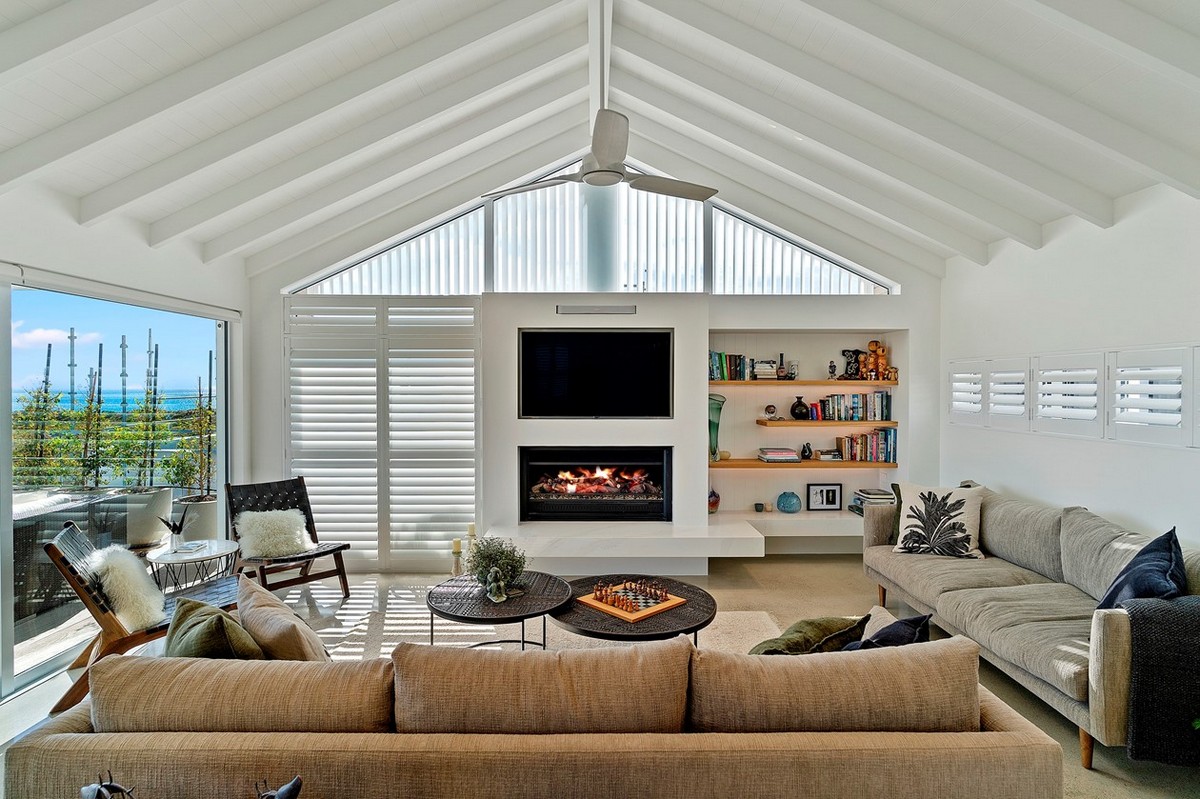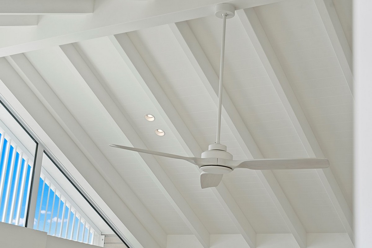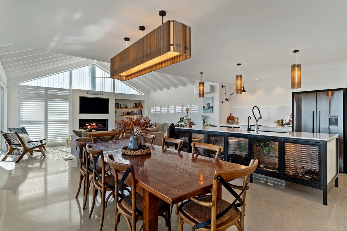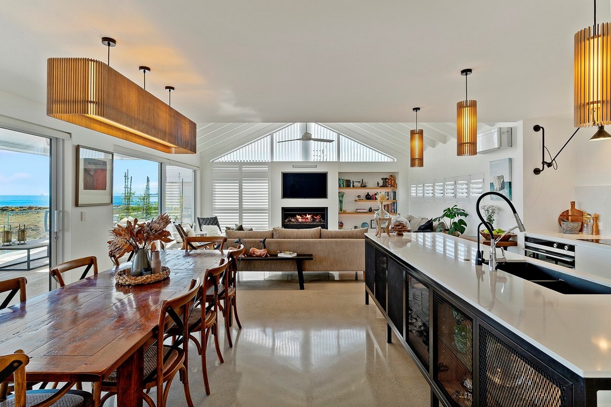 Custom made rafters with timber sarking were detailed to showcase a seamless look with the absence of timber trim to hide any joins. The same process has been used around windows, walls and doors, with architraves and skirtings all removed to give the home an uninterrupted ‘less is more’ look.