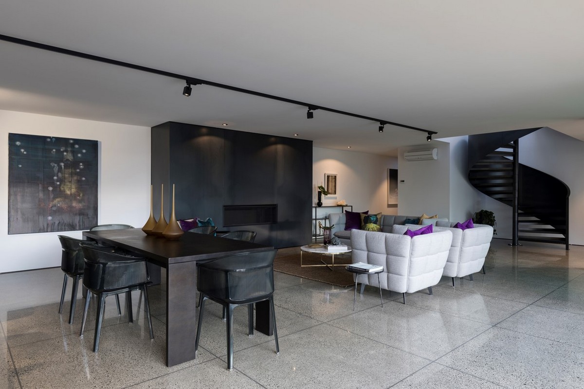 Take the steel spiral staircase to the deceivingly large upper level and cast your eyes up to view the two-metre round dome skylight.