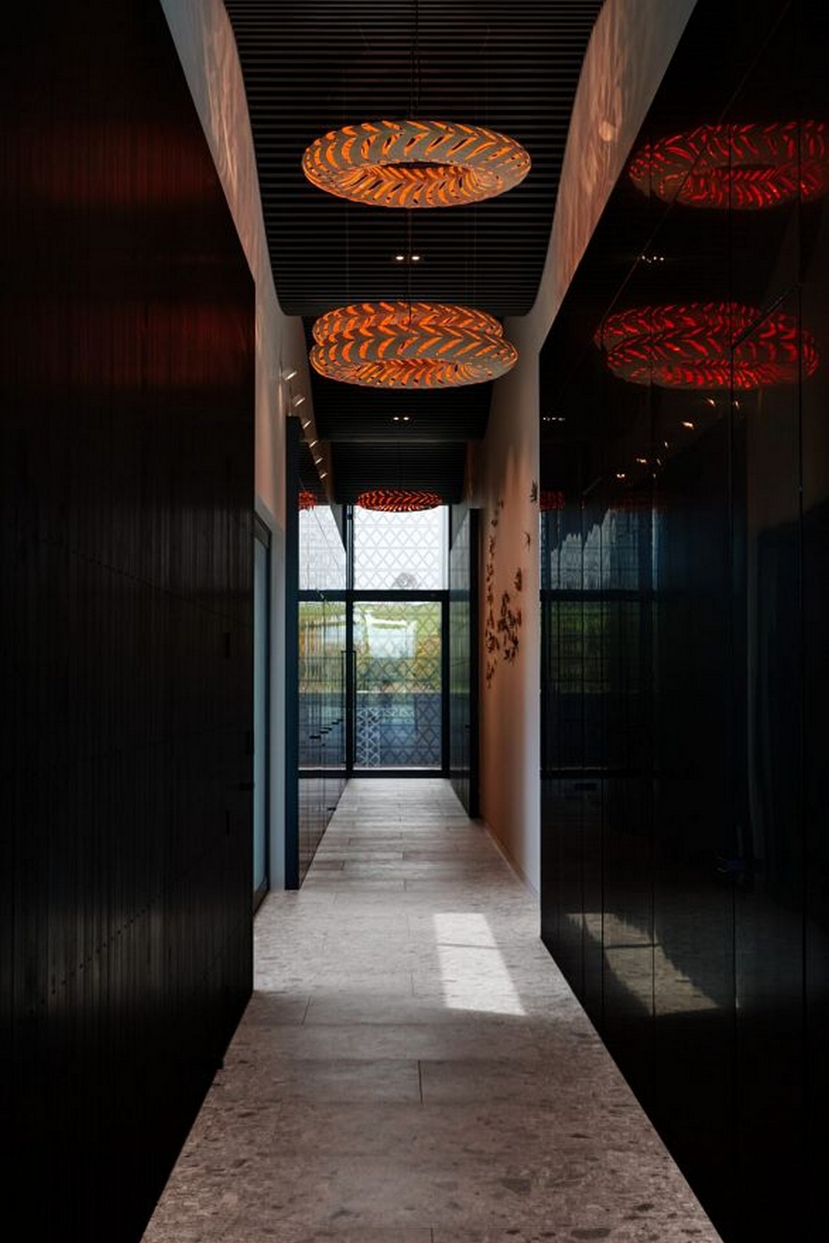 A cleverly created concealed access to the living spaces extends from this central core, and sliding doors on both sides of the main living area open to create a canopy feel.