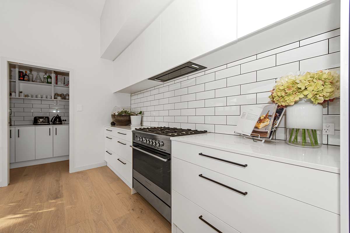 The kitchen is another KitchenTech creation, 4.4m long with a 3.4m island and a Smartstone benchtop and skullery. The flooring is quick-step Imperio range.