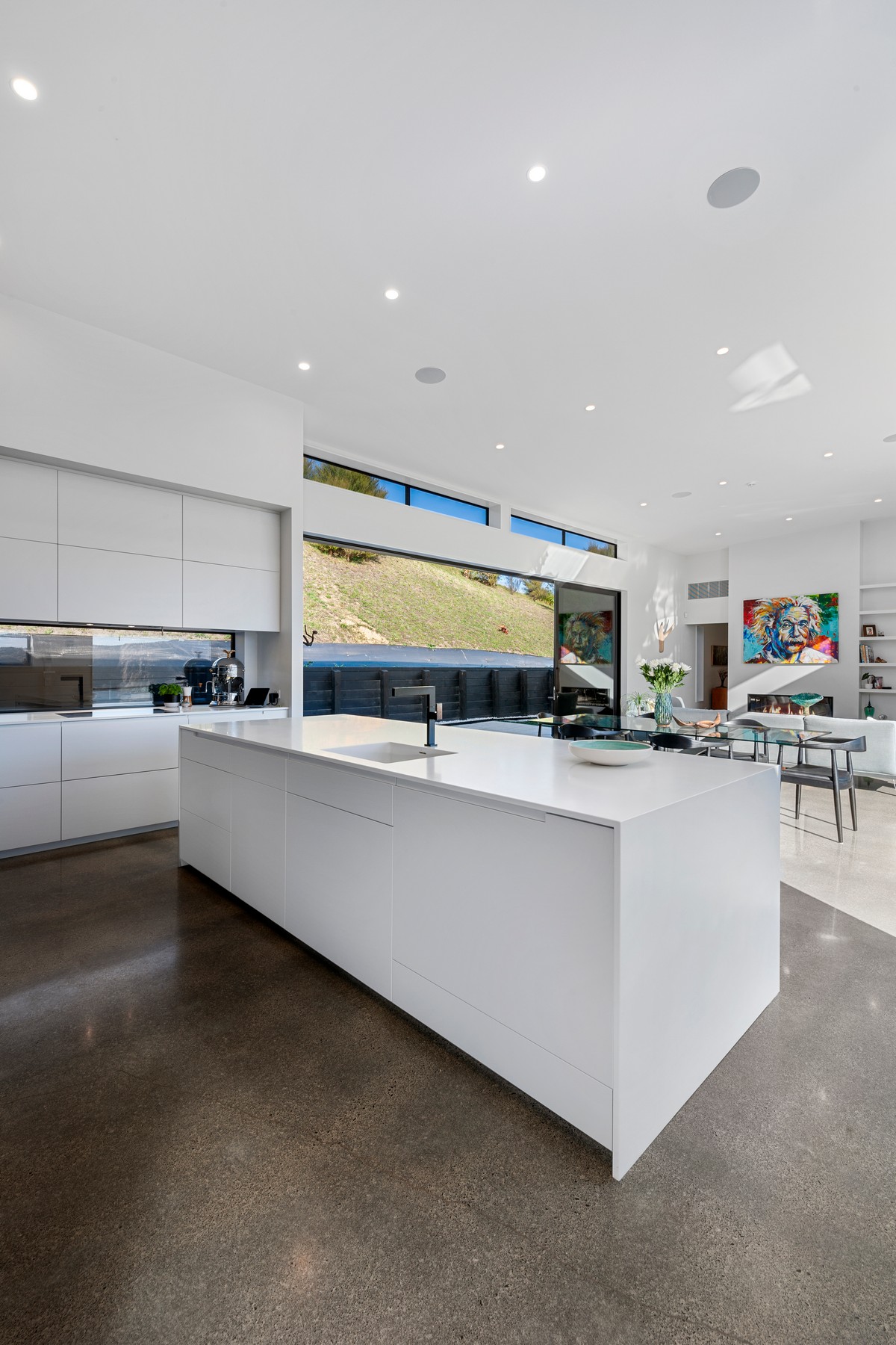 Texture, flow and epic views are cornerstones of this design. Vast exterior joinery, high ceilings and a designer kitchen and bathrooms appeal to the owner’s fine taste and discerning eye.