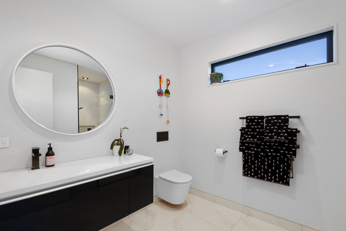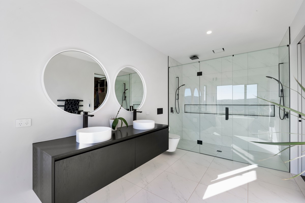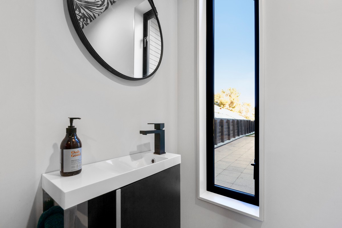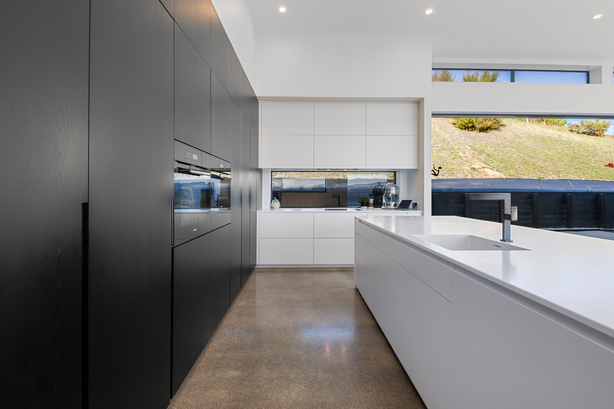 Made to attract lots of admiring looks, flow and spectacular views are foundations of the design. There’s an emphasis on style – including the dark exterior joinery. High ceilings and cleverly designed kitchen and bathrooms appeal to the owners’ refined taste and eye for style.