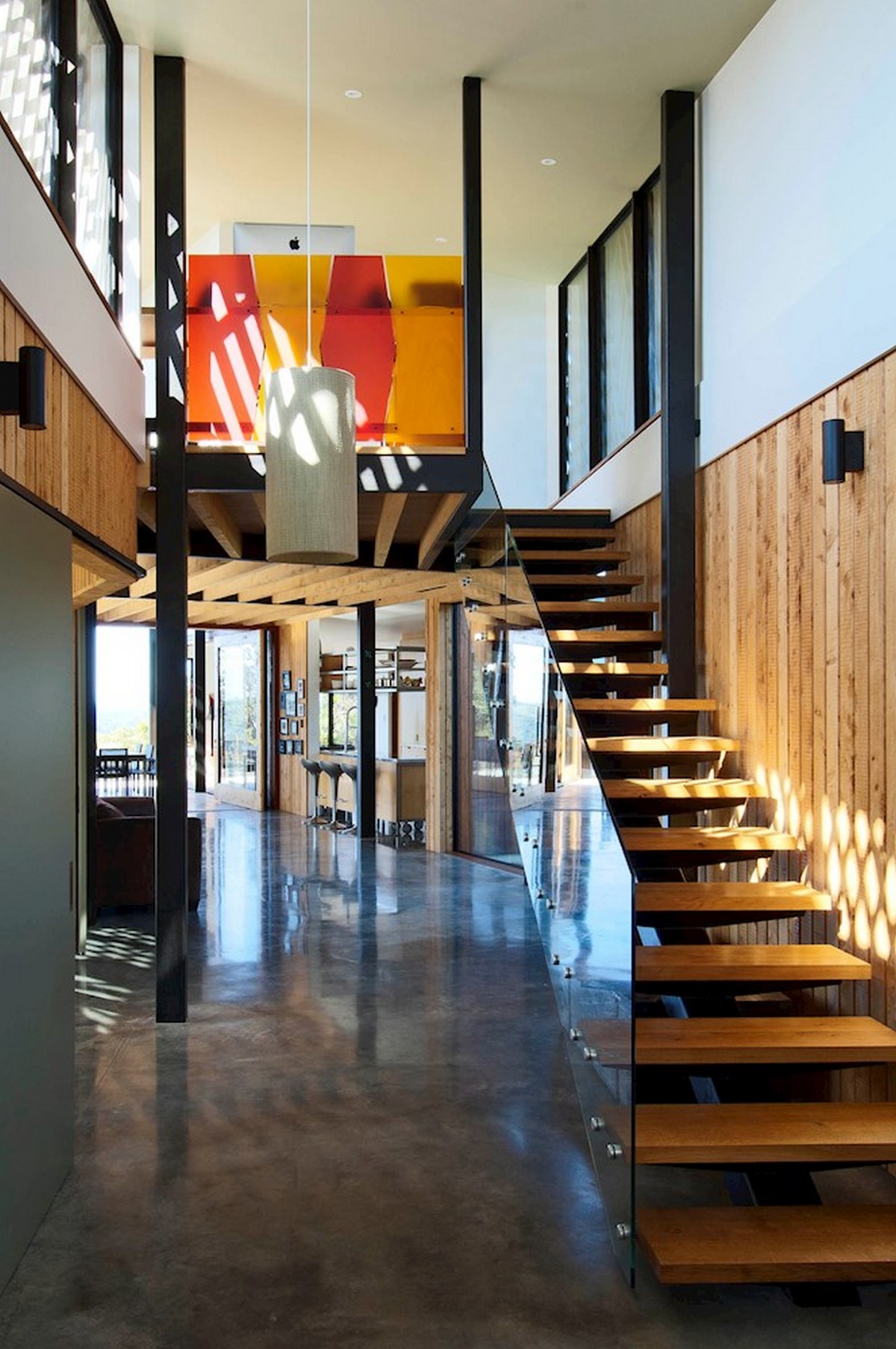 Made from a natural balance of different building materials, including rammed earth exterior walls and concrete with metal and cedar accents throughout, the design focus is on allowing maximum light to enter the home.