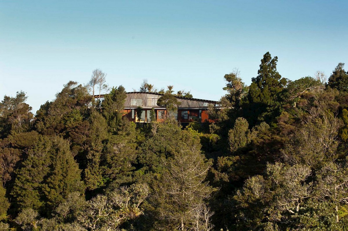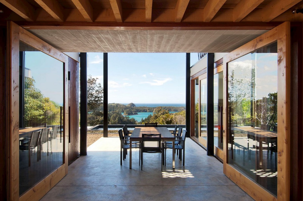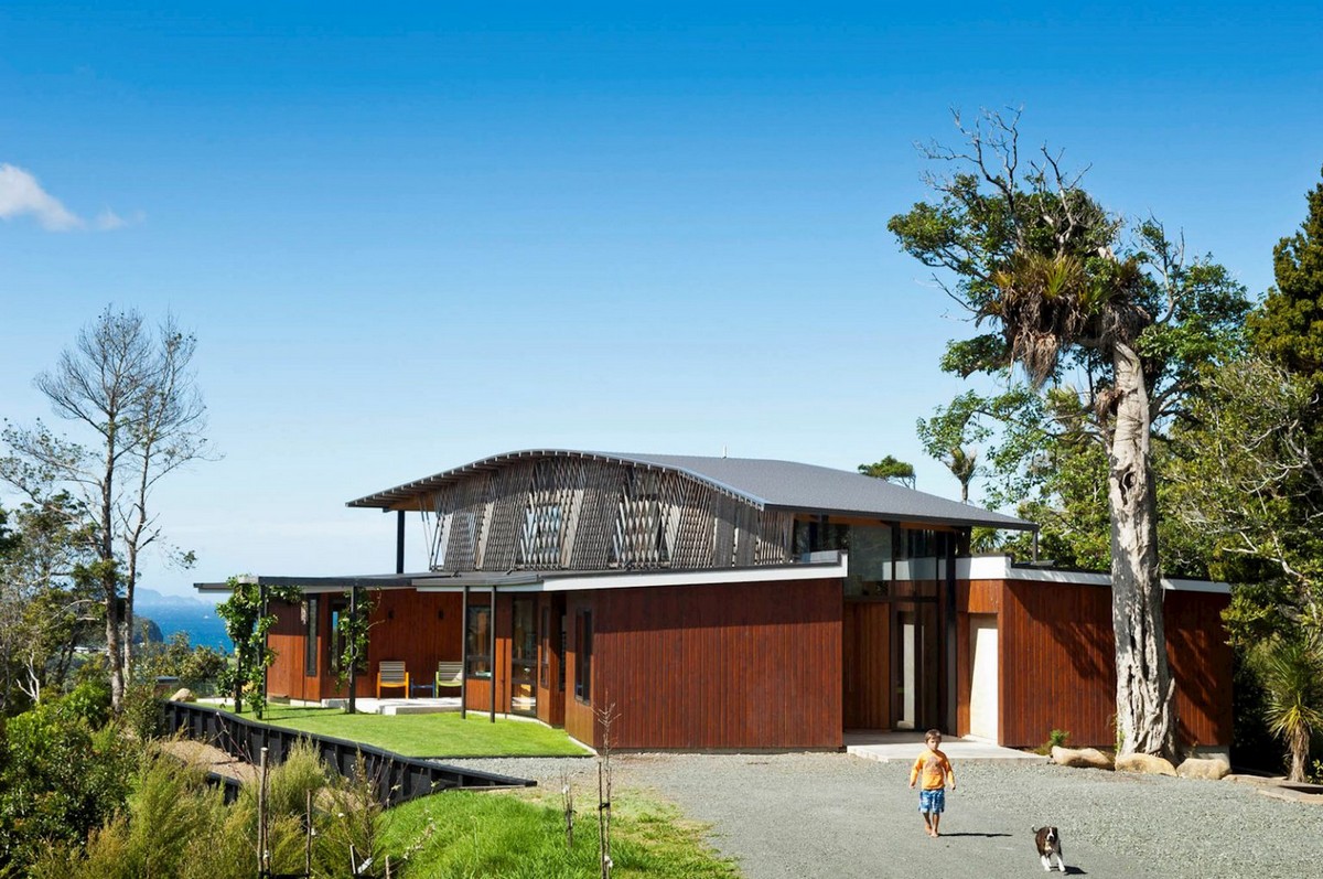 Designed by Herbst Architects, and with views to the Poor Knights Islands, the home sits comfortably amongst the surrounding bush.