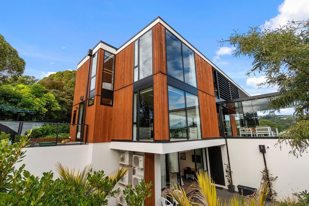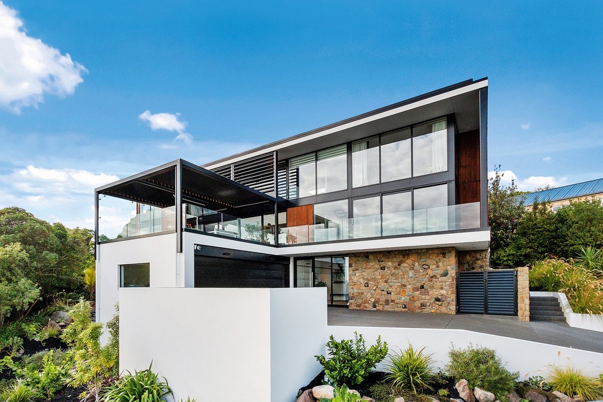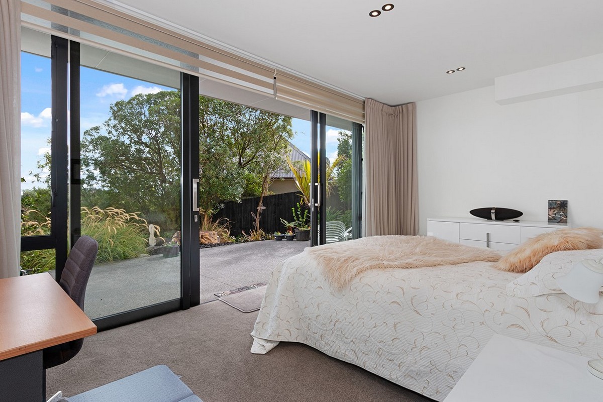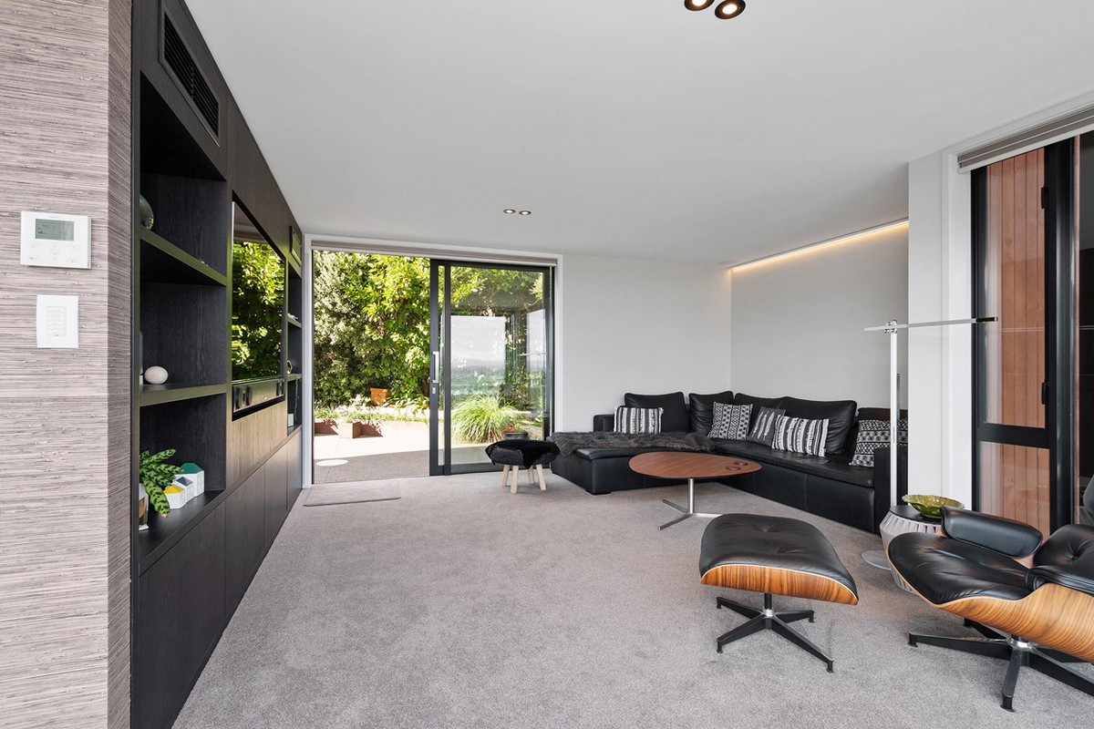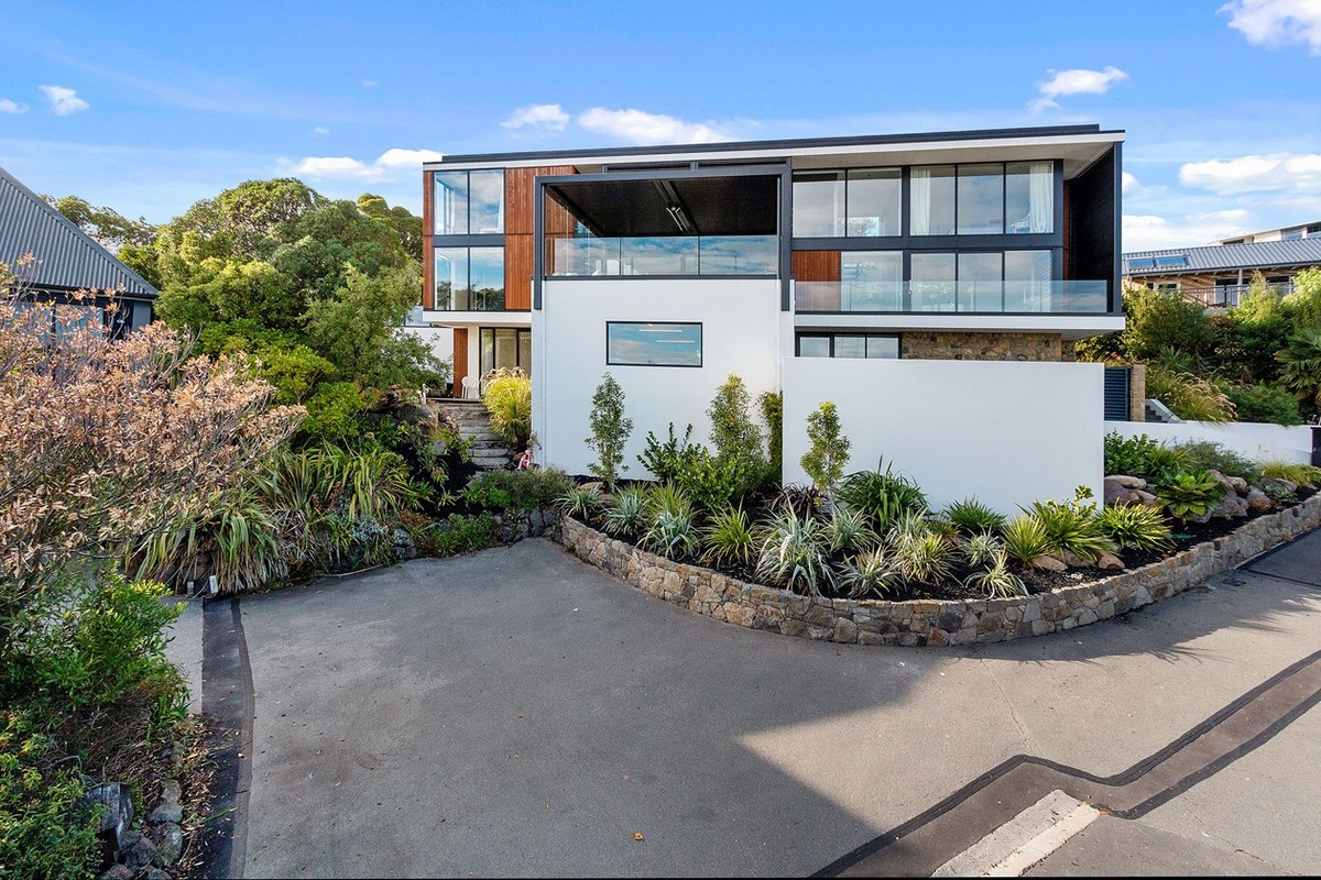 Rooted in mid-century design, this four-bedroom, four-bathroom residence offers ultra-modern living in Christchurch. A mix of cedar, plaster and natural stone, framed by sharp landscape design, invite you in.