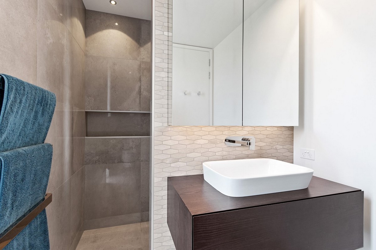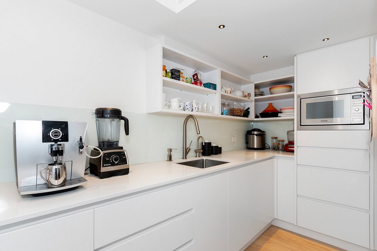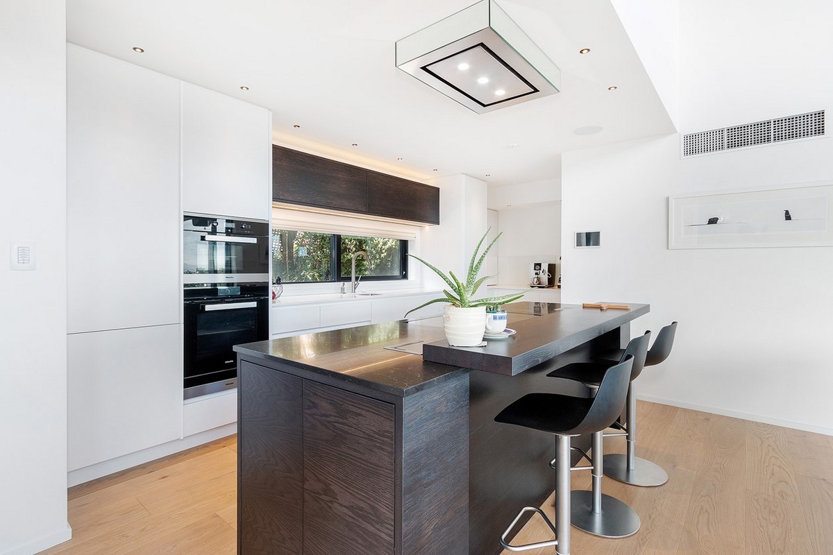 For a grander ascension, the dramatic central staircase awaits. With its open black metal treads and glass balustrades, this stunning structure rises three storeys. Swimming in natural light, it celebrates that all-important outlook on the way up.