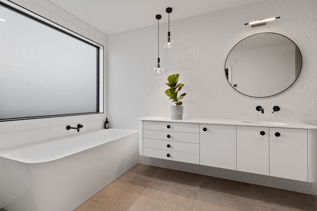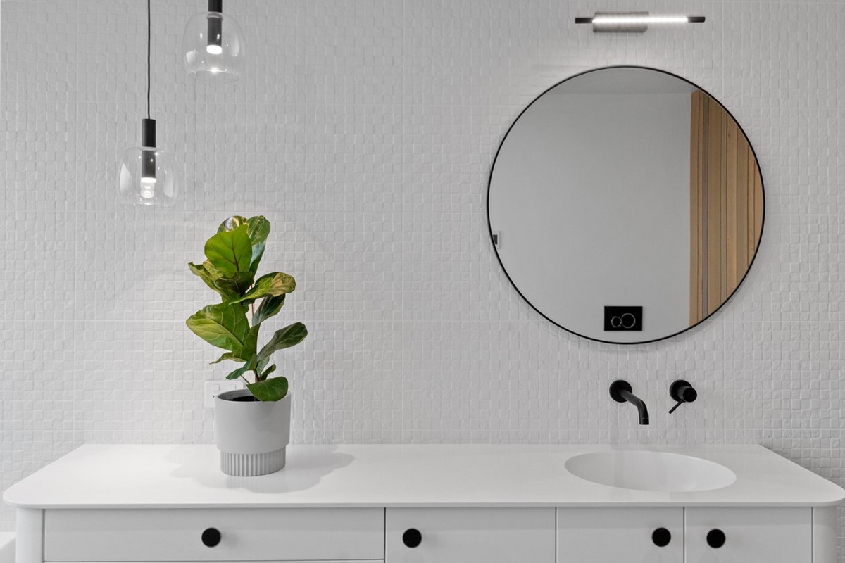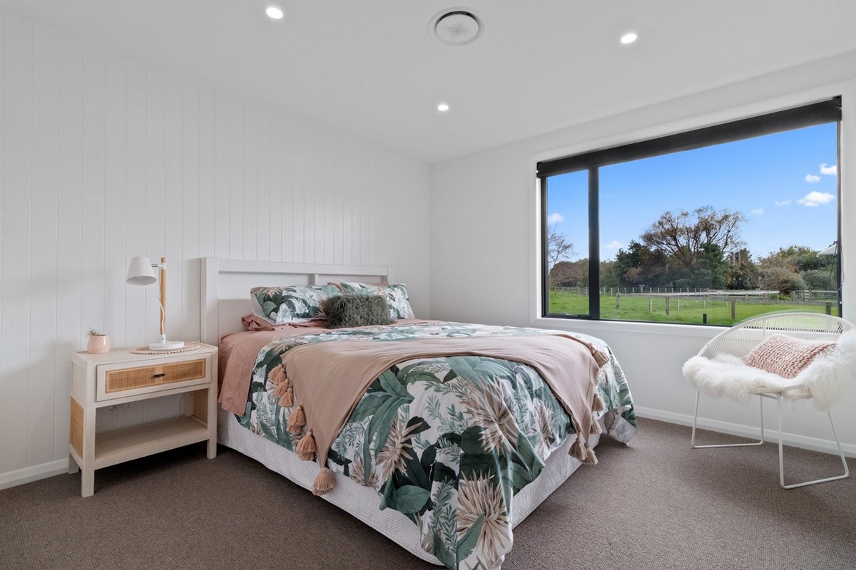The Caesarstone benchtop also makes a strong statement in the kitchen, while the rural views of the surrounding landscape straight out through the window is a welcome distraction.