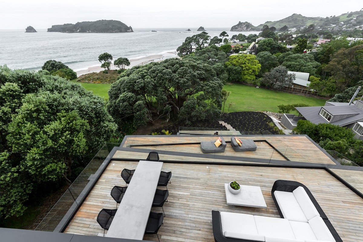 For many New Zealanders a dream of holiday involves sitting at the beach, under a pohutukawa tree on a hot day. Simple pleasures, simple needs. This Cove Construction house provides two of those elements. Located above one of Aotearoa’s most beautiful beaches, this Hahei house not only provides magnificent coastal views and the shade of an ancient pohutukawa tree, but also mirrors those elements in the design. The only thing Cove Construction can’t control is the assurance of a hot day. As always in New Zealand, that is at the whim of our temperate weather gods.