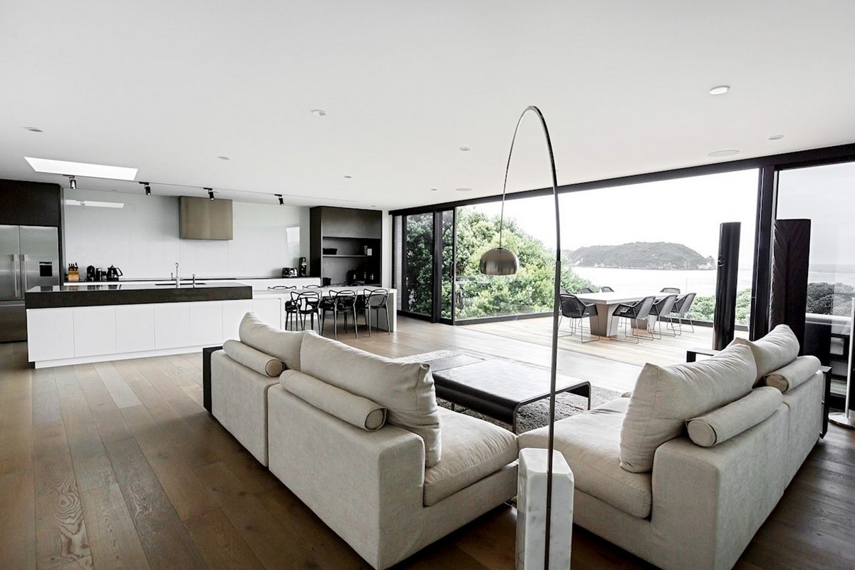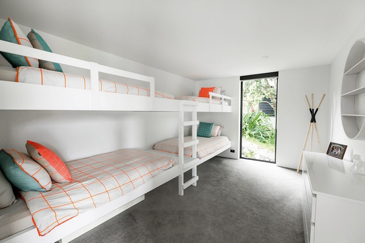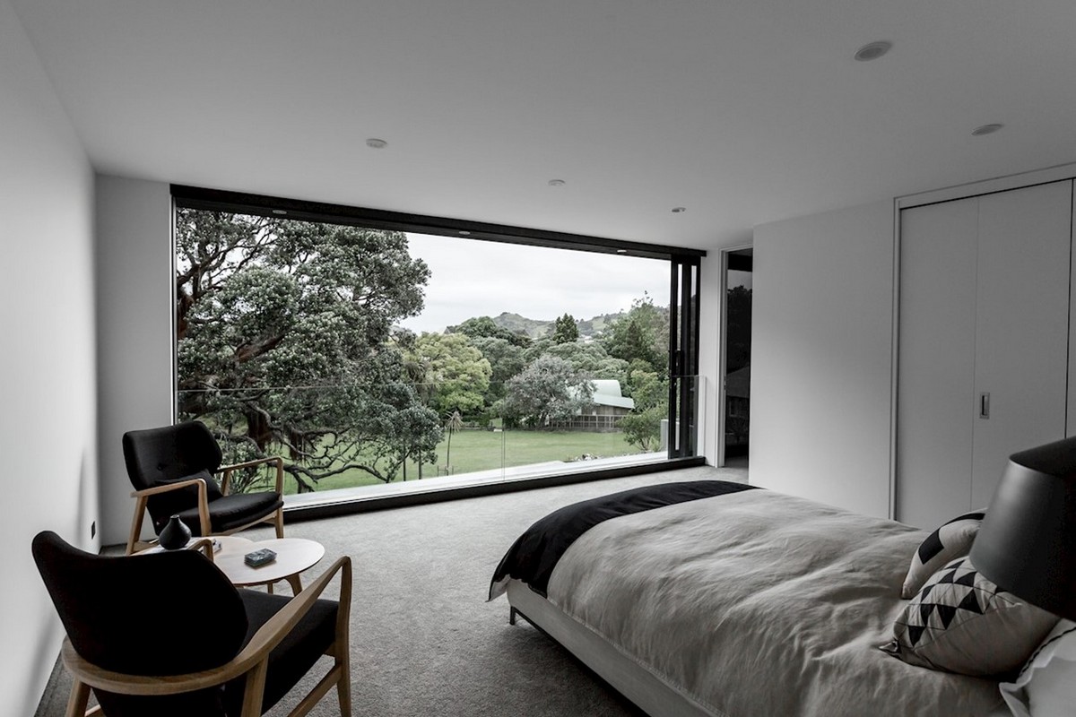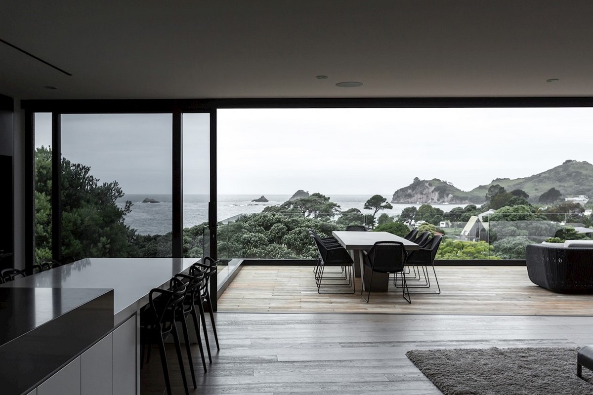 The magic of this house is that it retains a substantial floor plan without looking heavy on the land or overwhelming the site. It contains four bedrooms, four bathrooms and three living areas, yet somehow manages to look majestic, mirroring the overwhelmingly beauty of it’s immediate surroundings. The playfulness of a roof top deck is a good example of how this house reacts to the location and makes the most of it in a subtle, elegant manner.