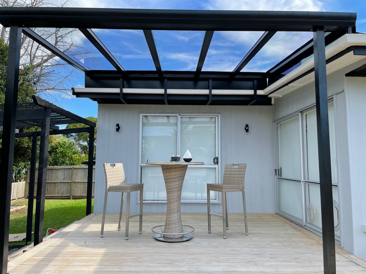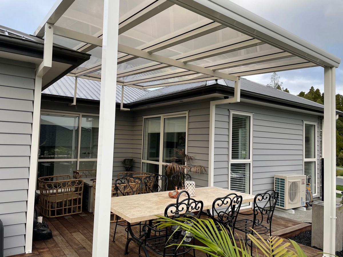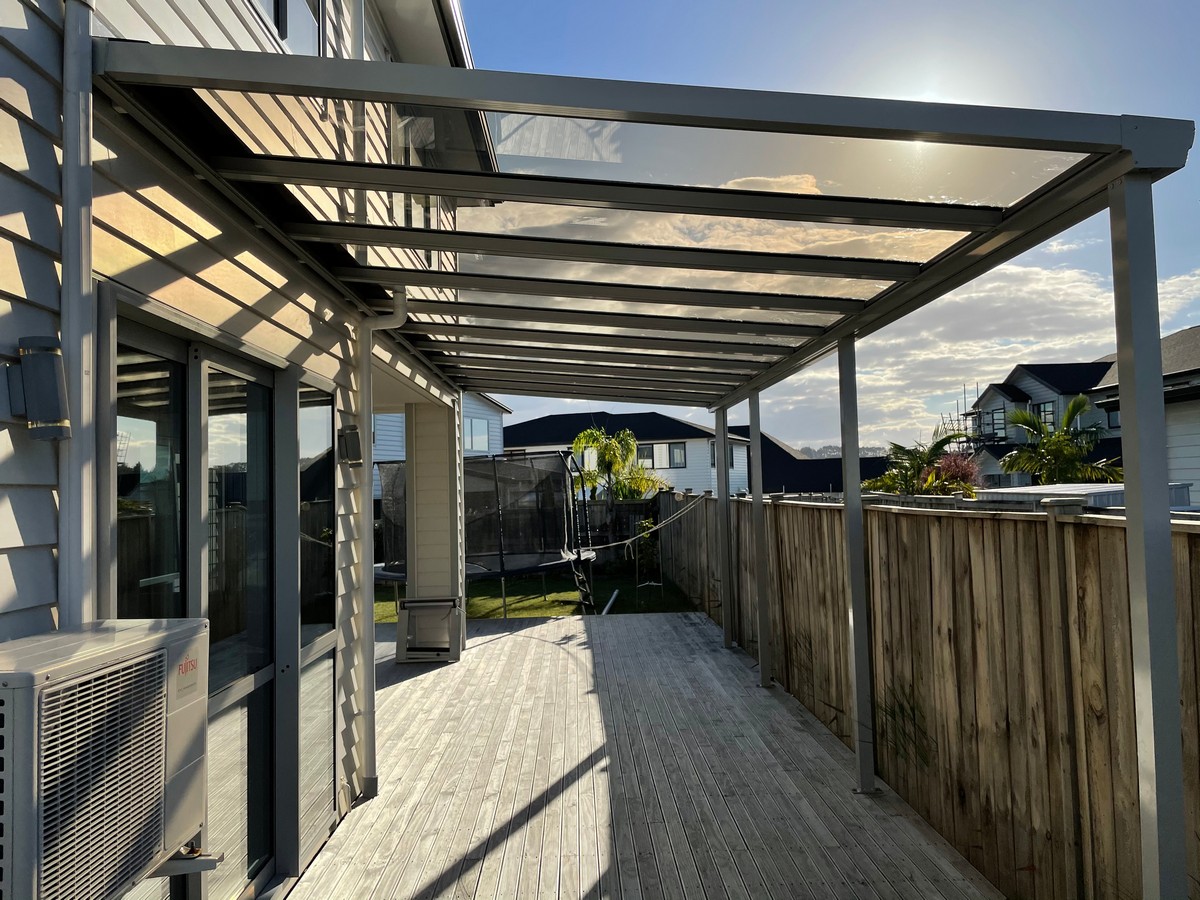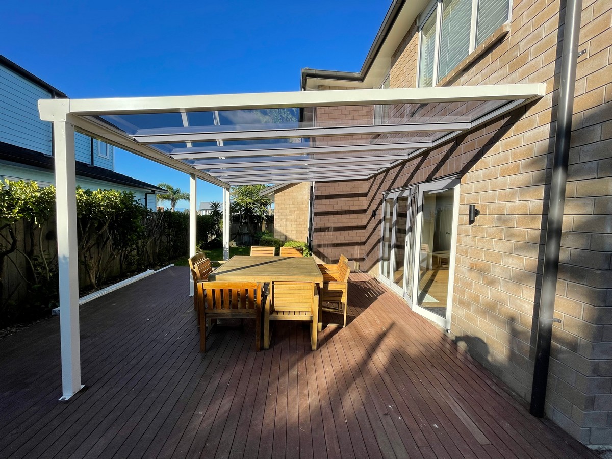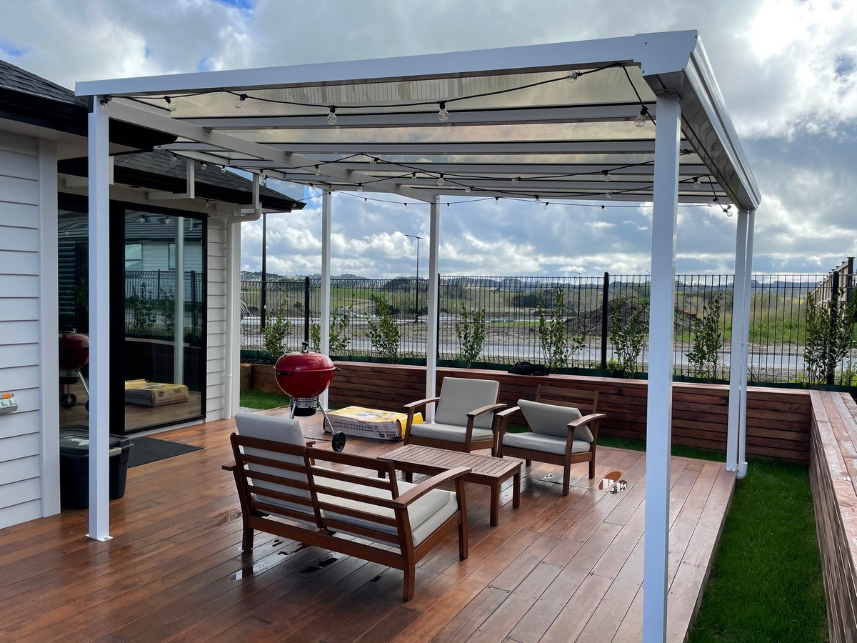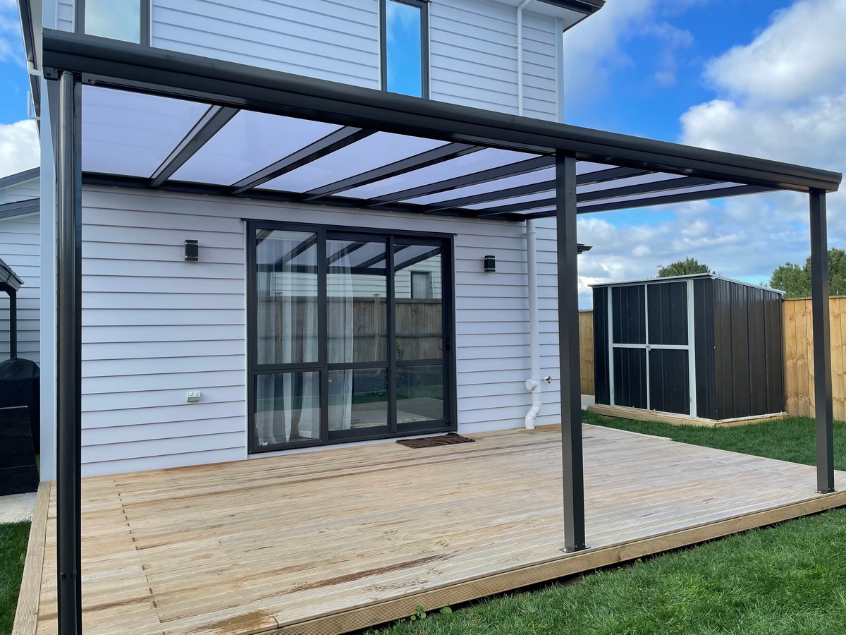 Smart Shade NZ is one of the installers of TransroofTM , which also features a solid flat clear polycarbonate sheet roof for a clear view. Canopy Tech owner Ray Zhuang said outdoor living area is become more important then ever, “it is another heart of the house.” He believes timber structures with corrugated sheet roofing shelters have become outdated, and new aluminium structures are now dominating the market. The design of the hard roof canopy (flat sheet roofing) is simple but modern, complementing the ever-changing New Zealand housing market.