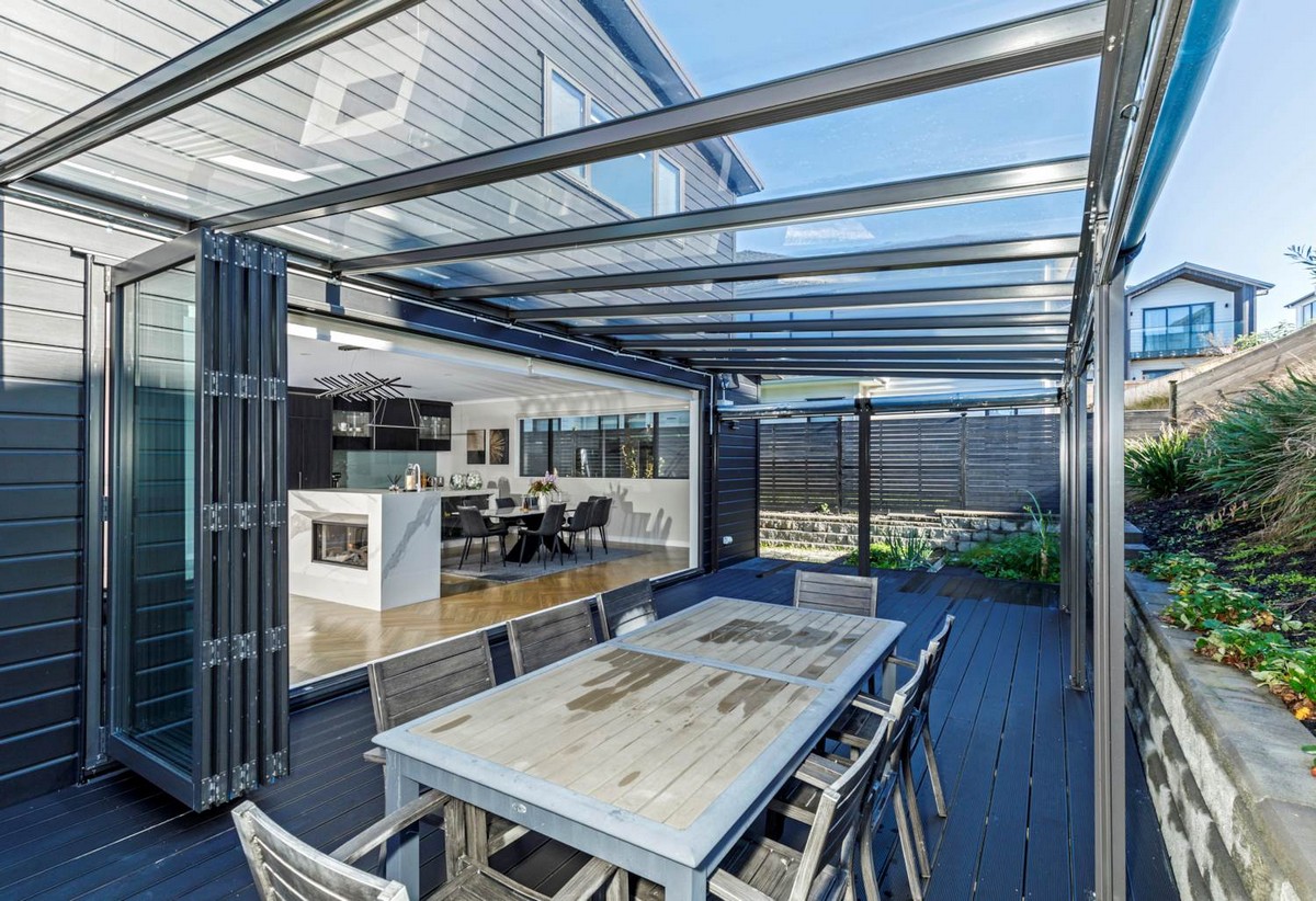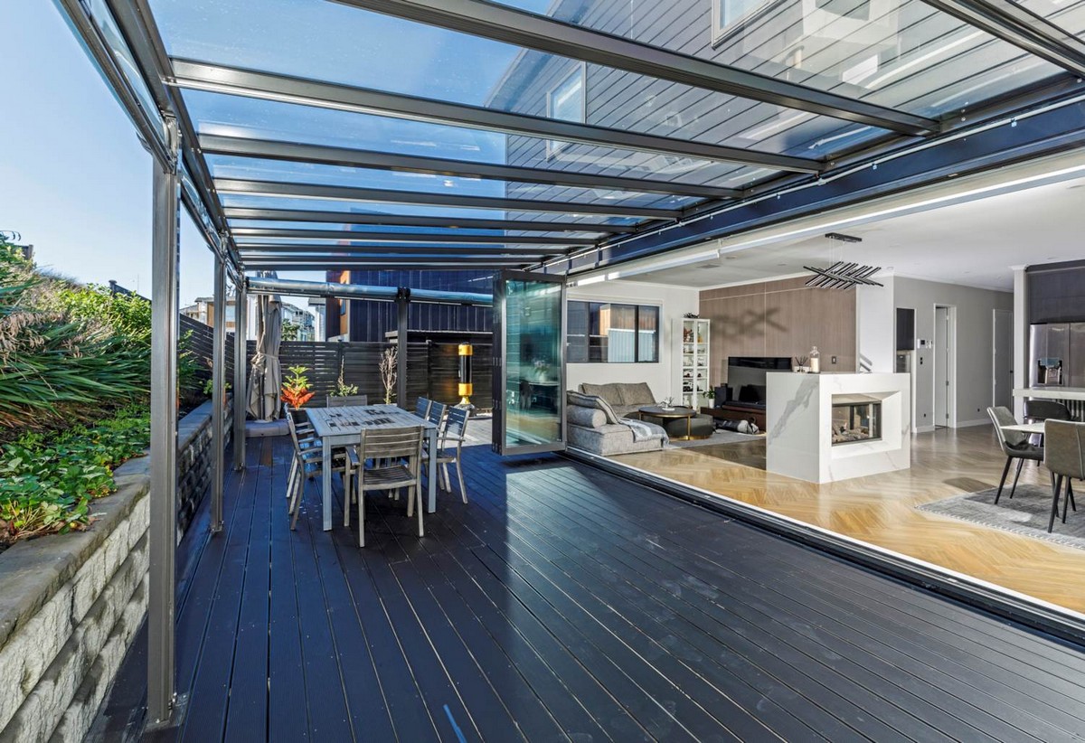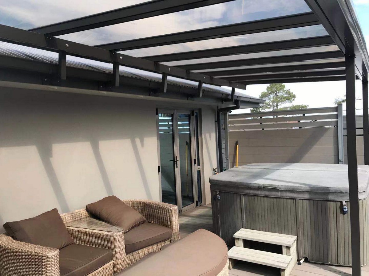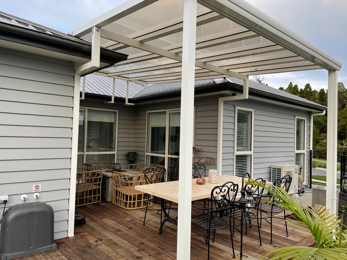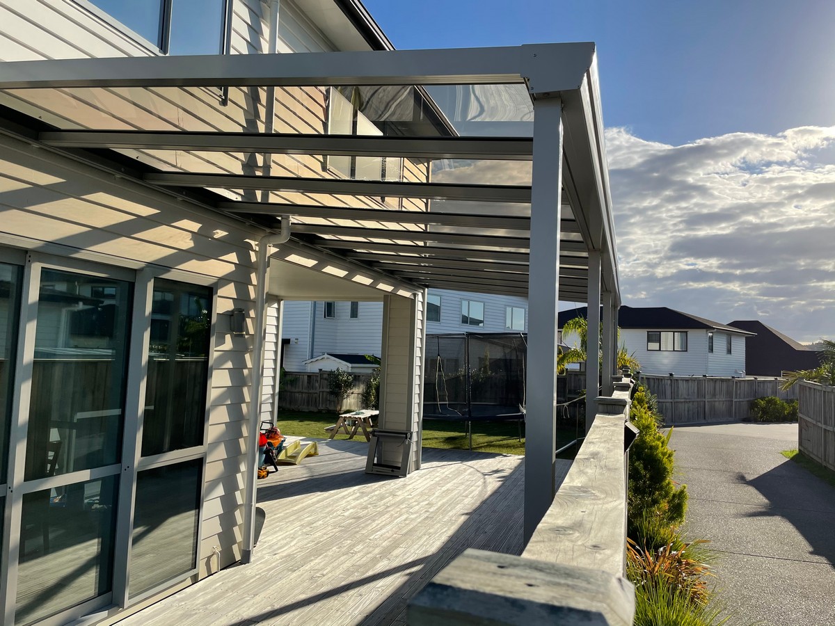 Smart Shade NZ is one of the installers of TransroofTM , which also features a solid flat clear polycarbonate sheet roof for a clear view. Canopy Tech owner Ray Zhuang said outdoor living area is become more important then ever, “it is another heart of the house.” He believes timber structures with corrugated sheet roofing shelters have become outdated, and new aluminium structures are now dominating the market. The design of the hard roof canopy (flat sheet roofing) is simple but modern, complementing the ever-changing New Zealand housing market.