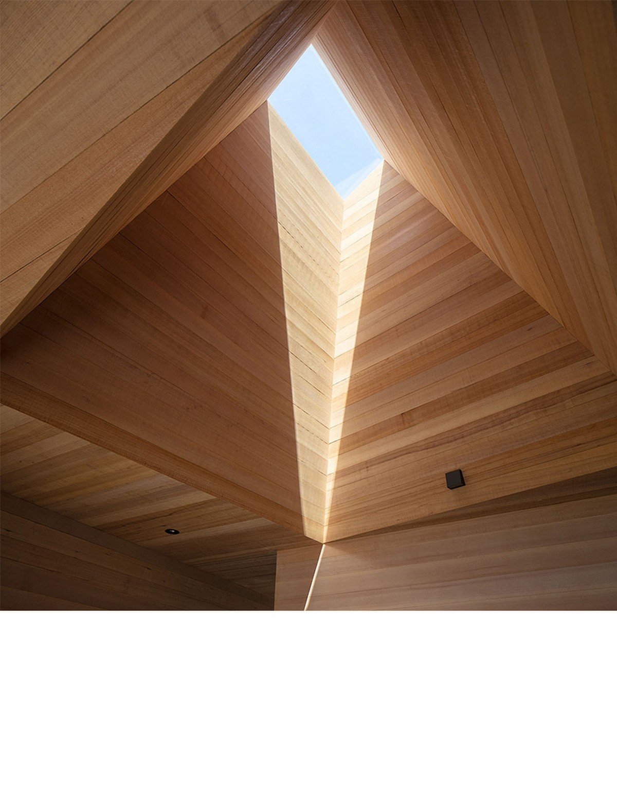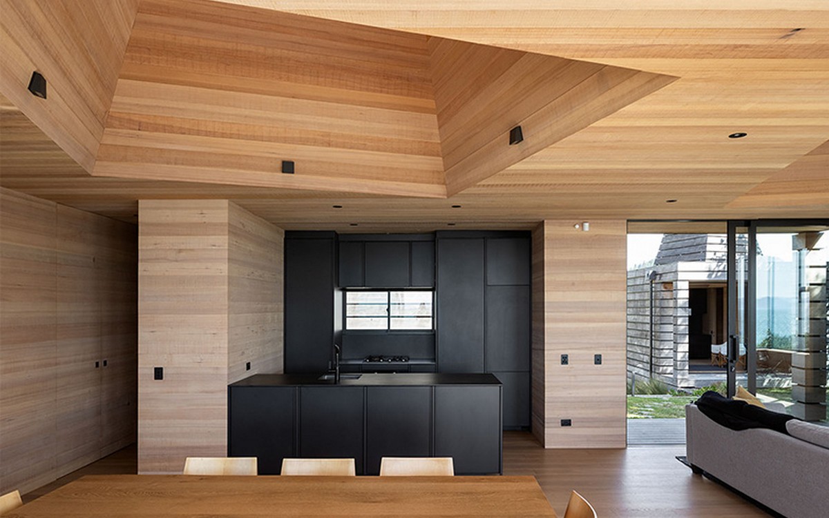 This timber, imbued with the colours of the coast, is contrast to the rich and highly crafted light timber interior of the house.