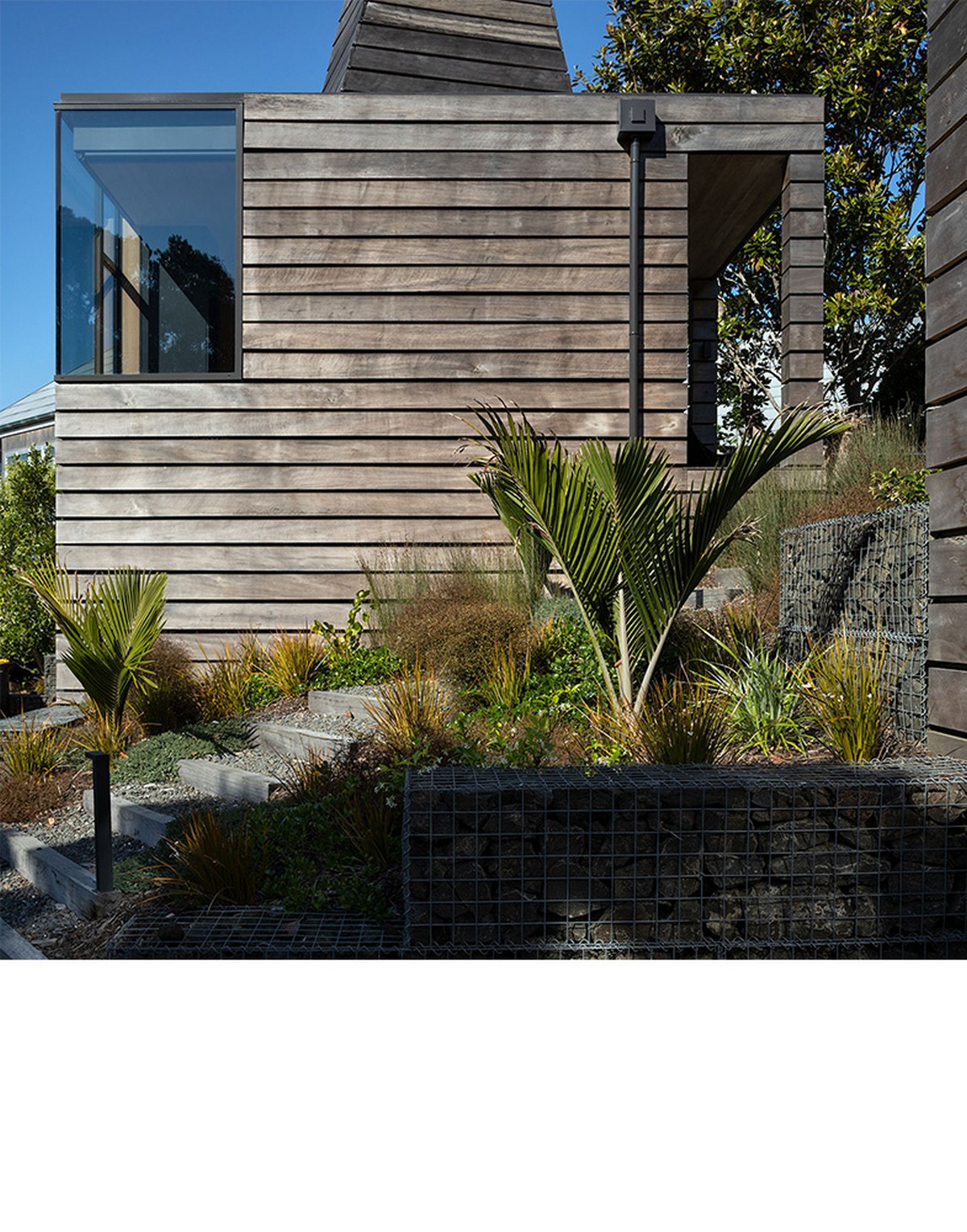Reclaimed Totara from a swamp has been used for the cladding, and also reused as a rain screen.