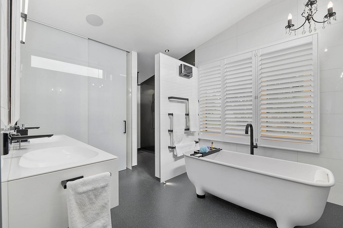 The mixture of modern materials throughout the home are complimented beautifully with wooden features, none more striking than the floating ceiling which gracefully flows above you. The craftsmanship is superior and testament to the 30 years building experience Mike Craig has under his tool belt.