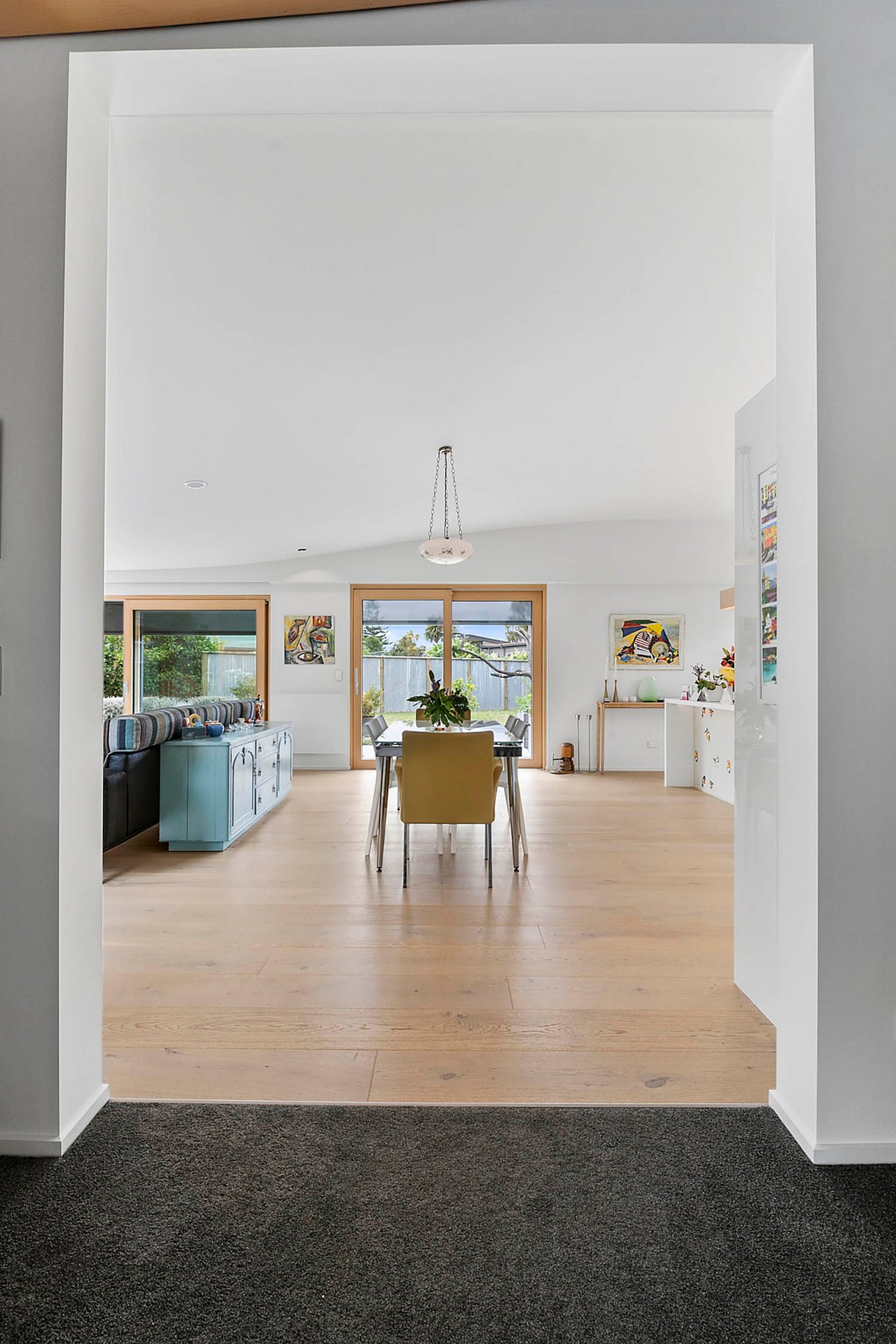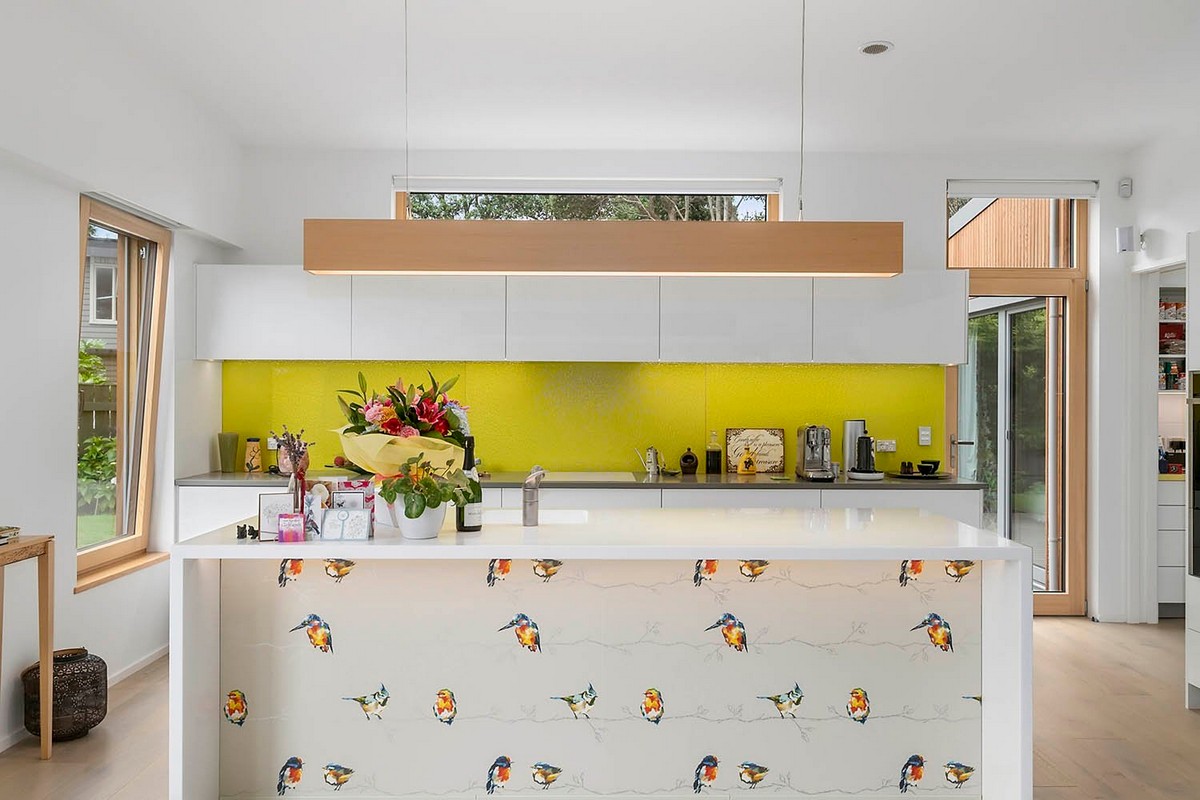 You know this house is bold and brave as soon as you see the distinctive turquoise aluminium garage, jutting into the driveway on your arrival. However, it would be a mistake to judge the house on its exterior beauty alone. Mike Craig Builders have not only produced a finely crafted and expertly detailed house, it is also a certified ‘Passive Home’.