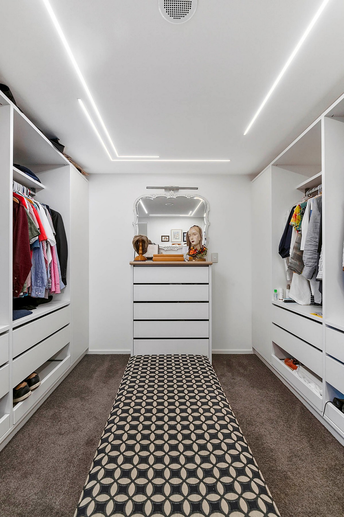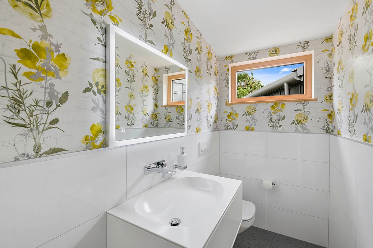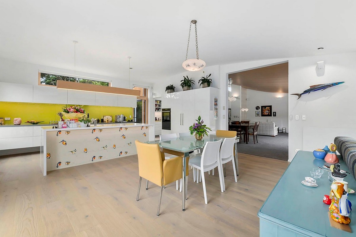 The bright and sun soaked home has multiple living spaces, including a sewing room and media room. Each room is a bold combination of modern and traditional influences. A melting pot of clean contemporary lines and family heirlooms work to create a welcoming ambience. The 254m² home is wrapped around a courtyard garden and the indoor outdoor flow is a natural extension of the open plan living. You are encouraged outside with a large outdoor living room, 50sqm of deck covered by a louvred roof and a toasty outdoor fire.
