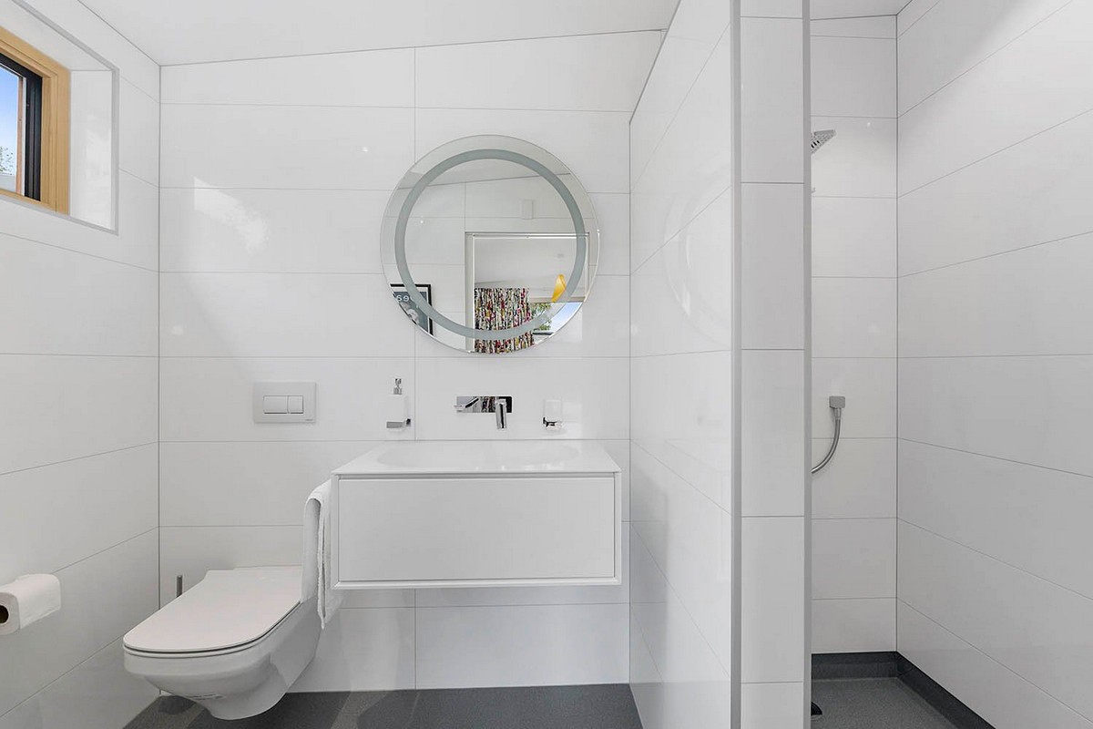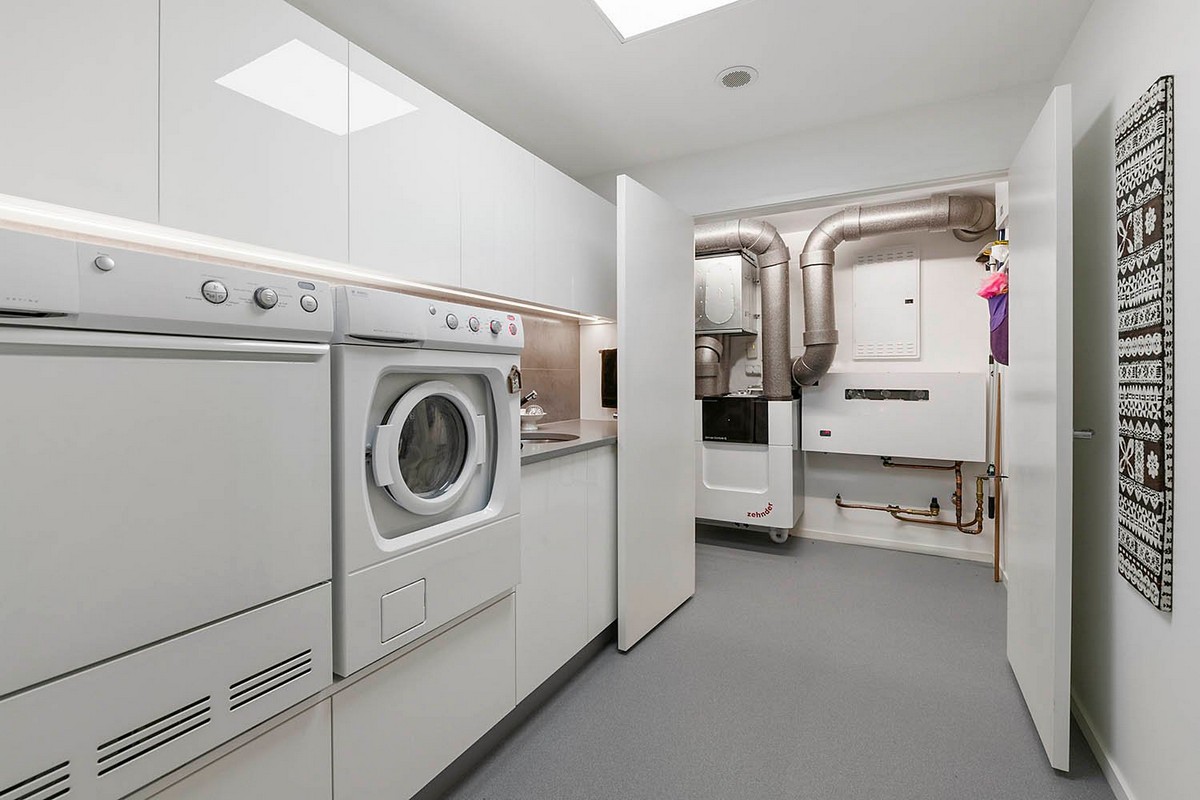 The Formance structural insulated panels used in this house ensure that energy is used efficiently to heat and cool the house. The triple-glazed 80mm thick timber/aluminium joinery keep everything airtight, while invoking a traditional solidity to the large window cavities. A state-of-the-art Zehnder heat-exchange unit is another tool used to maintain the passive nature of this home, ensuring that every three hours the house breathes and circulates fresh, filtered, clean air. This house functions as a healthy clean living home and Mike Craig ensured the multiple energy-efficiency requirements were met and maintained.