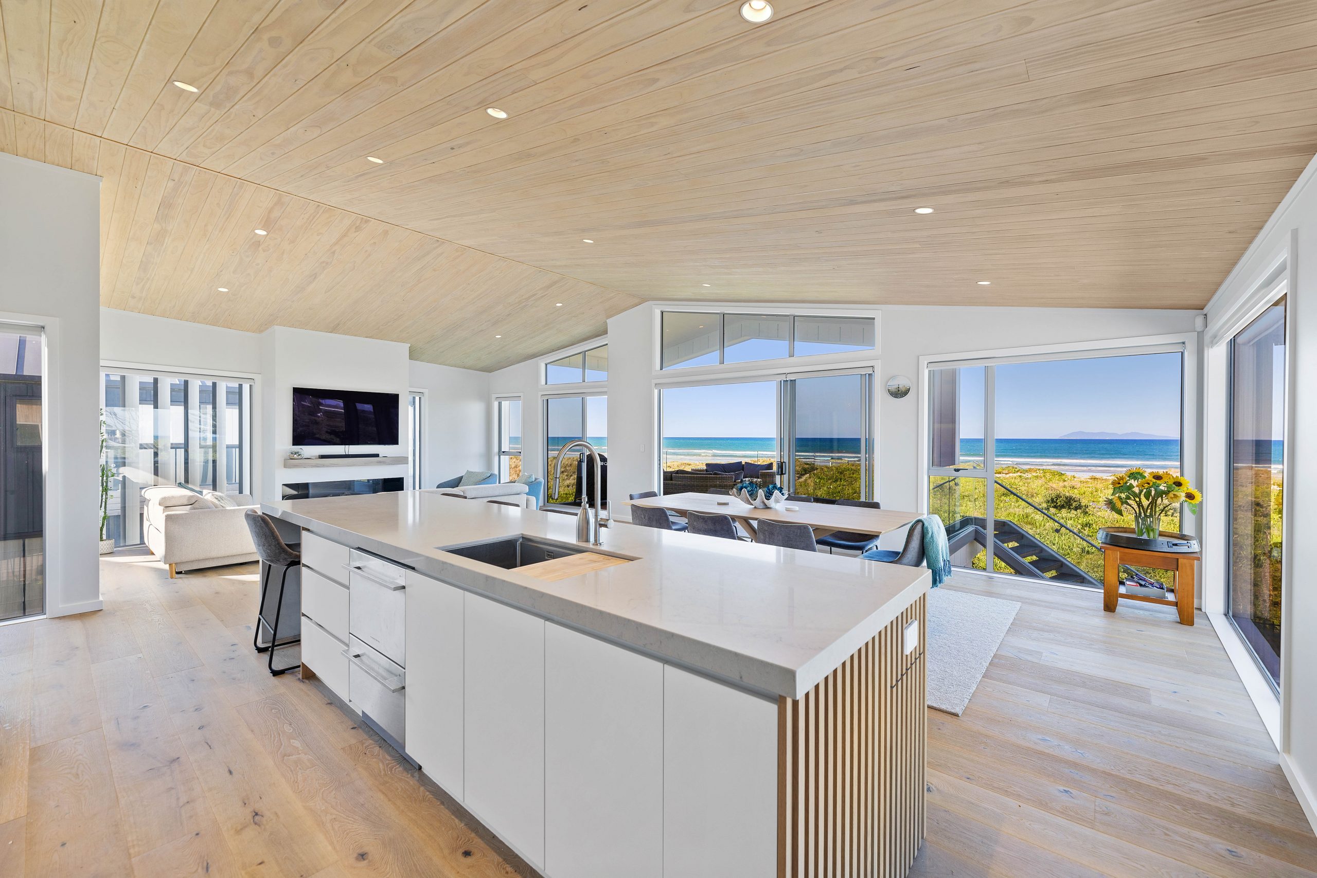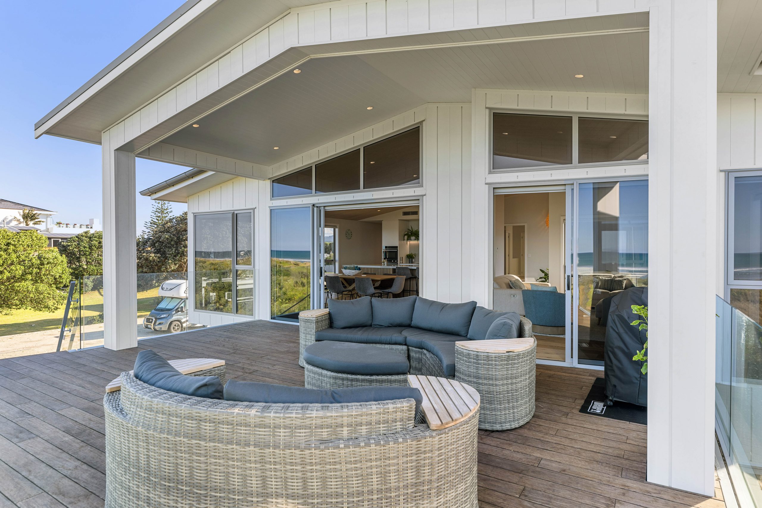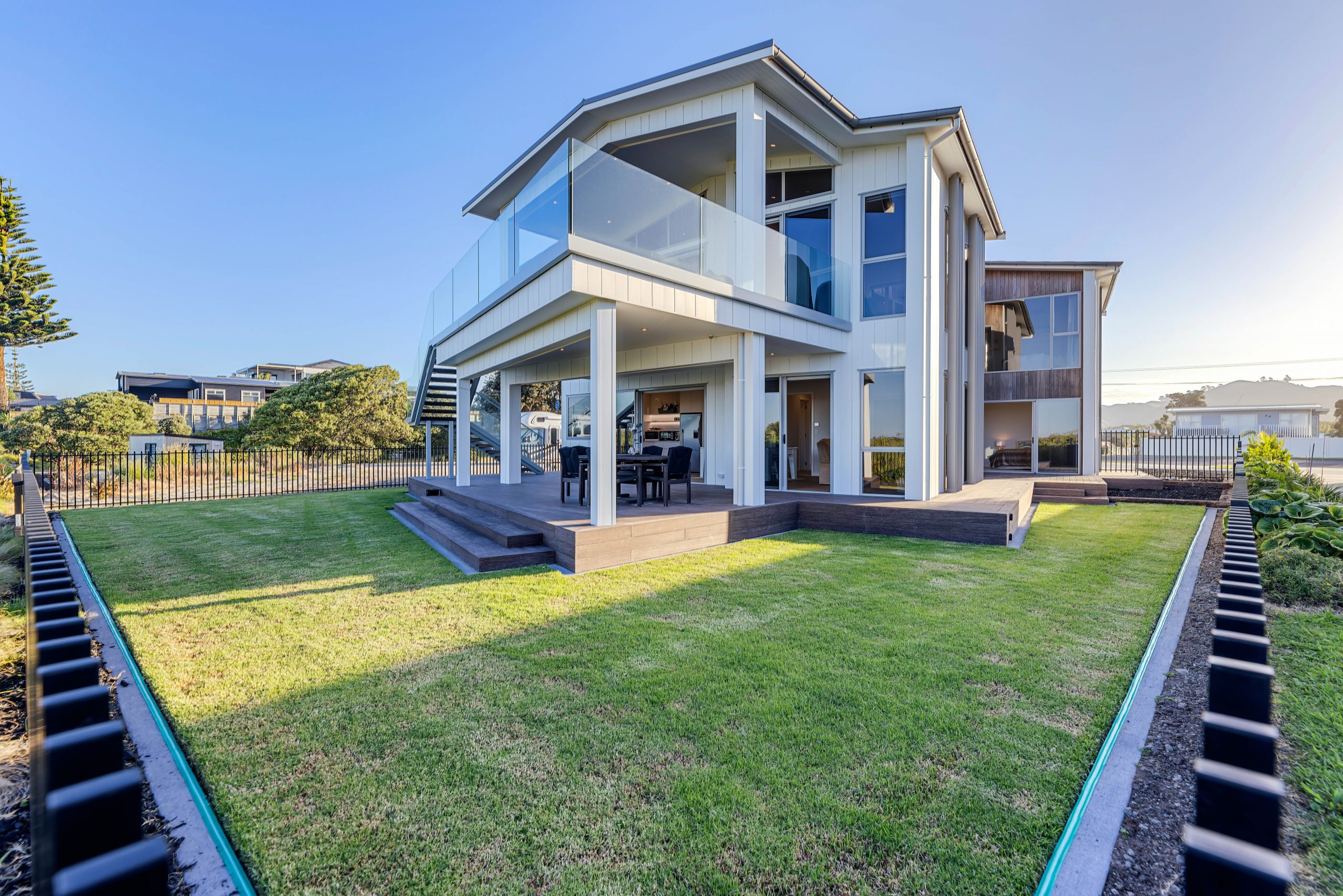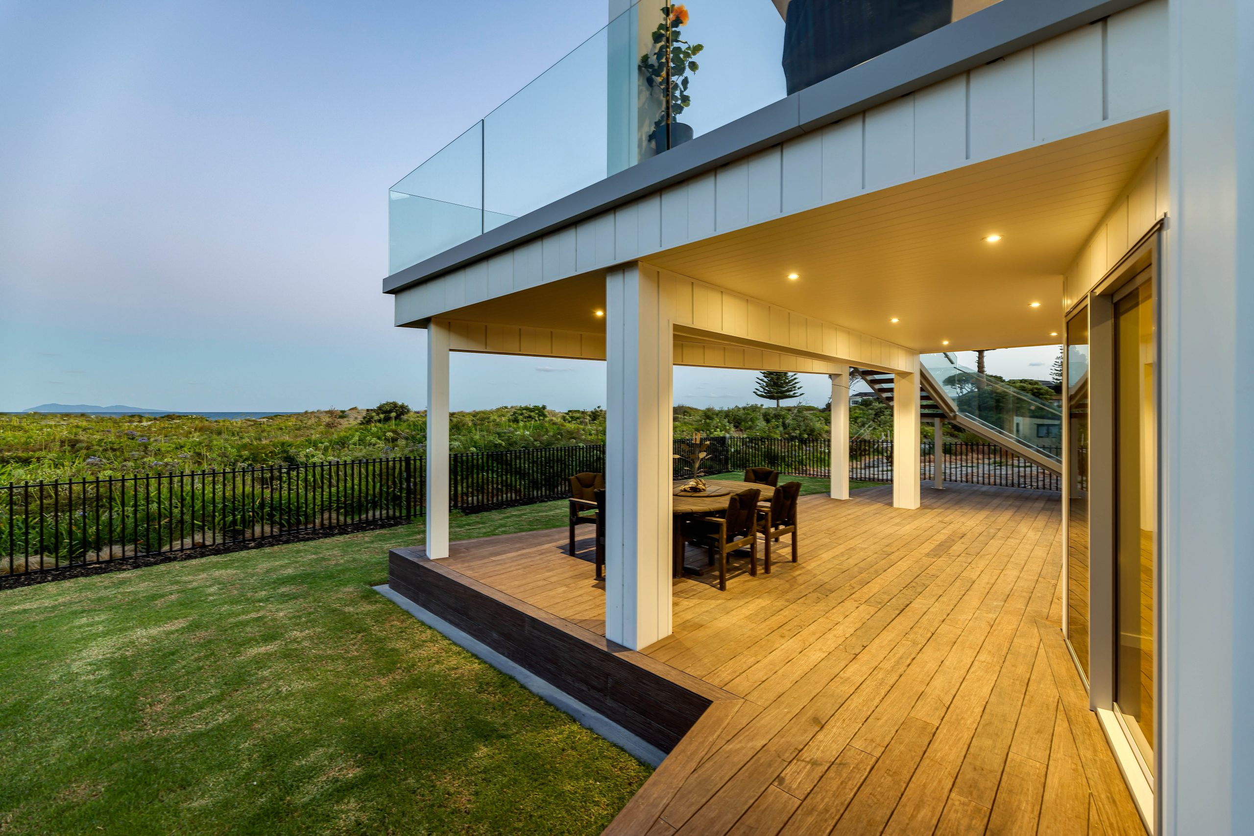 The owner has chosen a lovely colour palette with accents of blue/greys, sand and warm whites. This colour palette flows through the whole home giving a very upmarket finish and sense of welcome. This home has a lovely light feel that is also down to the large open rooms, that make the most of the light and view through the architectural joinery provided by Nulook Matamata Graeme is a big fan of Waihi Beach, which has a vibrant village, set alongside a 9km stretch of inviting white sand. When Graeme had the green light to start this build one of the key factors was indoor/outdoor living and making the most of the breath taking coastal views that span, many kilometres in both north and south directions from this property. The owners told Graeme they were big on having plenty of decking externally for relaxing at home or spending quality time with friends. This home has literally hundreds of metres of decking, made from Plantation Bamboo’s decking range of timber. Graeme states this is an exceptional product and its results speak for themselves. This is further born out by Graeme as he has used Plantation Bamboo’s decking product on his own beach bach, also at Waihi Beach.
