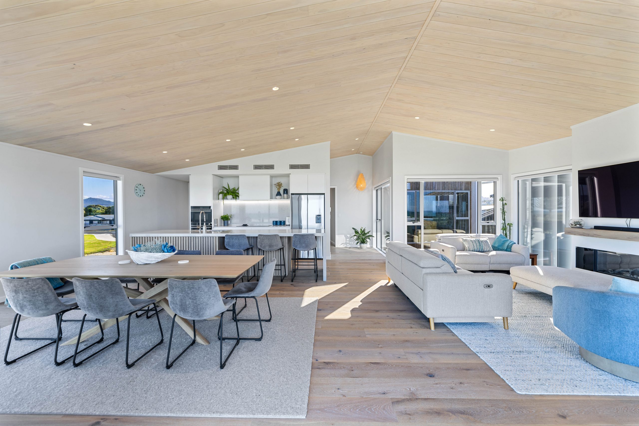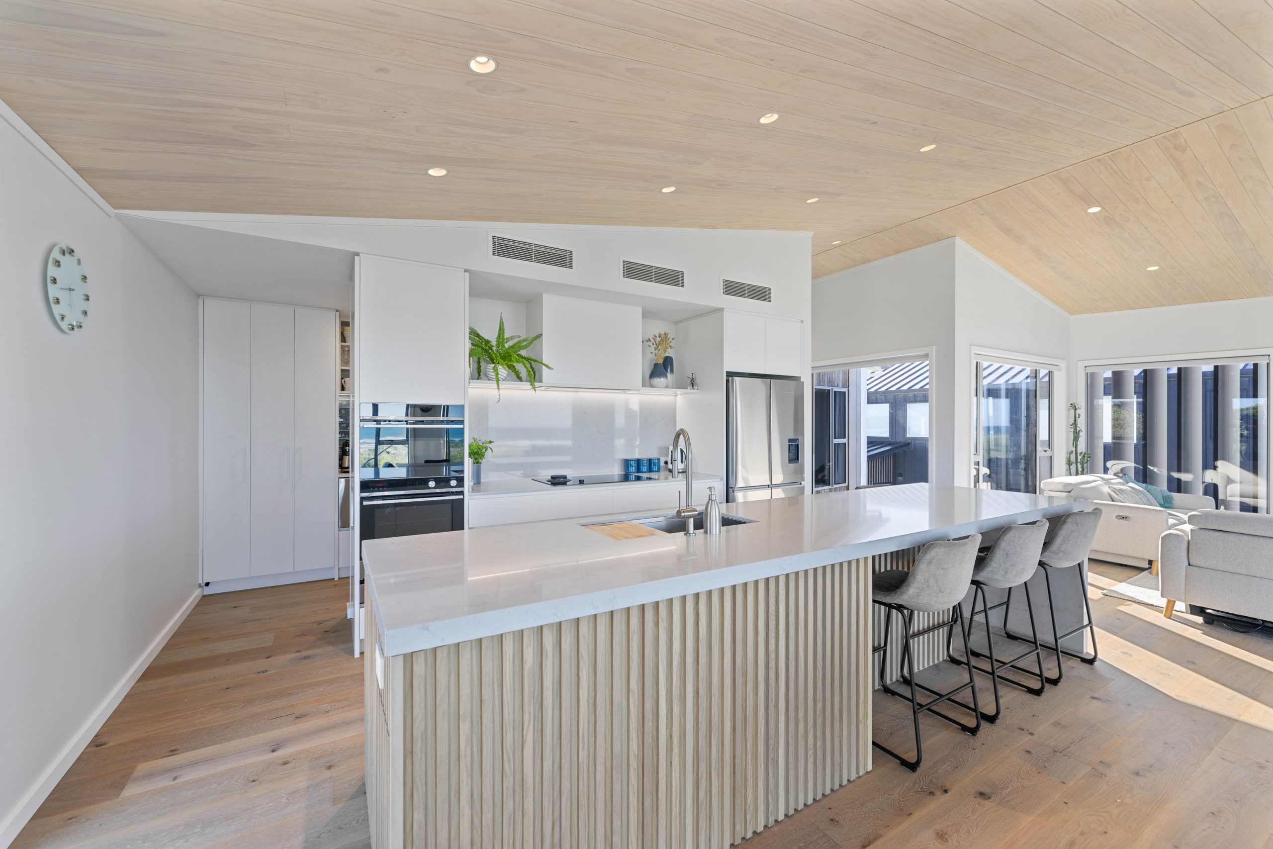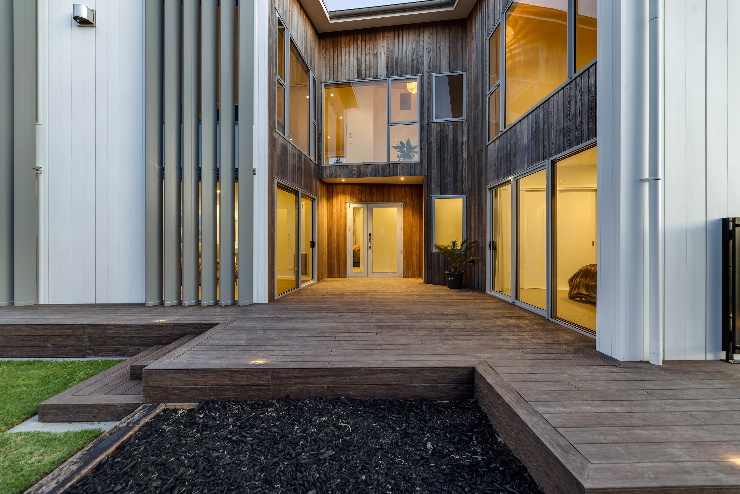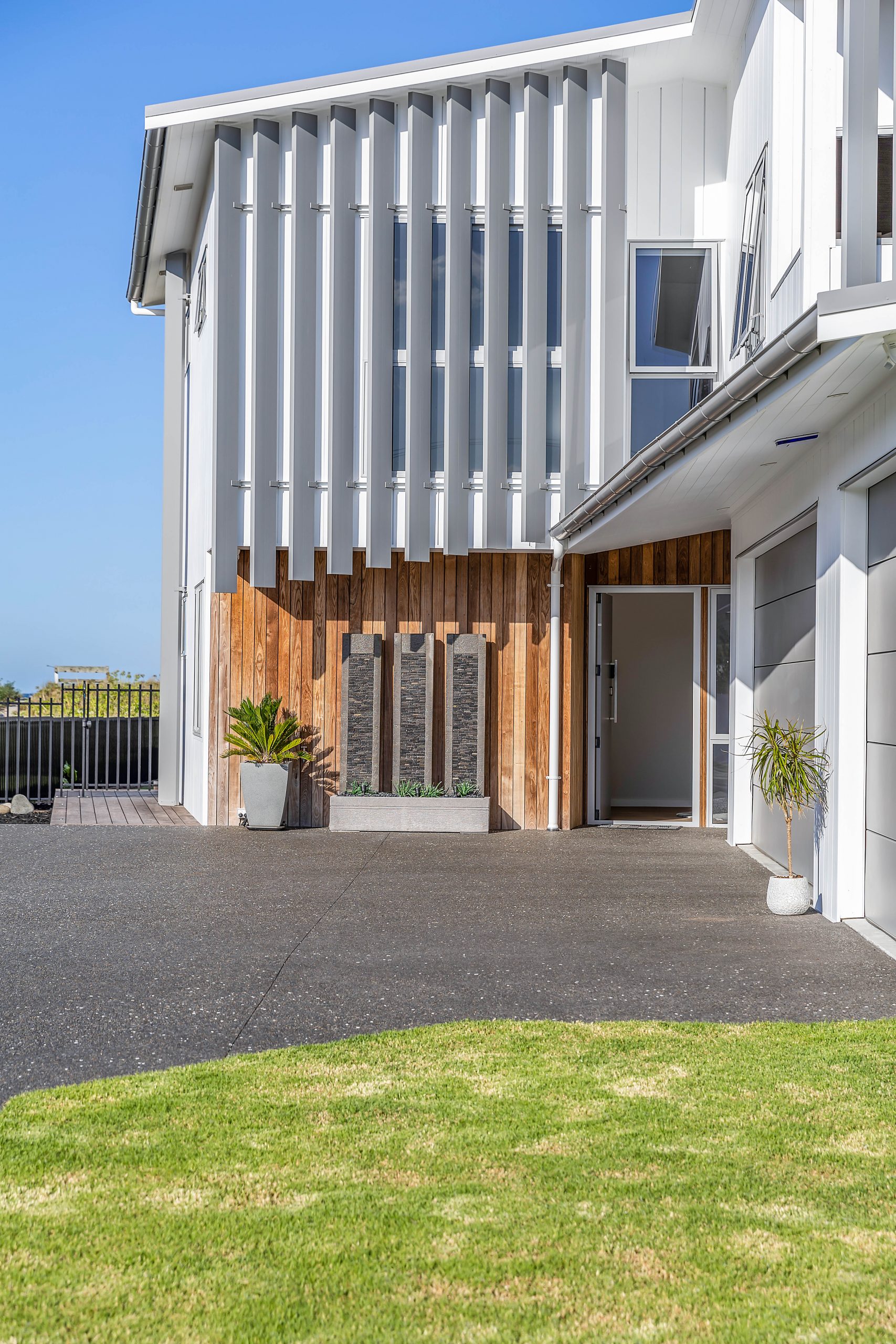 The owner has chosen a lovely colour palette with accents of blue/greys, sand and warm whites. This colour palette flows through the whole home giving a very upmarket finish and sense of welcome. This home has a lovely light feel that is also down to the large open rooms, that make the most of the light and view through the architectural joinery provided by Nulook Matamata Graeme is a big fan of Waihi Beach, which has a vibrant village, set alongside a 9km stretch of inviting white sand. When Graeme had the green light to start this build one of the key factors was indoor/outdoor living and making the most of the breath taking coastal views that span, many kilometres in both north and south directions from this property. The owners told Graeme they were big on having plenty of decking externally for relaxing at home or spending quality time with friends. This home has literally hundreds of metres of decking, made from Plantation Bamboo’s decking range of timber. Graeme states this is an exceptional product and its results speak for themselves. This is further born out by Graeme as he has used Plantation Bamboo’s decking product on his own beach bach, also at Waihi Beach.