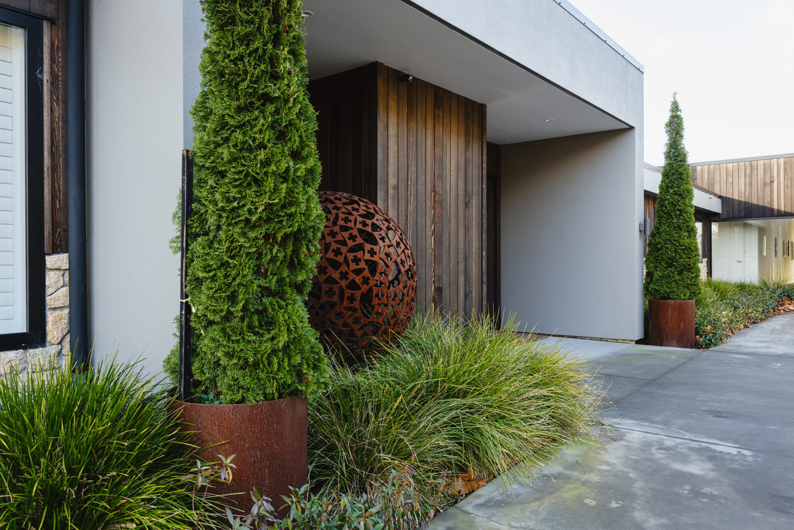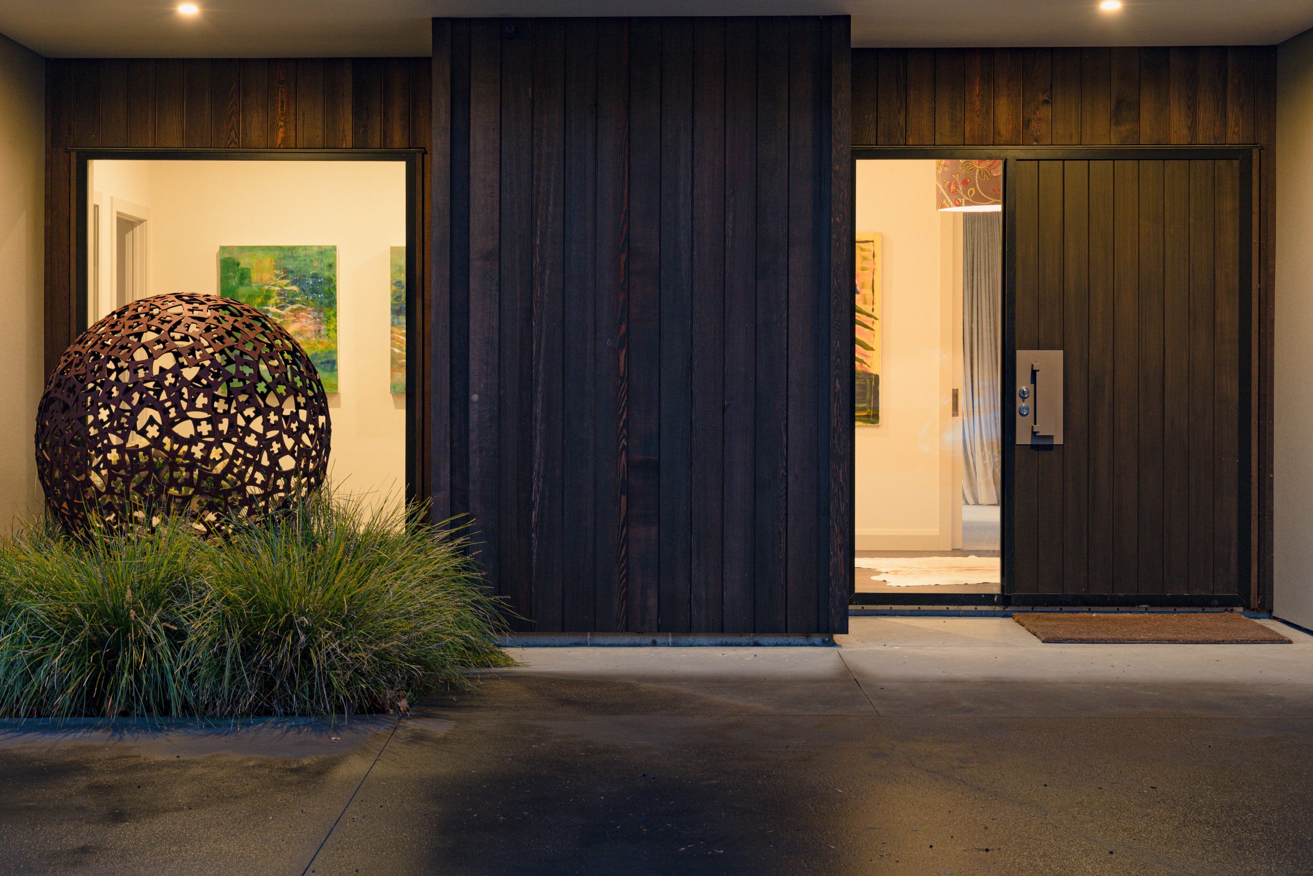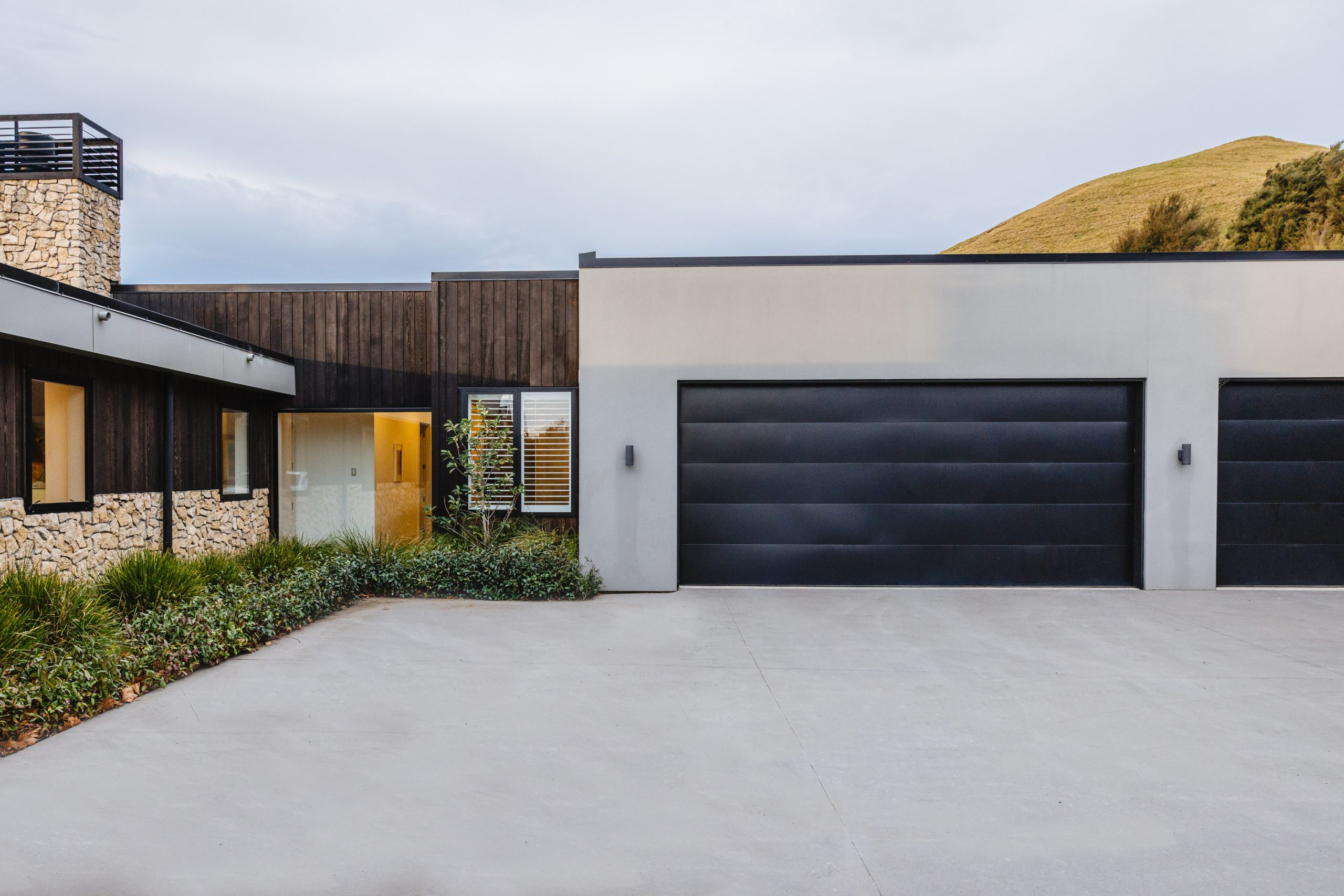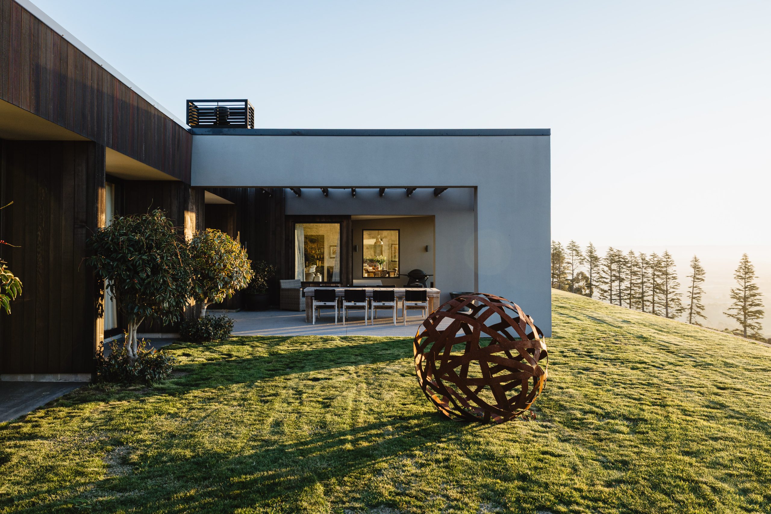 Though Amanda envisioned a country-style home, Rob was set on something sharper—modern lines, minimalist styling, and strong, grounded form. The result is a striking home that manages to both command the landscape and blend beautifully into it.