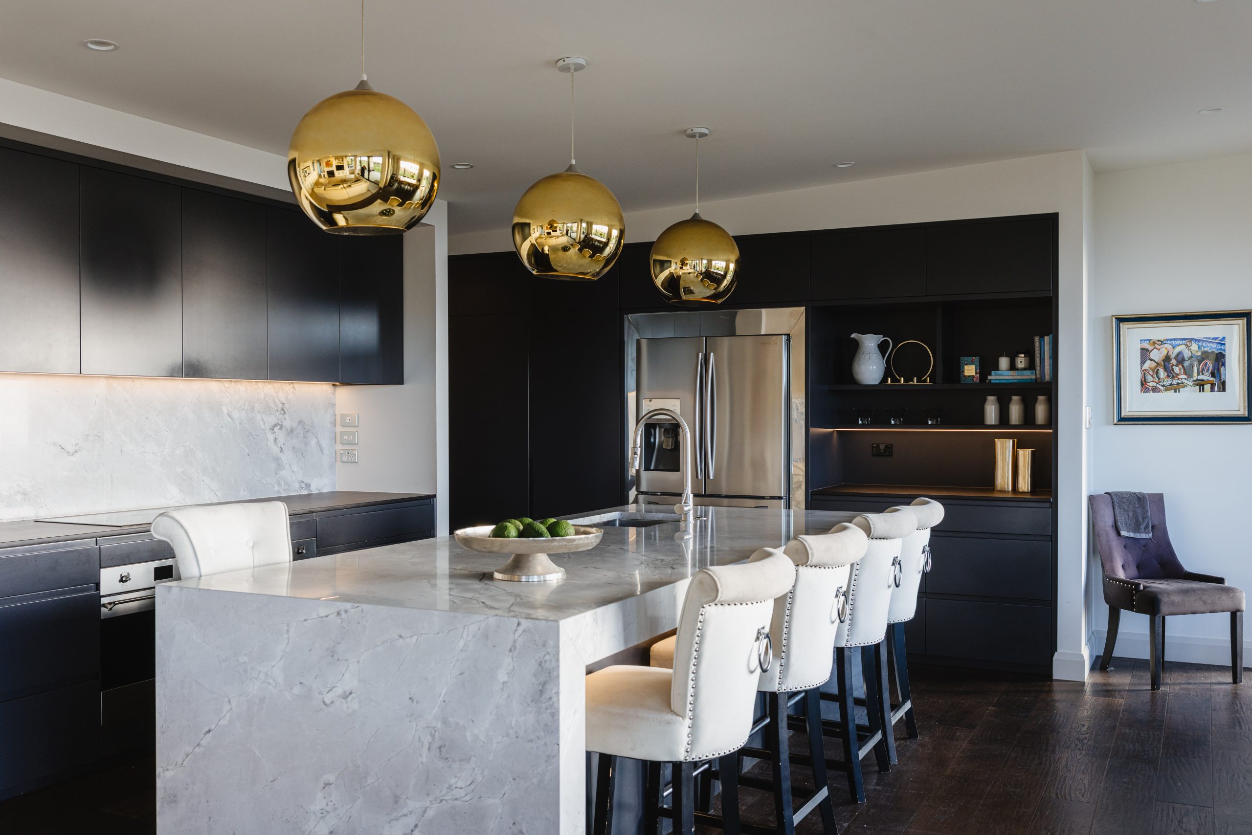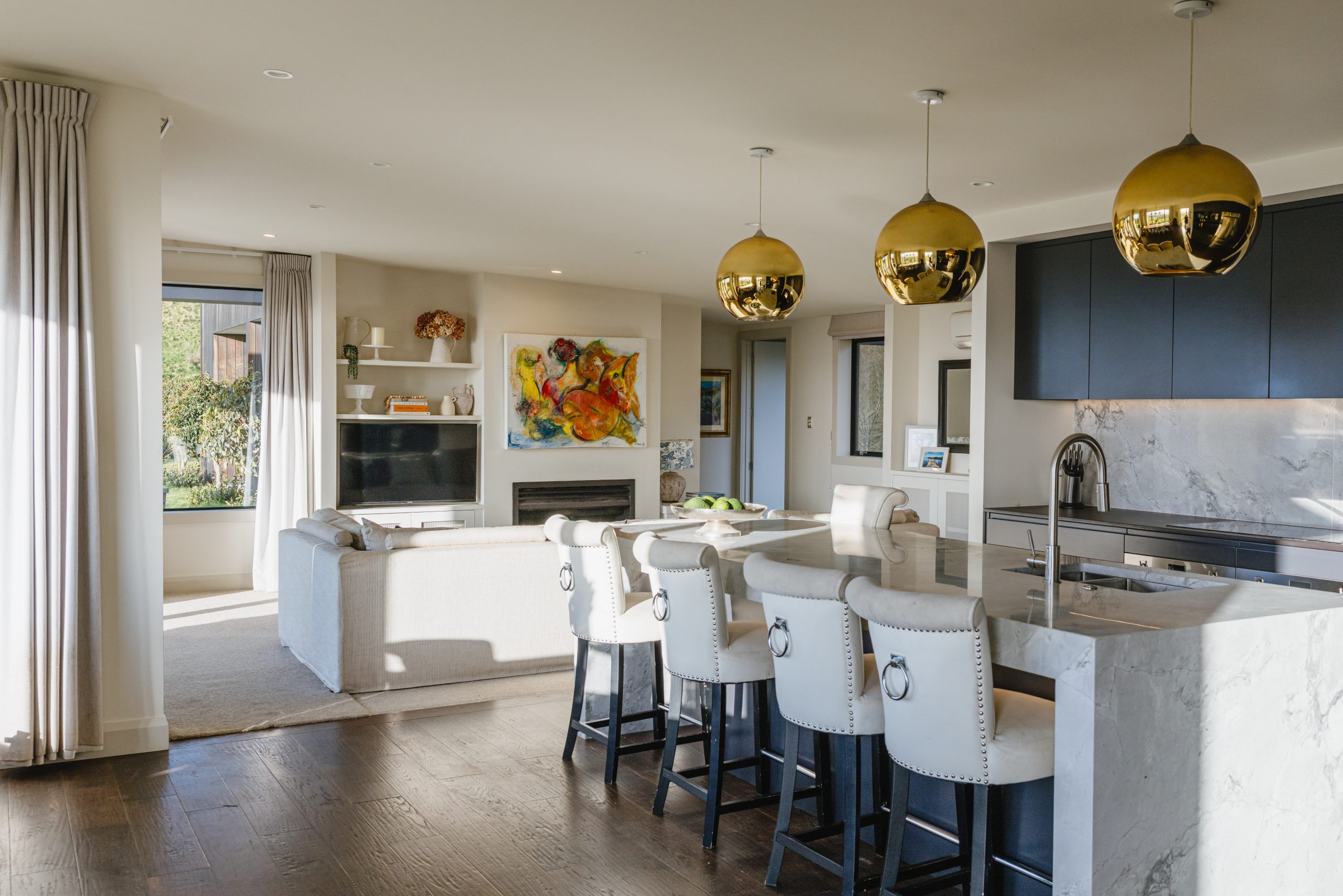 “The minimalist look took ages to get just right,” Amanda notes. “But the marble bench top in the kitchen is one of my favourite elements—it brings elegance and balance.”