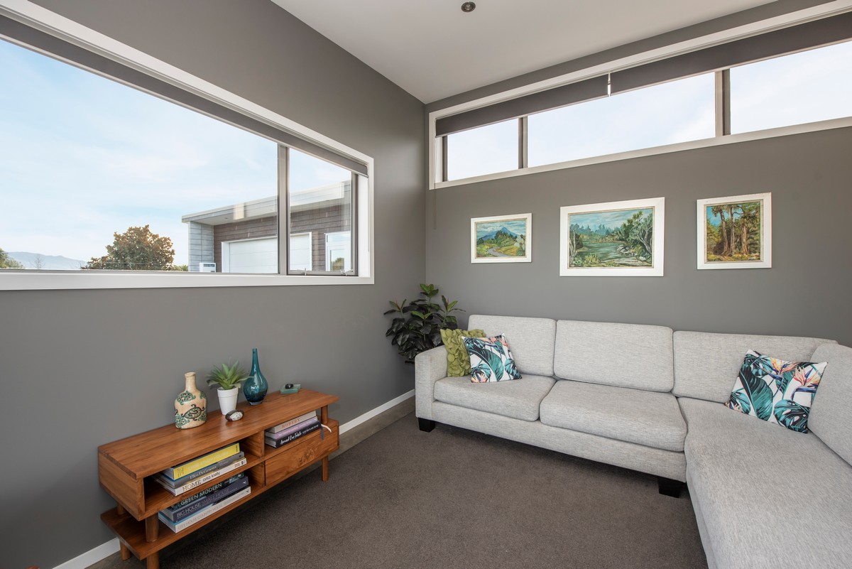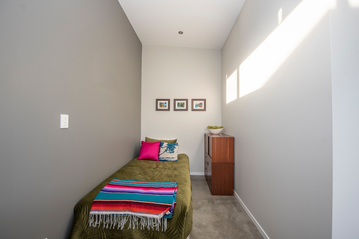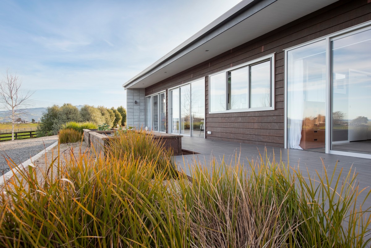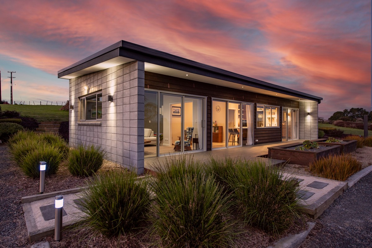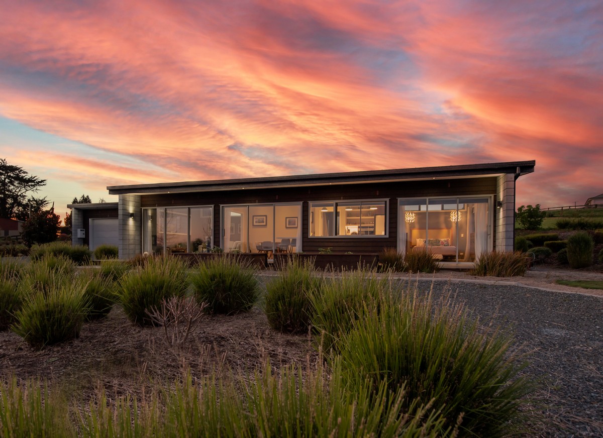 This small two bedroom studio in rural Te Awamutu is positioned perfectly amongst the native shrubs, it almost looks as if the house has been there all along. Of course the owner of this Ridgeline Homes property is an avid gardener, who did all of the plantings herself, and the studio is just the first stage of a larger house project which both Ridgeline Homes and the owner are excited to get underway. Ridgeline Homes is proudly owned by Te Awamutu natives Paul Diack and Matt Fookes, both started with the company as apprentices, and now co-own it and run a team of nine builders.