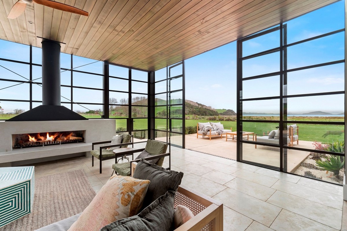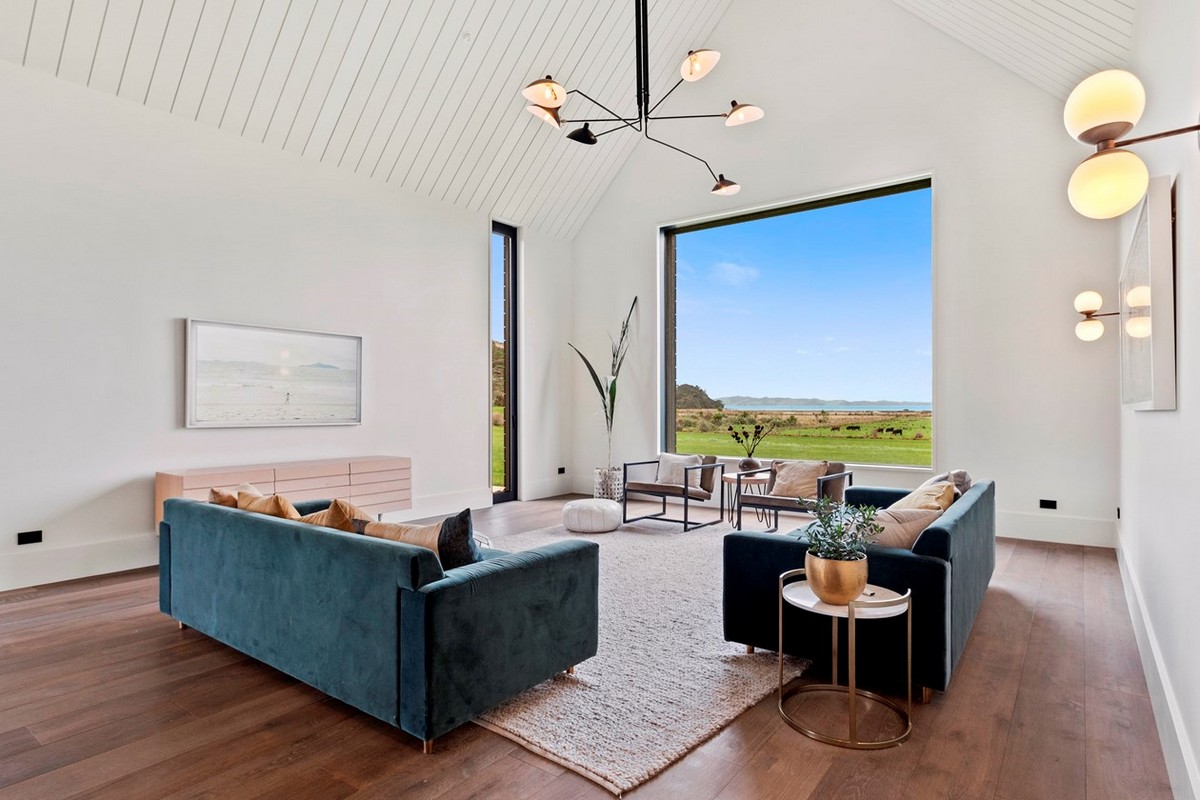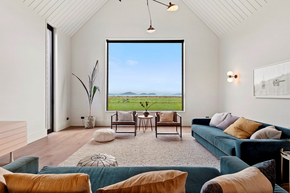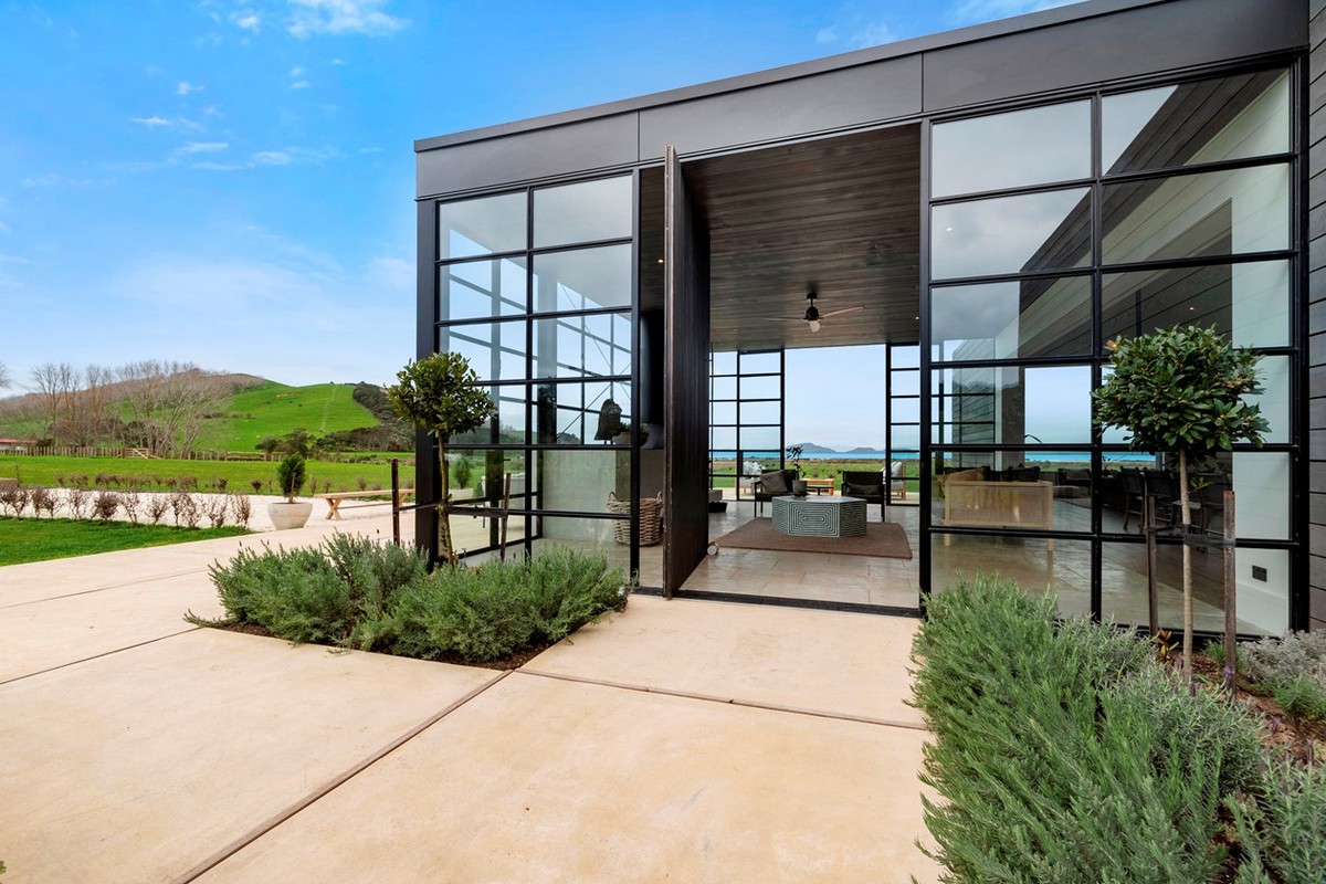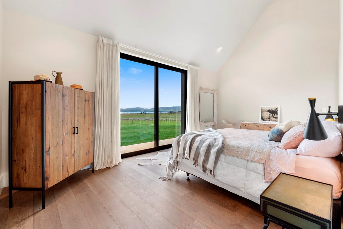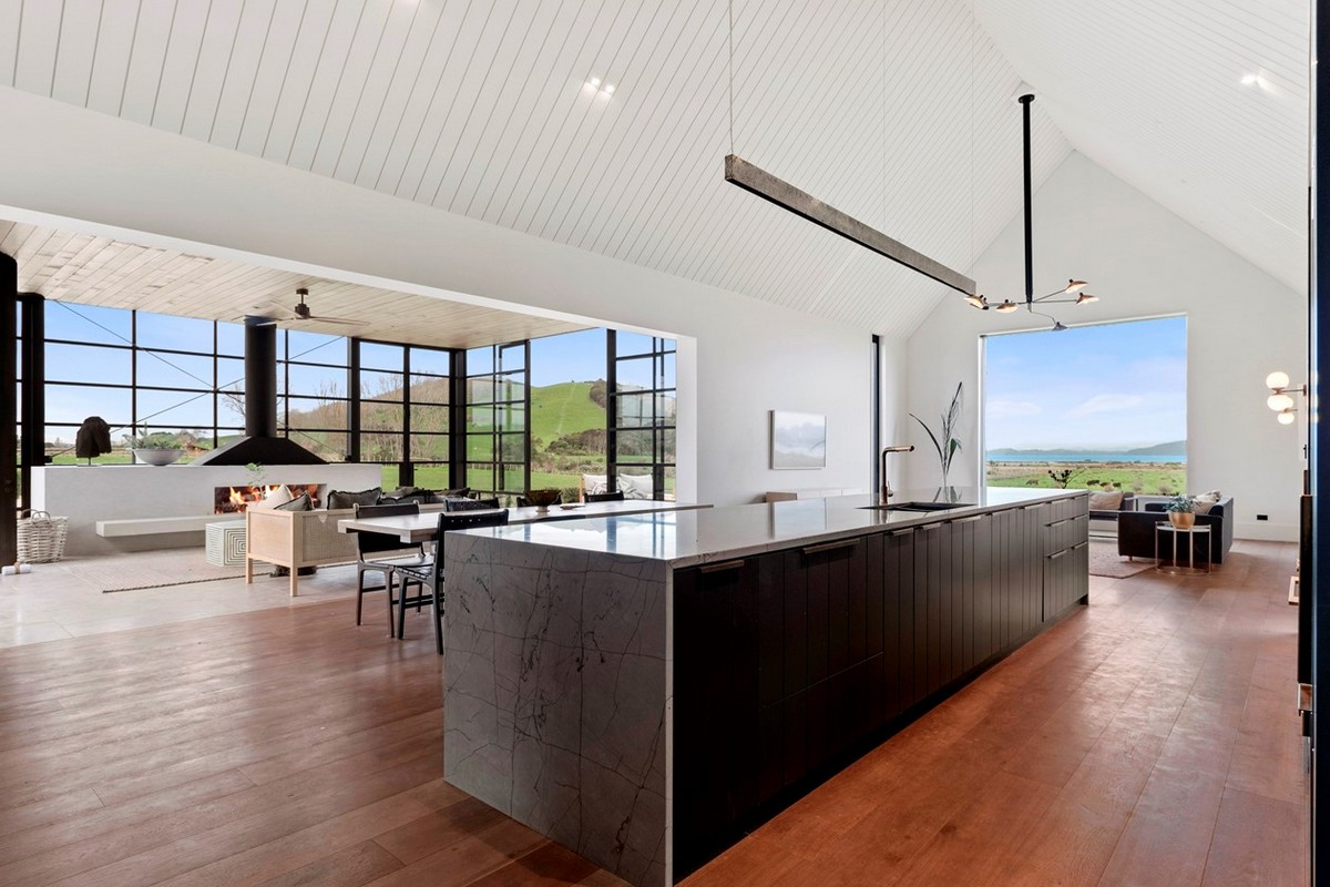 Working with designer John Irving to bring his vision for a timeless rural barn to life, the iconic rural setting is characterised by a panoramic view of the surrounding farm and the distant Kawakawa Bay.