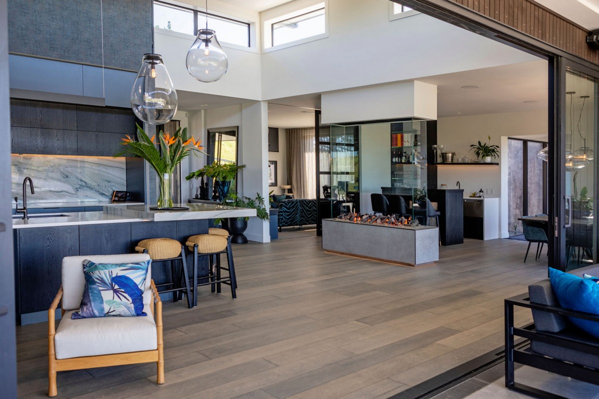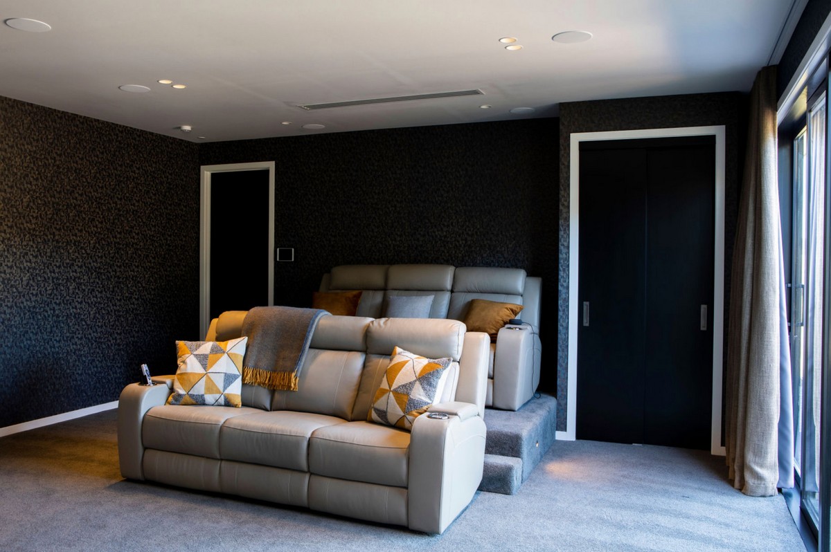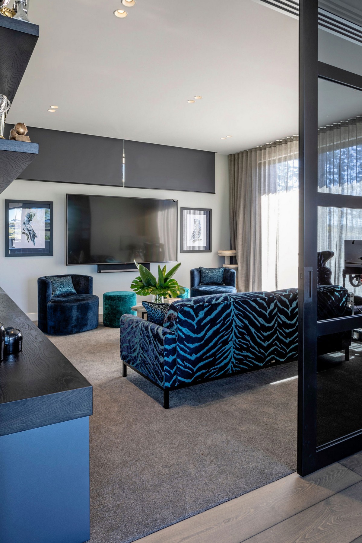 A virtual assistant opens all of the blinds, curtains, lights and heating, and a cocktail bar services the formal lounge for adult entertaining.