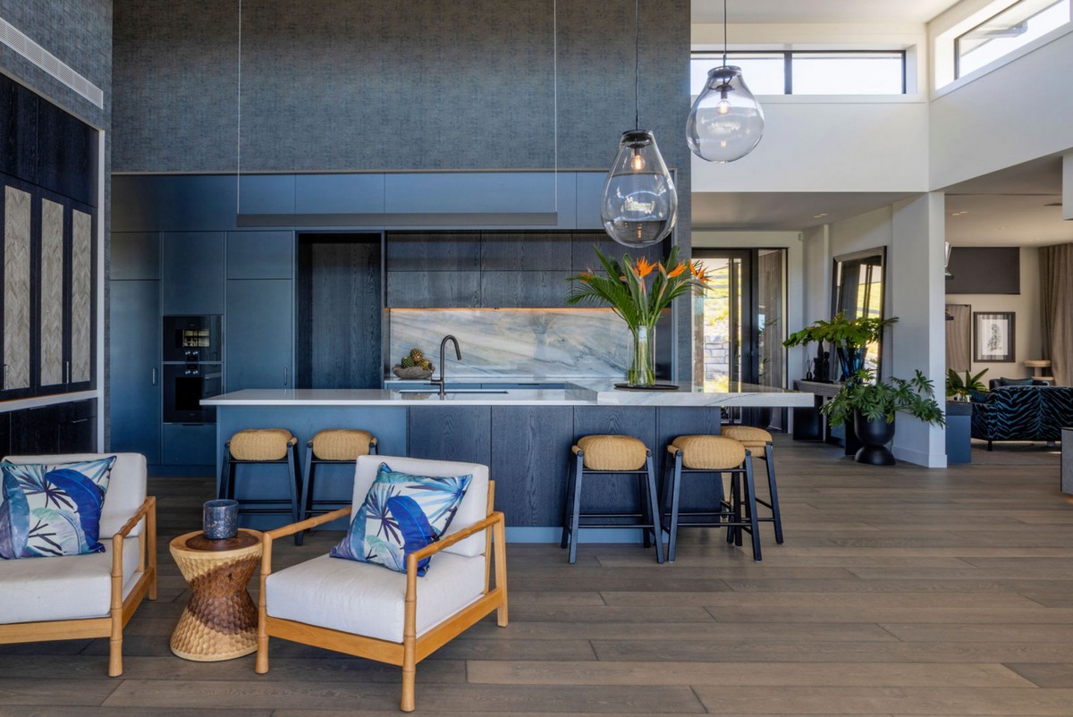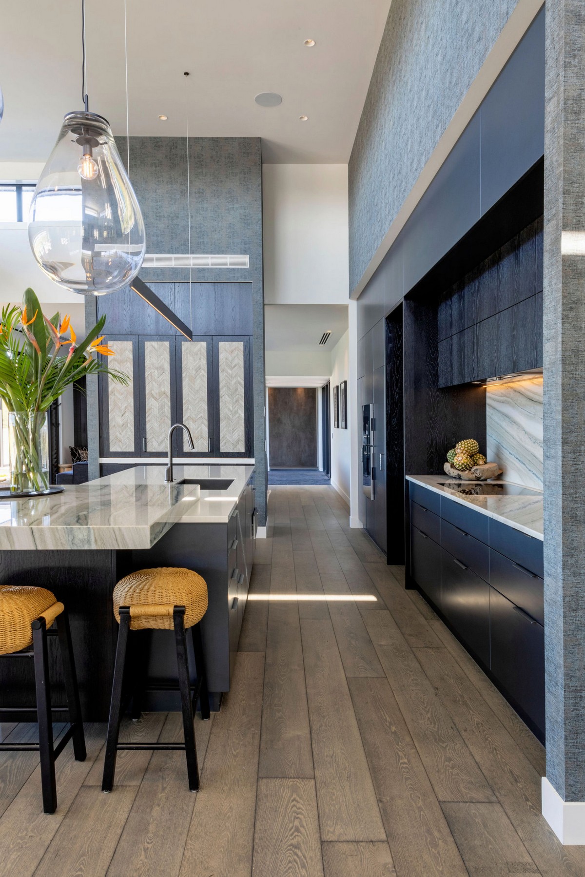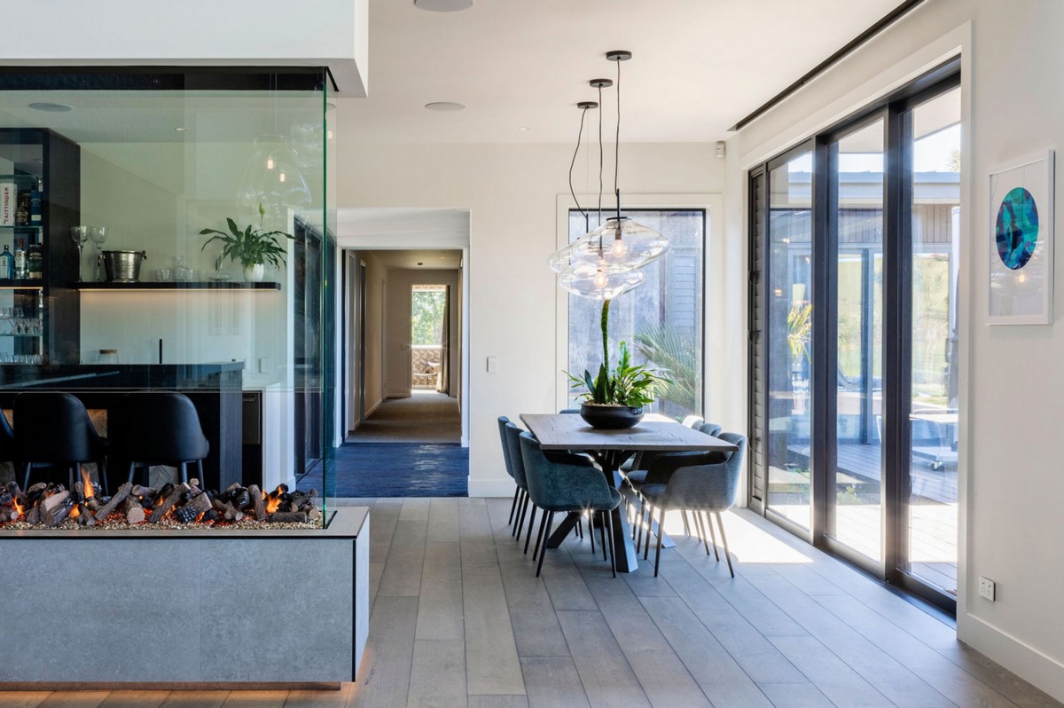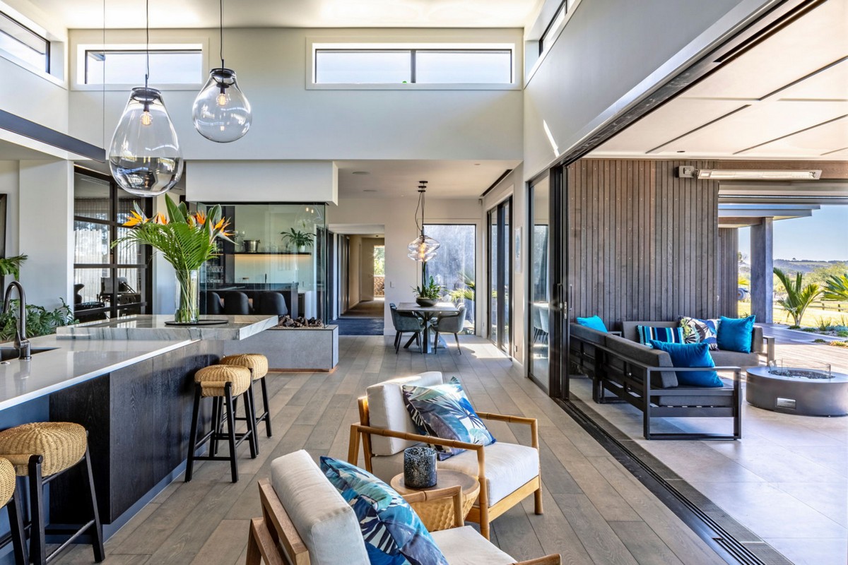 A virtual assistant opens all of the blinds, curtains, lights and heating, and a cocktail bar services the formal lounge for adult entertaining.