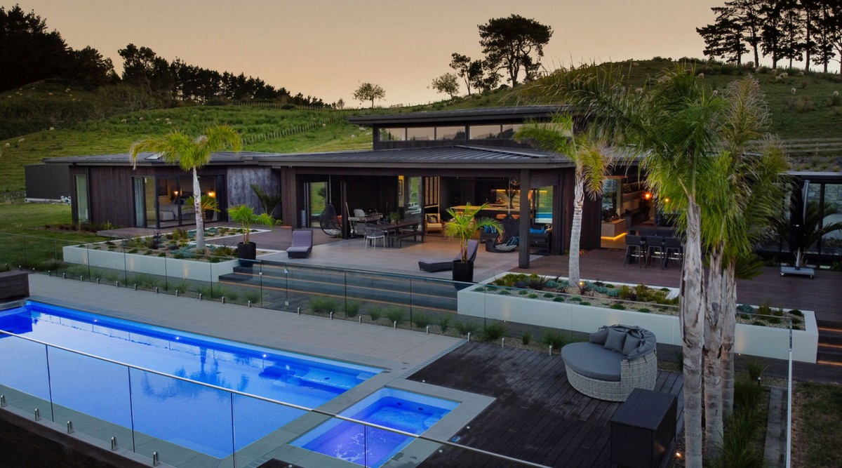One could be fooled into thinking this expansive Waitoki home is a holiday resort with all of the palm trees surrounding this large 550 sqm paradise.