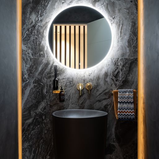 There’s a media room, another for billiards, a gym, a wine cellar and an elegant powder room with strip lighting to show it all off in this 400sqm home.