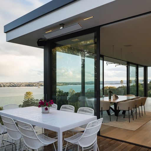 An old home once owned by the former Mayor of Auckland had to make way for this architectural build on the North Shore, which has views over the city, Herne Bay and the inner harbour, with the ferry at your doorstep.