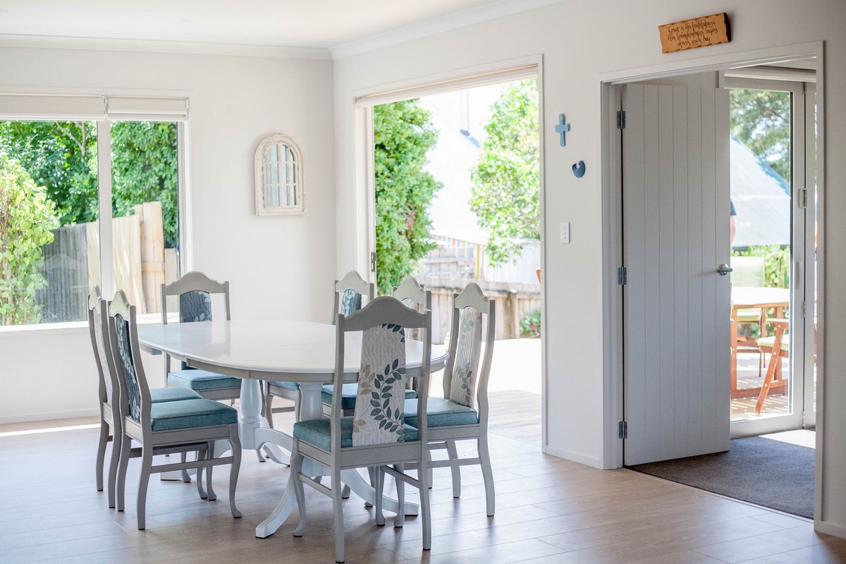 From the paved driveway, a set of stairs and a ramp lead to the front door. As you enter the house, the kitchen and lounge sit on one side, and at the end of the room, a large ranch slider opens to a spacious deck.