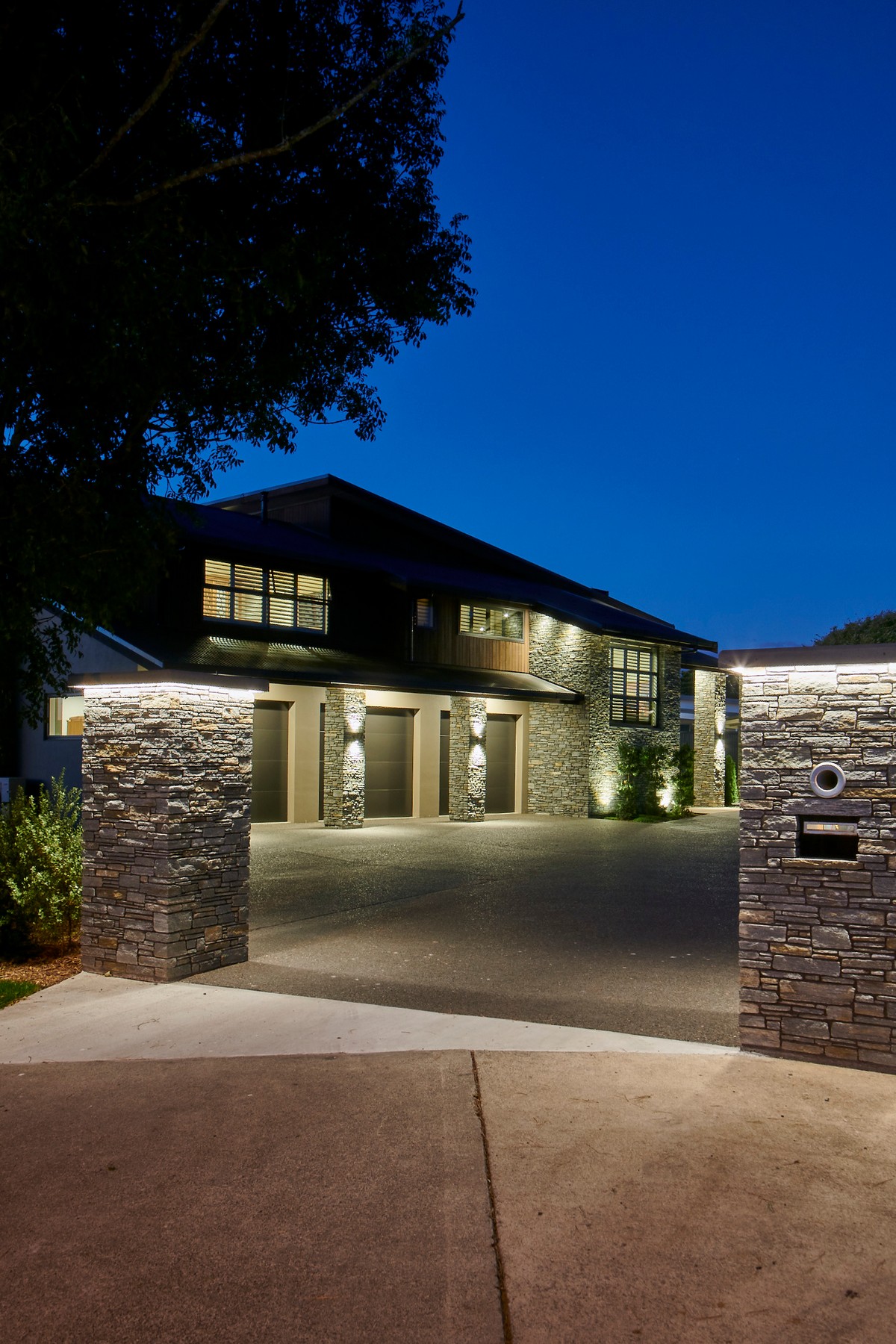 Angela Wynne’s exceptional eye for detail is obvious throughout this Morrinsville home. The Allure Interiors designer brings a classic but contemporary touch to her projects, and this proudly self-built home fits her niche perfectly. From the beaudoius off the master bedroom to the powder room downstairs, the inside of this home has a light feminine feeling, that contrasts the strong and sturdy schist structure of the exterior.