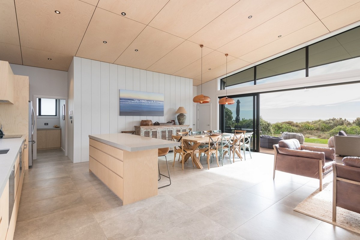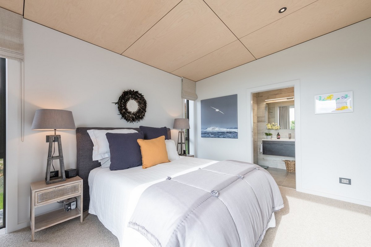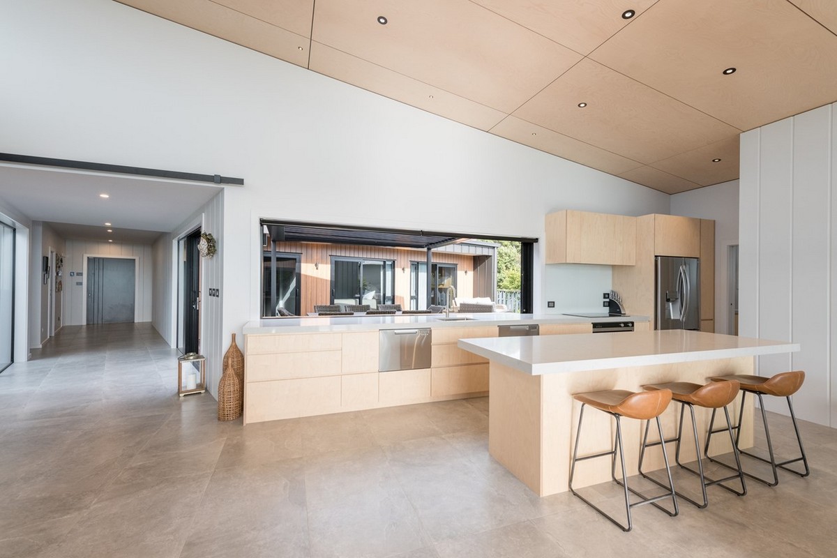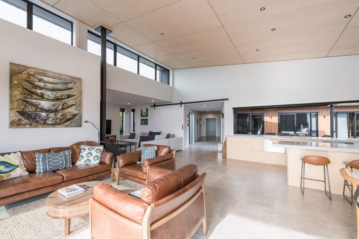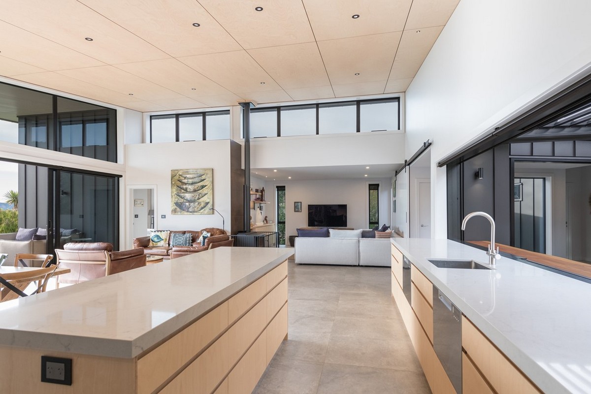 Given this 380sqm house, with views of Golden Bay, is exposed to coastal conditions, it also required robust, durable materials, such as powder-coated aluminium cladding and fibre-cement interior wall linings.