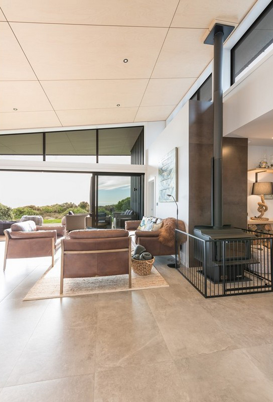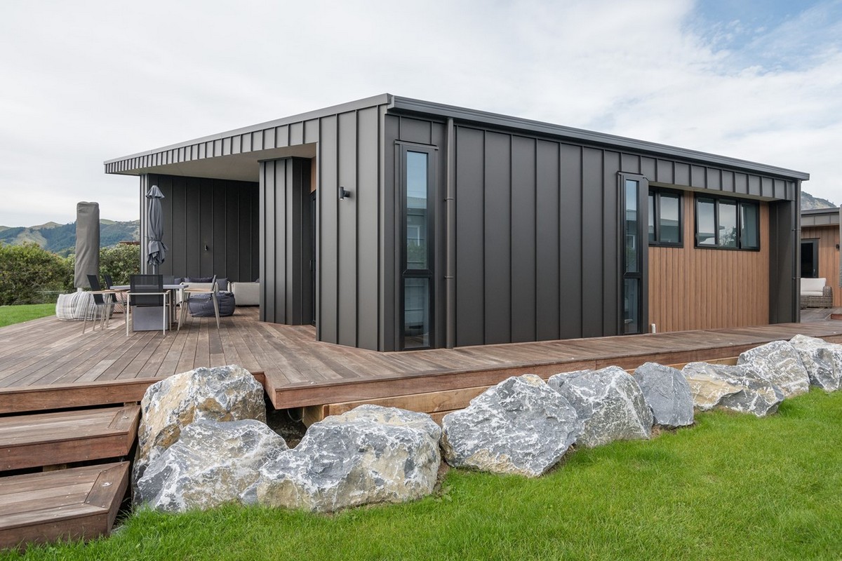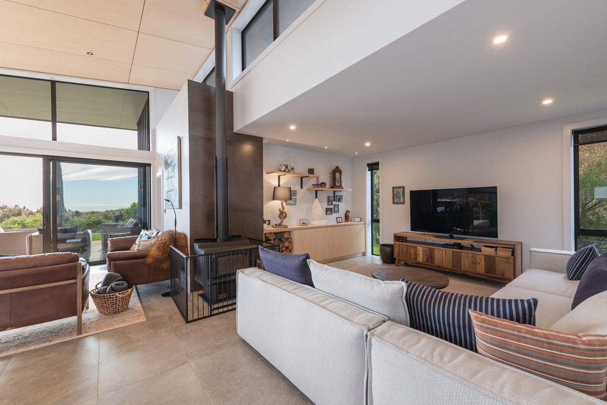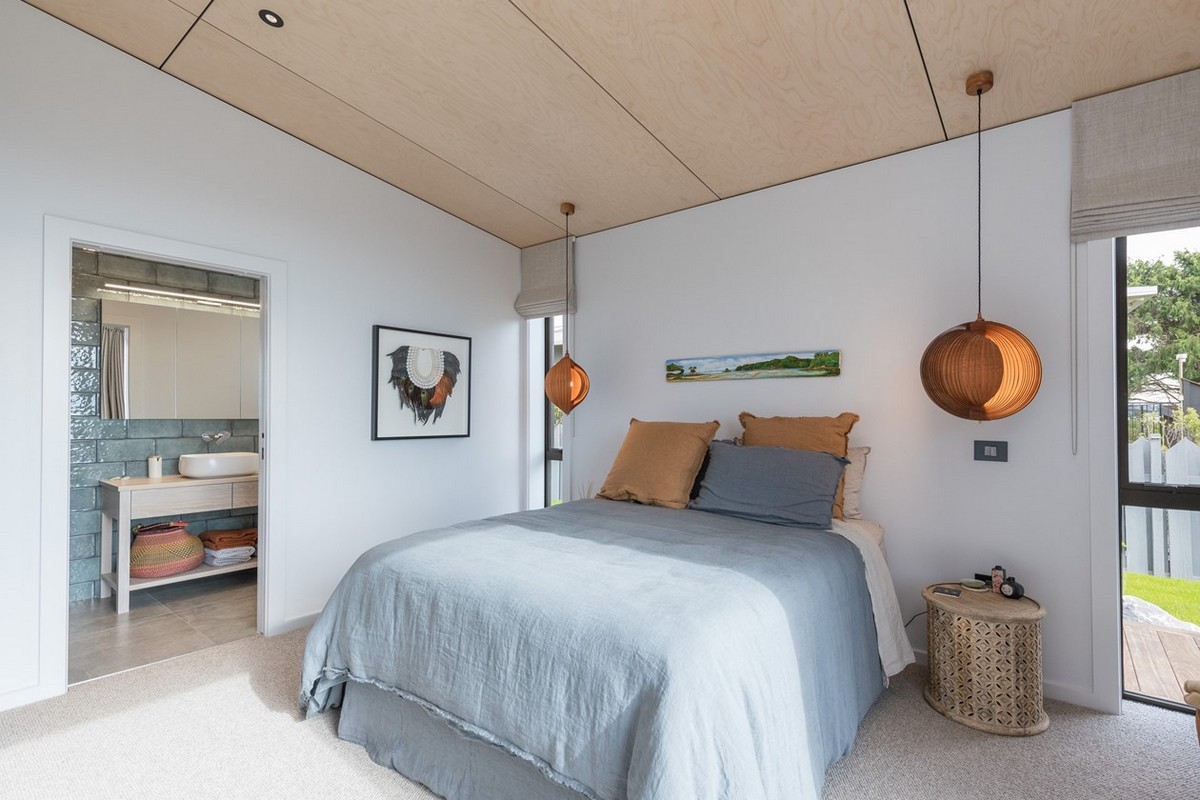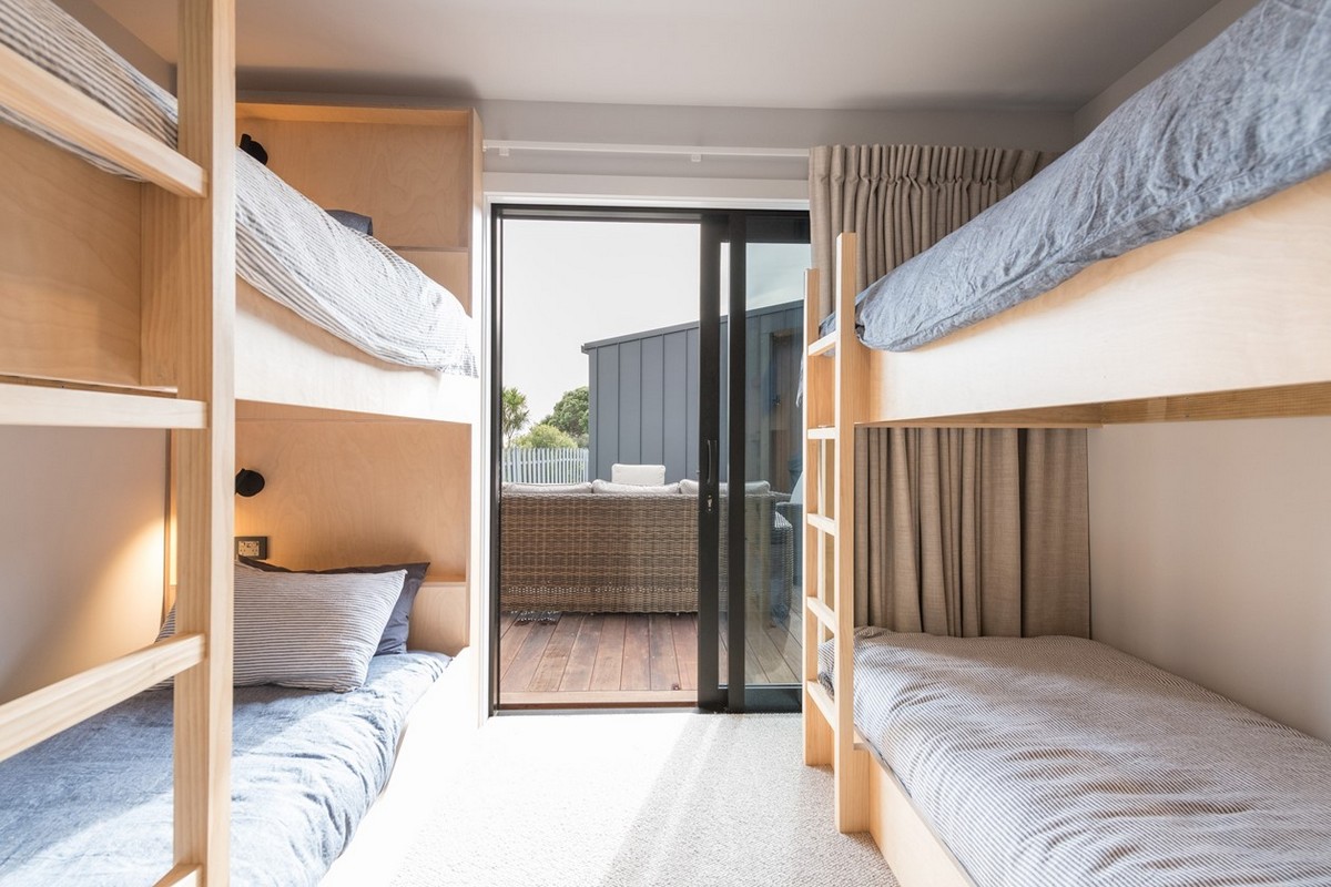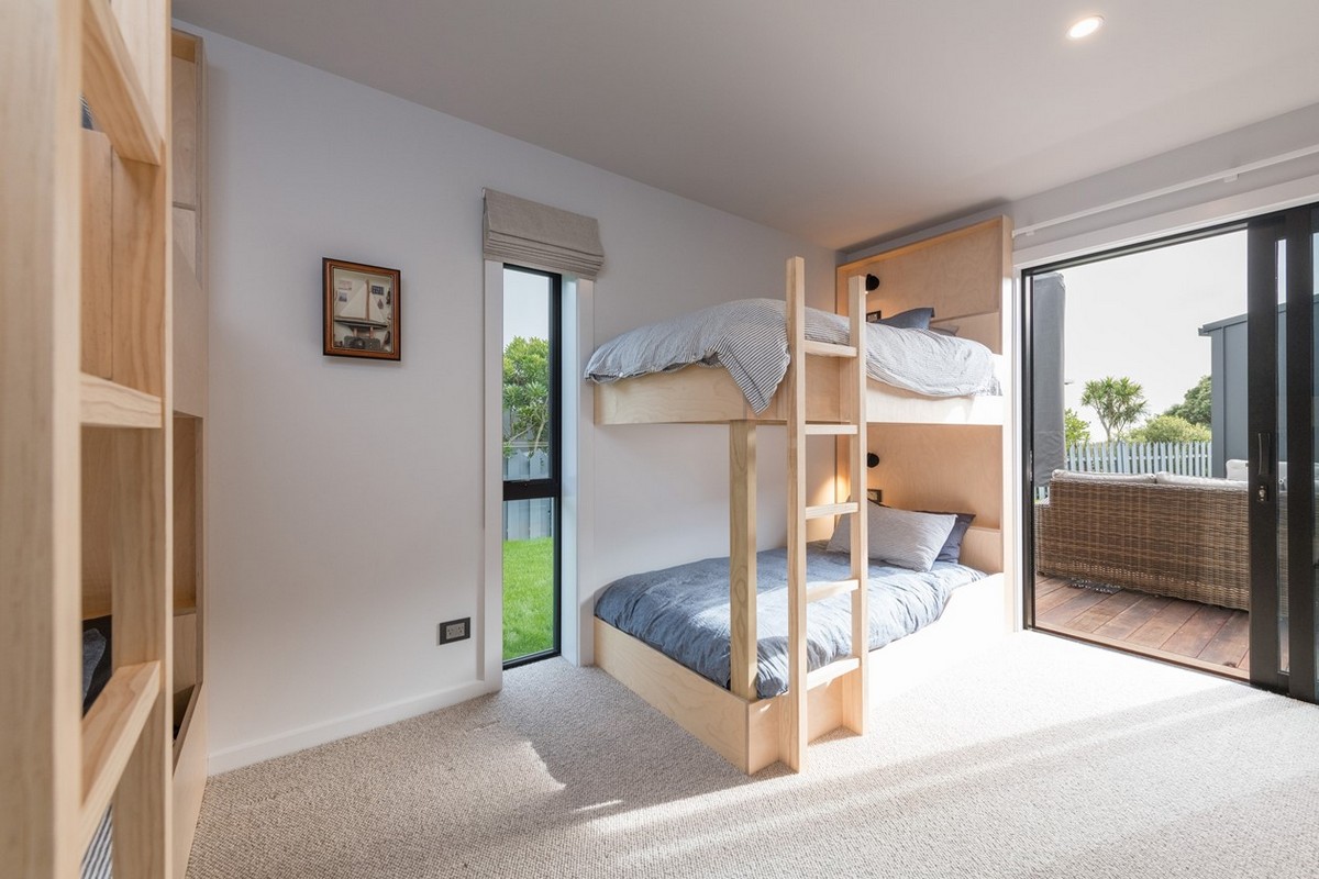 Given this 380sqm house, with views of Golden Bay, is exposed to coastal conditions, it also required robust, durable materials, such as powder-coated aluminium cladding and fibre-cement interior wall linings.