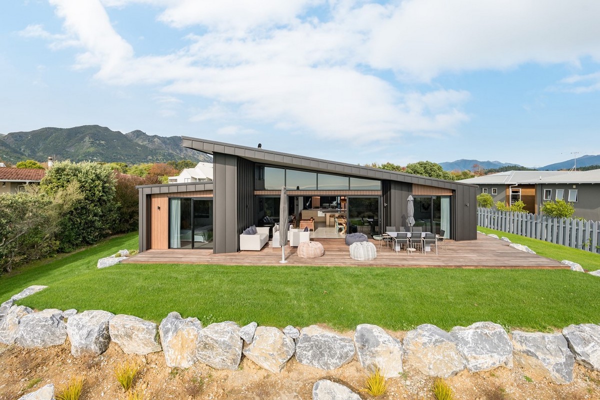Three houses in one was the theme of this high-end holiday home for separate families at Pohara in the Golden Bay area.