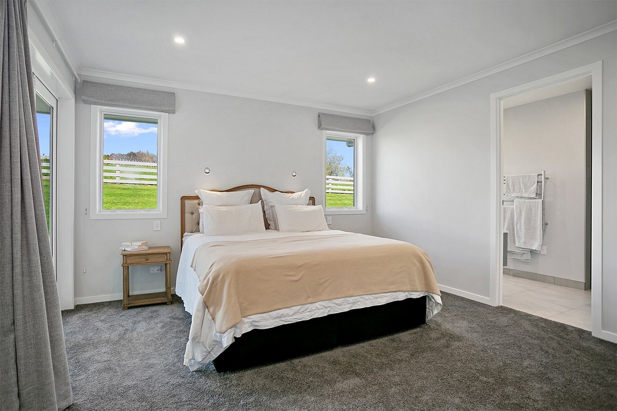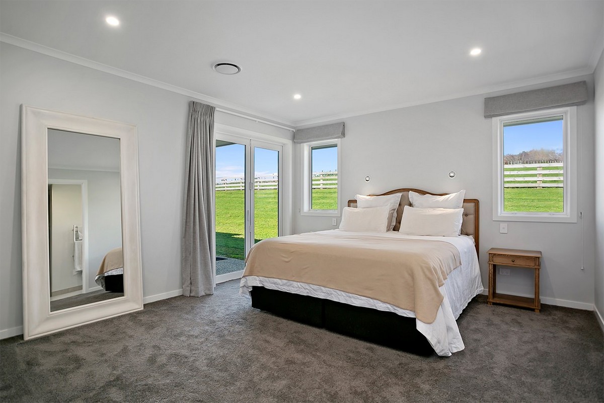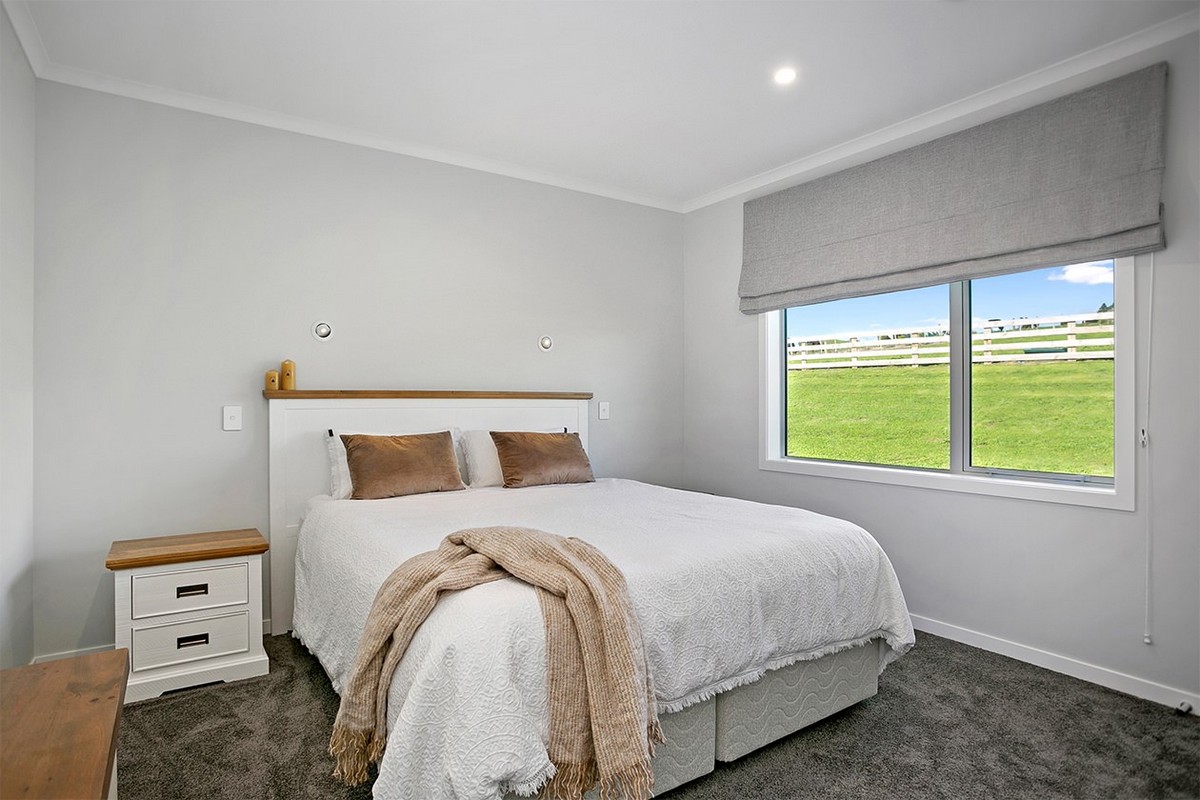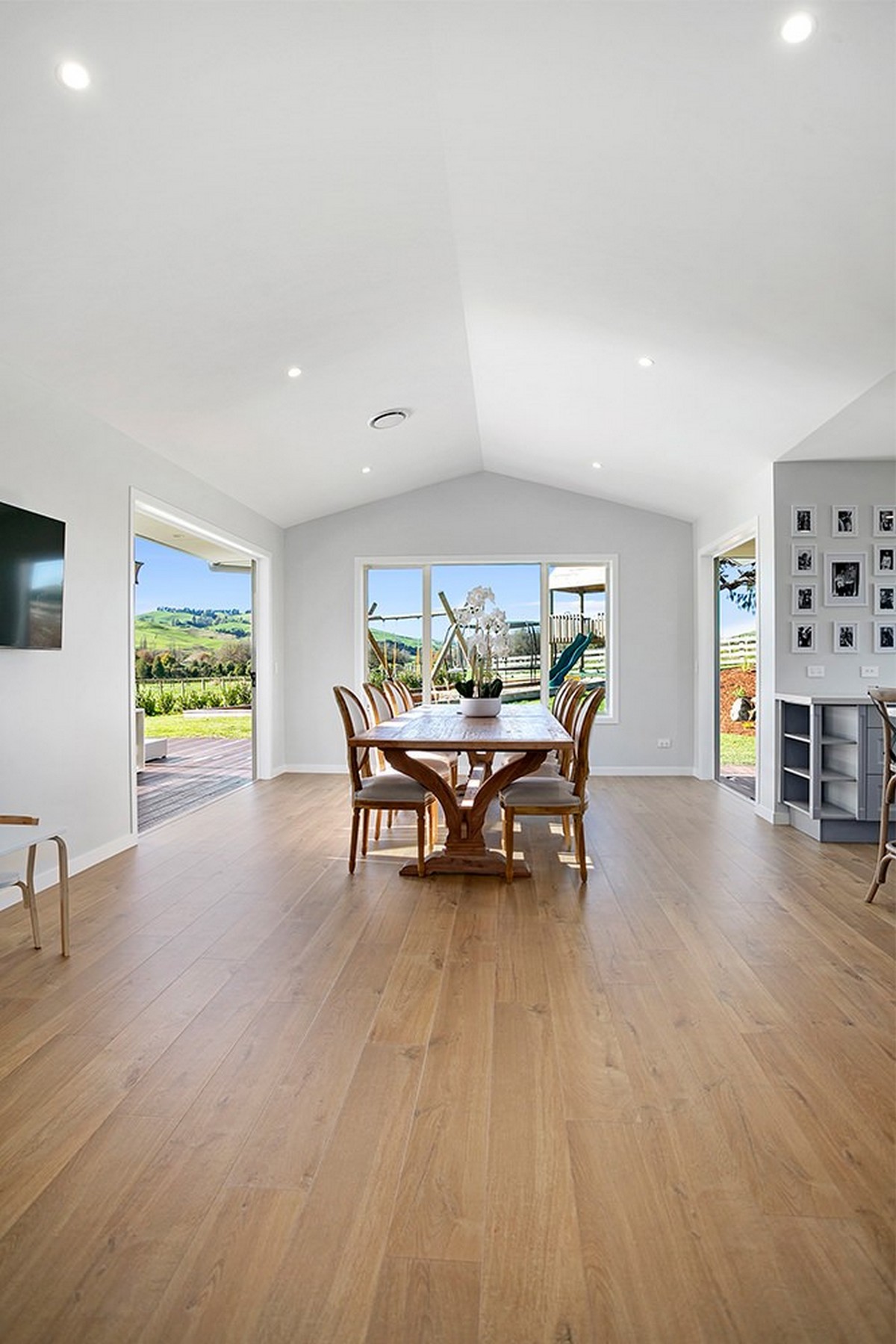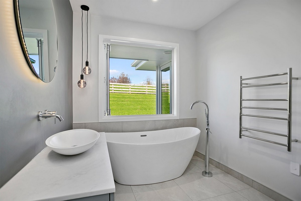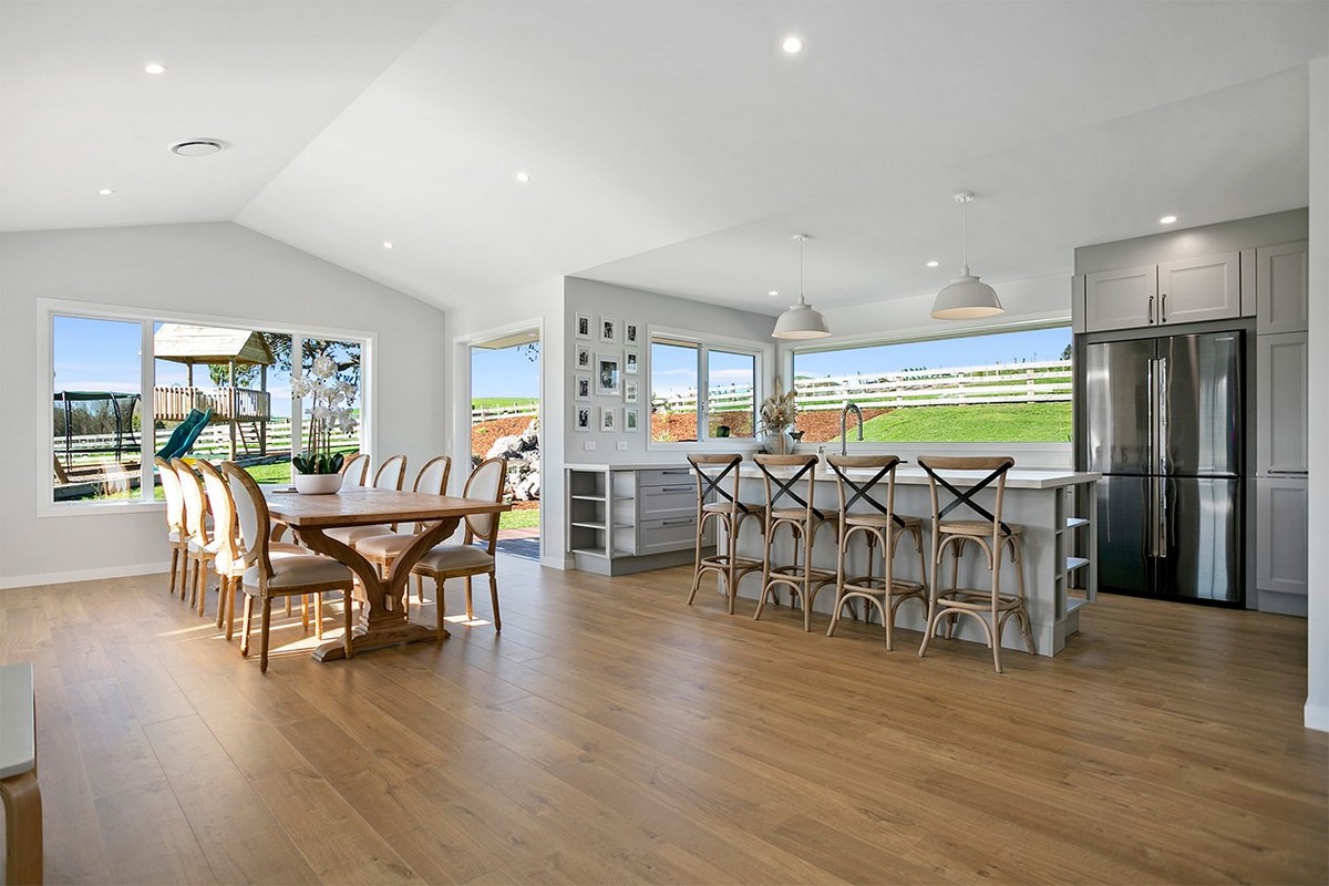 The designer kitchen is a pleasure to work in with generously sized windows overlooking the rural scenery, a butler’s pantry, and an island bench with breakfast bar.