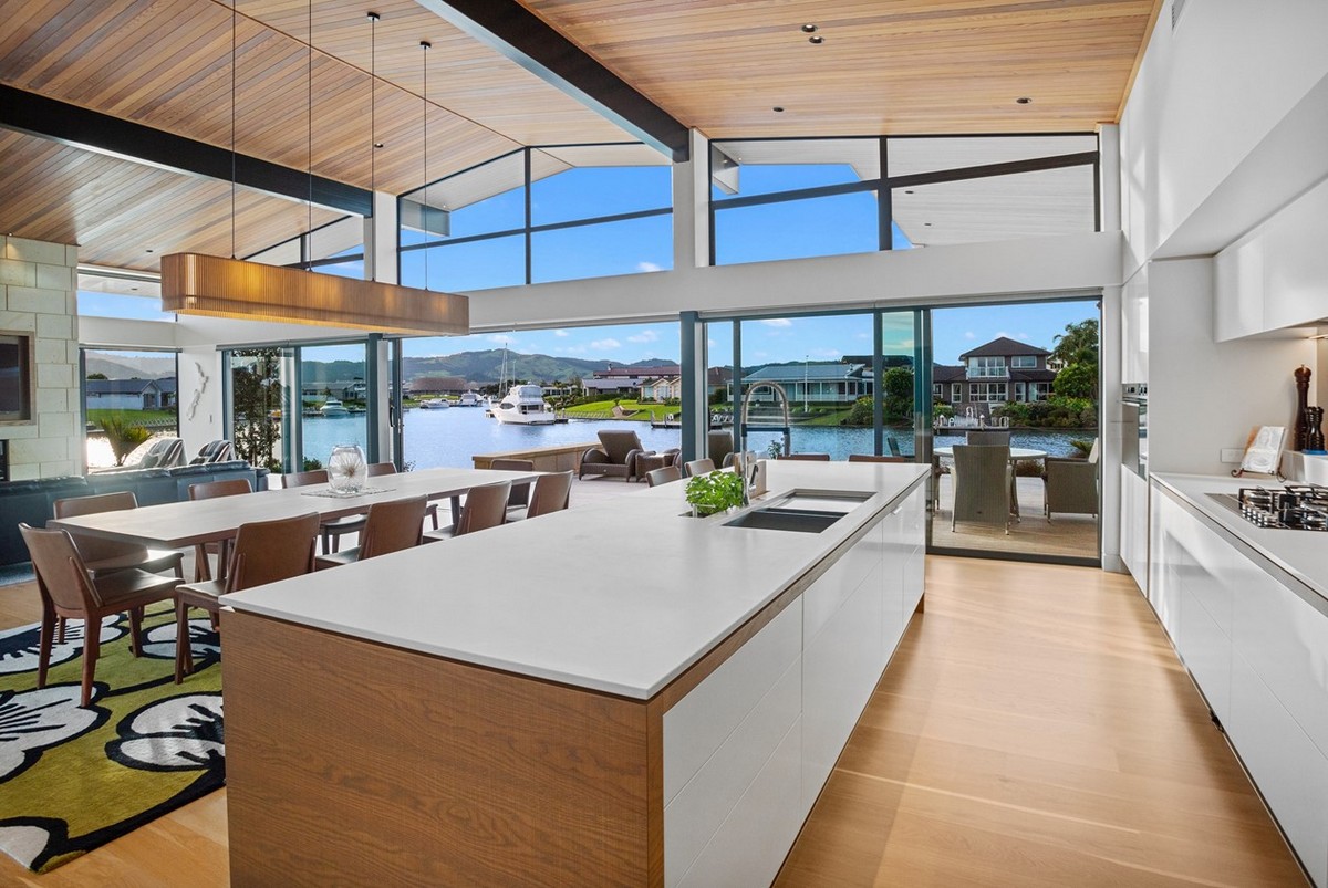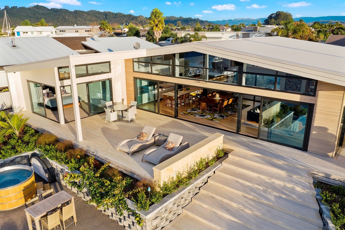 The desire to be close to water, is strong here in New Zealand. It might be the calming effect of the ebb and flow, maybe the cleansing nature of water or even the knowledge it sustains all life, whatever it is a house that is flanked by water on two sides is blessed. HAMR Home Building Contractors have created a home that embraces all the advantages of this double corner section bordered by the Whitianga Waterway and crafted a beautifully functional family home.