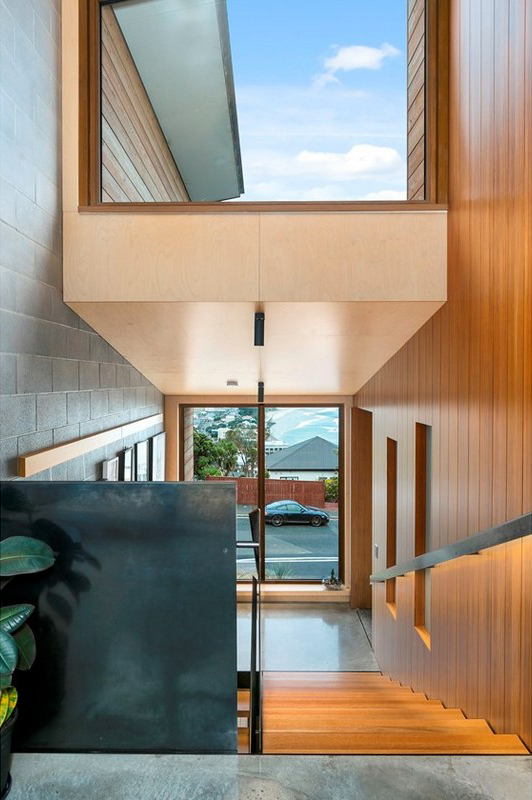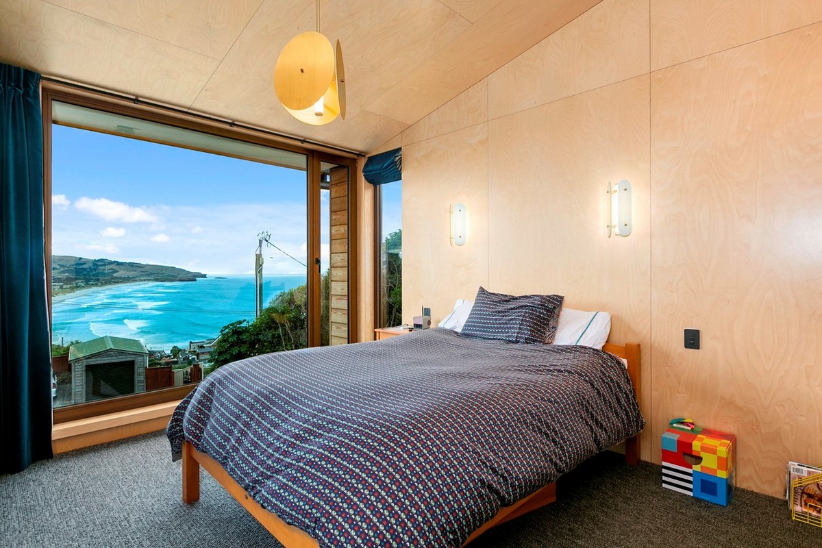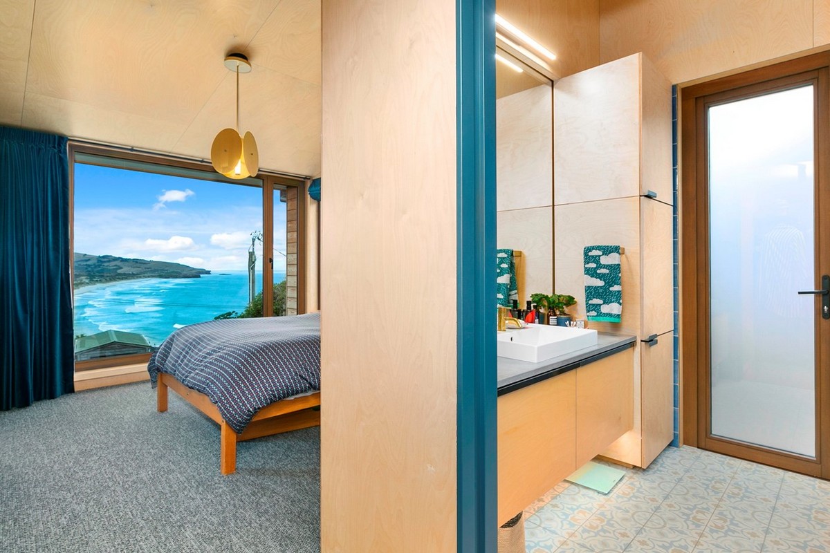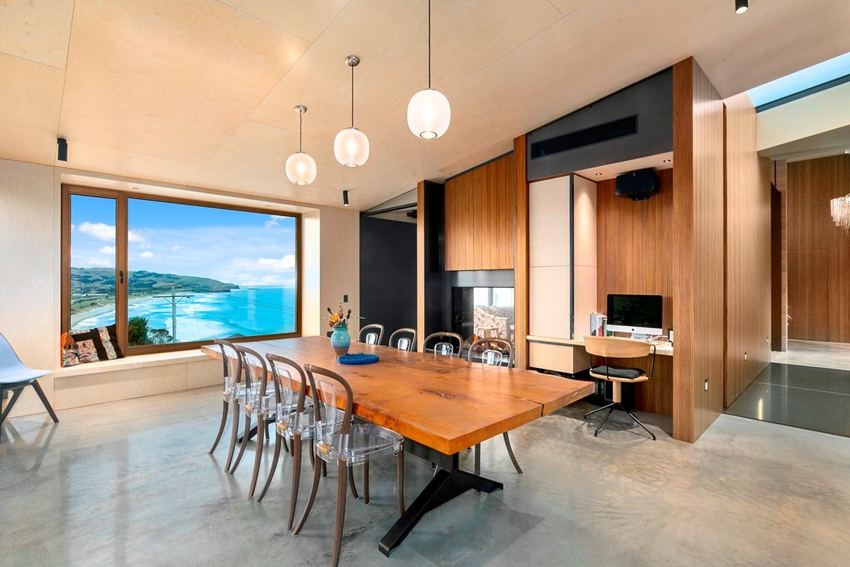 This architecturally designed home was built to take in the stretch of beach and Pacific Ocean below, but it also had to sit beneath the view line of the existing property on the site.
