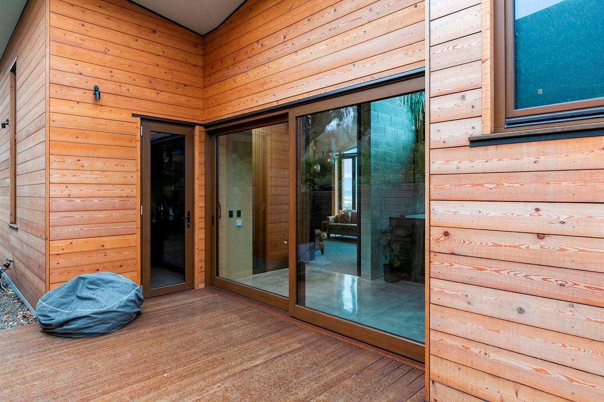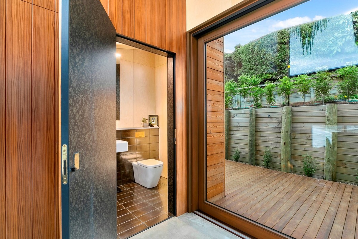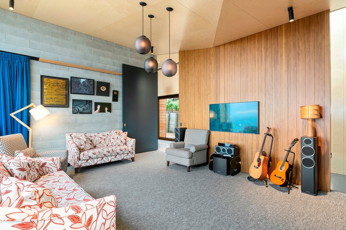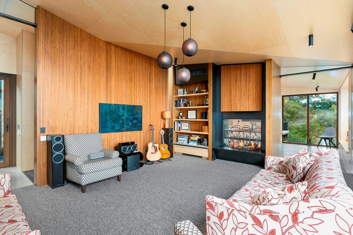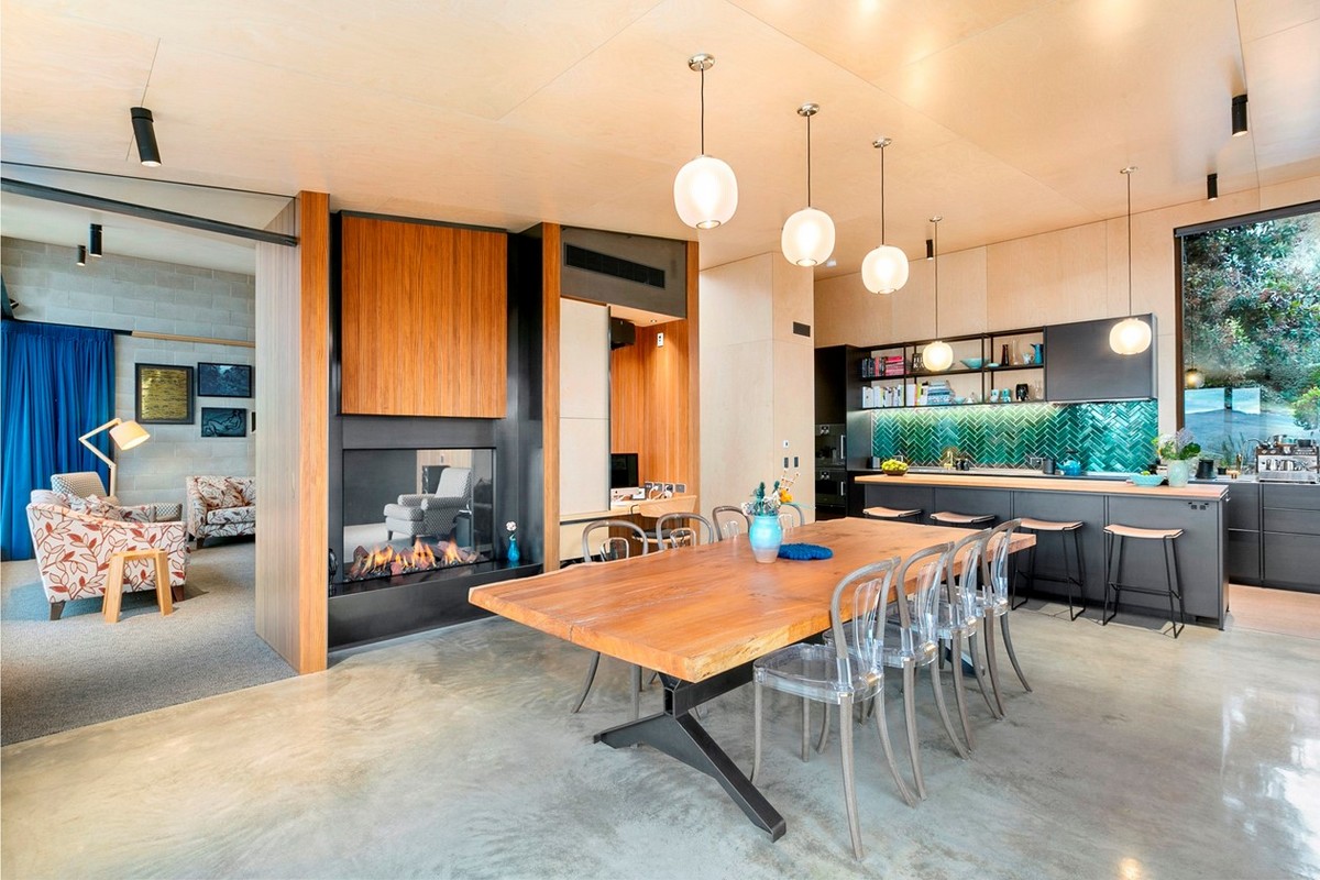 Polished concrete floors and exposed concrete walls maximise passive heat absorption and storage. Evidence of the craftsmanship is everywhere you look – in the beautiful herringbone tile kitchen splashback, timber-lined walls, three opulent tiled bathrooms, and the outdoor living spaces that link the indoors to the out.